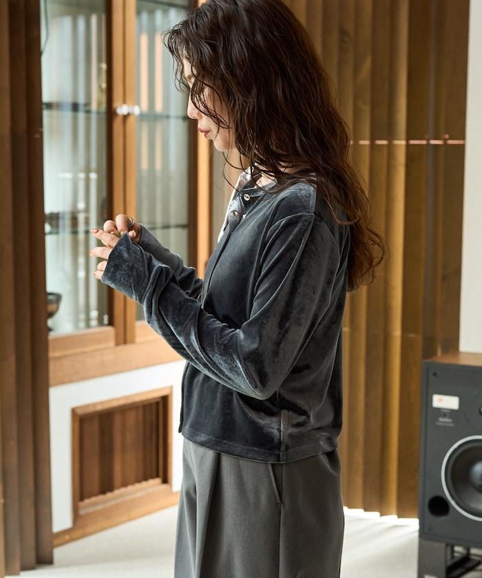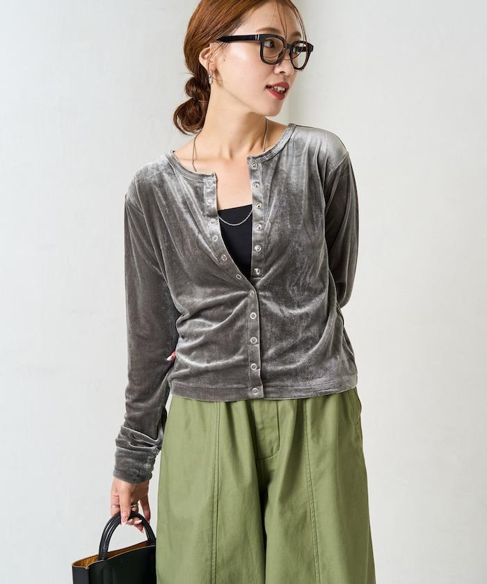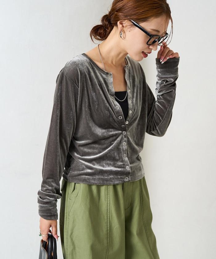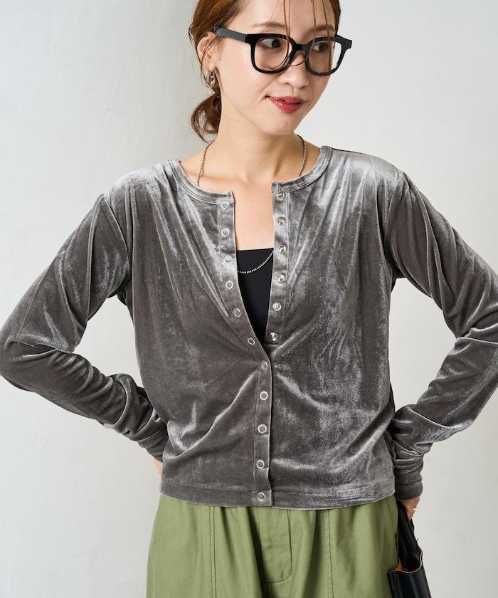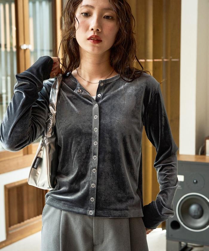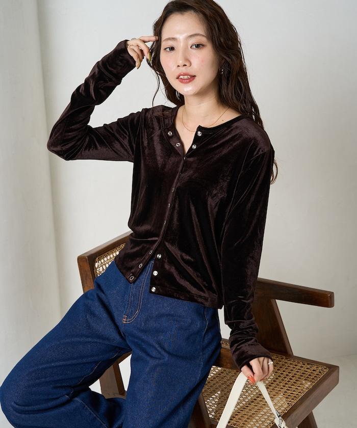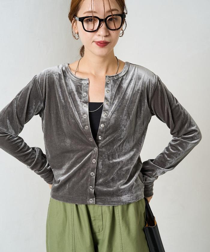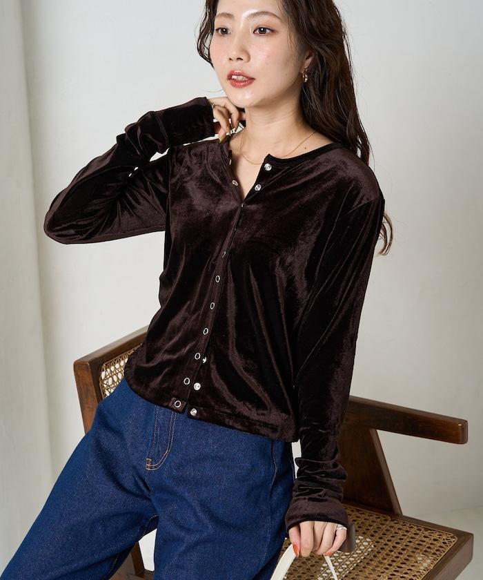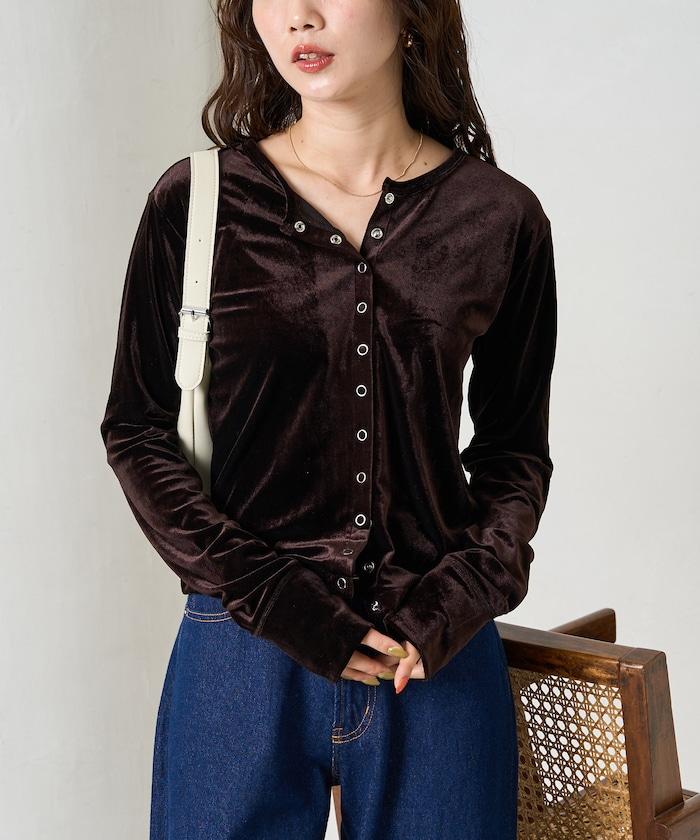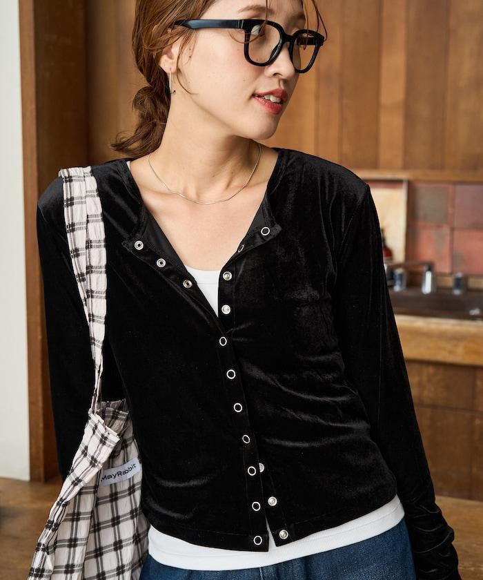 絲絨紐扣開衫