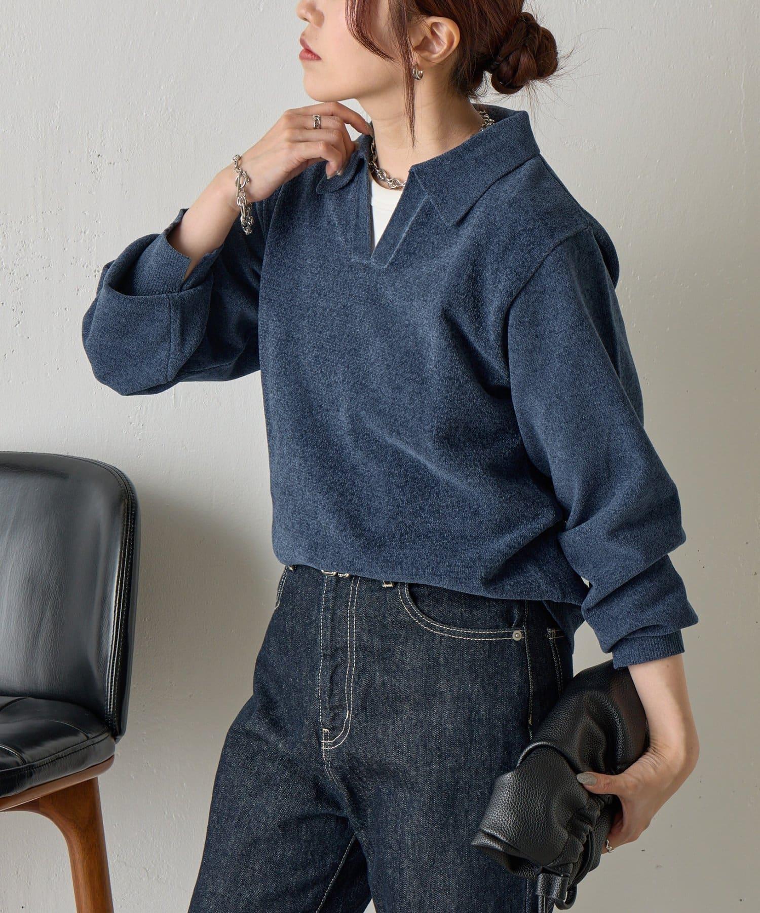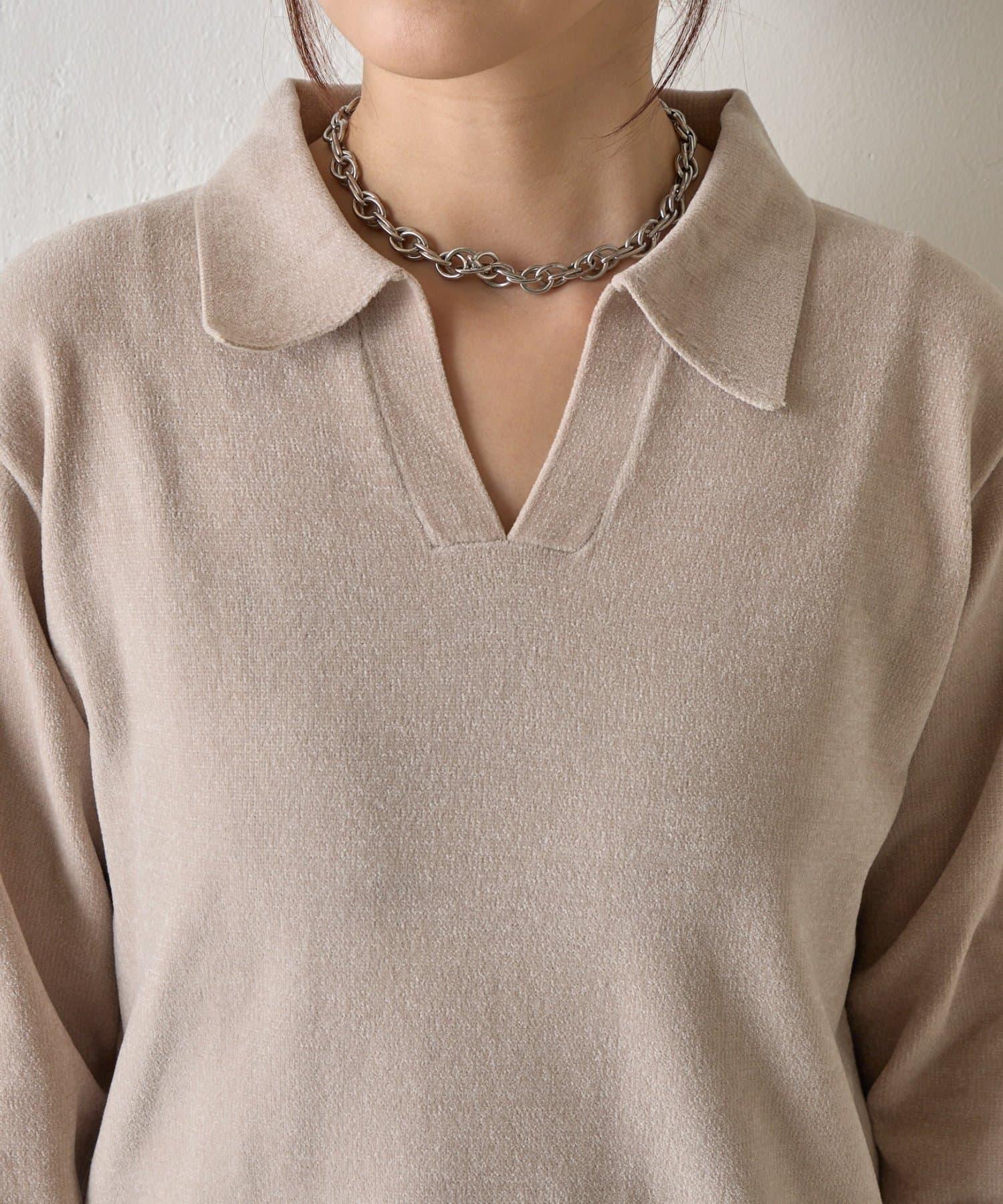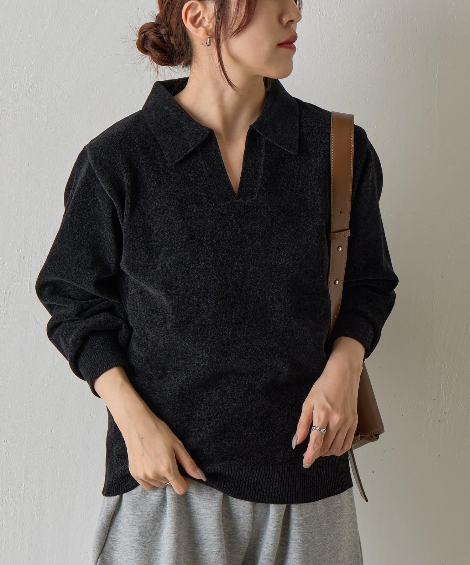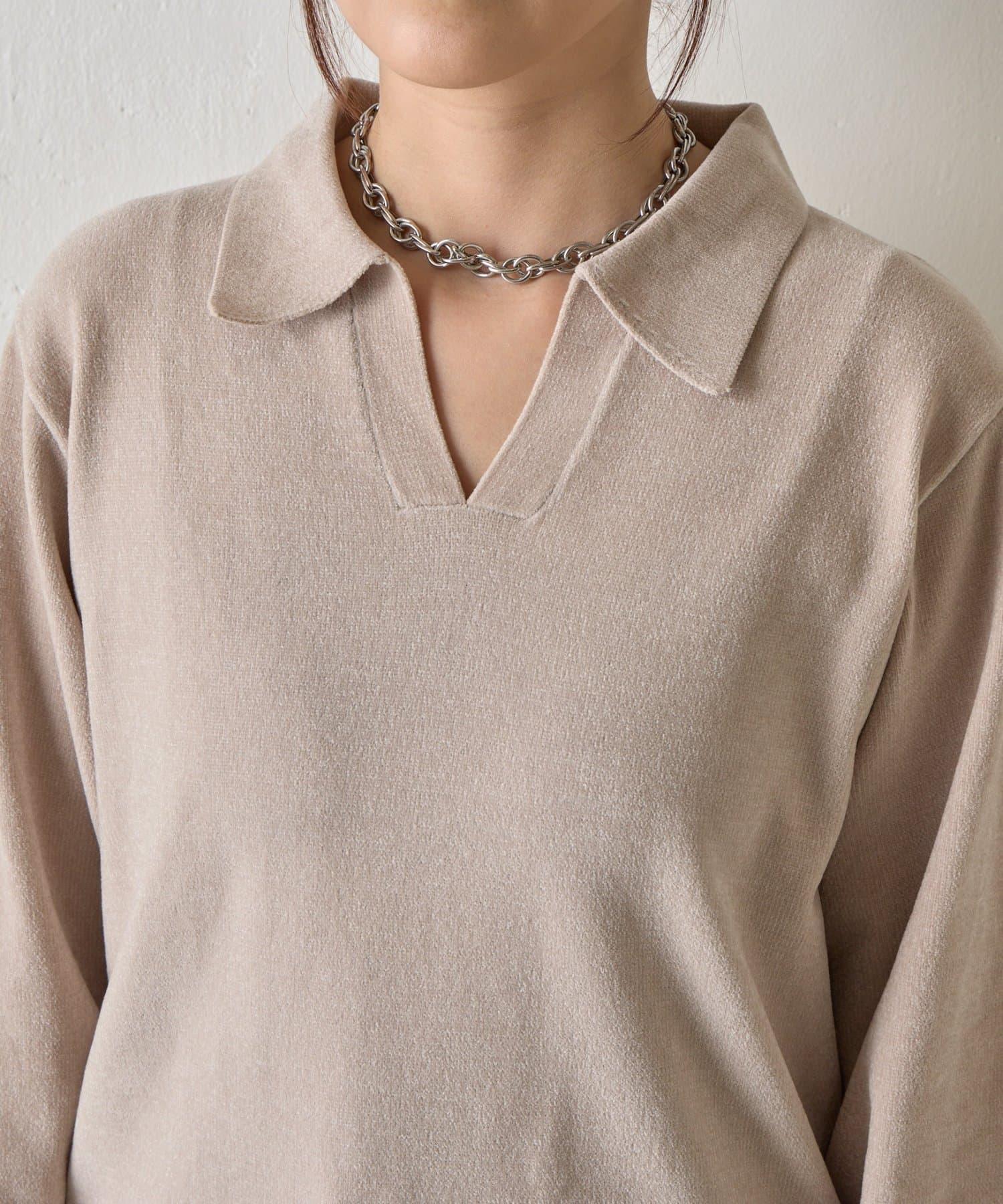 這款船長馬球針織衫採用絲絨編織面料,光滑的光澤和蓬鬆的觸感給人一種優雅的印象。