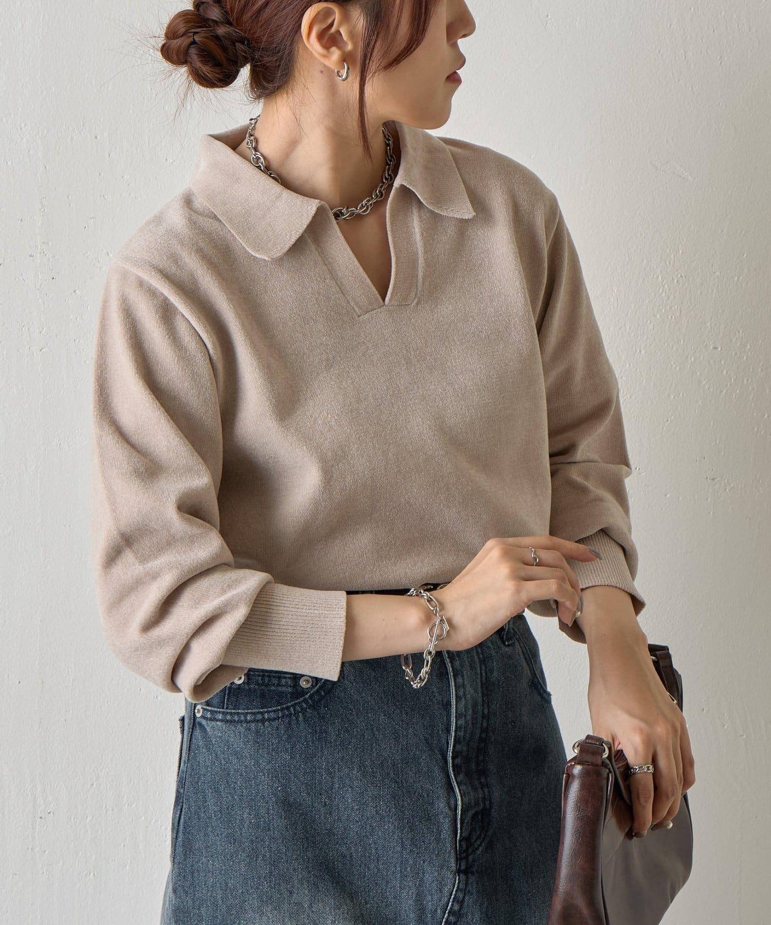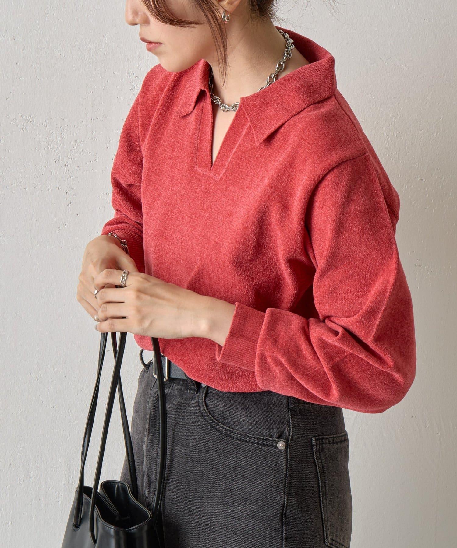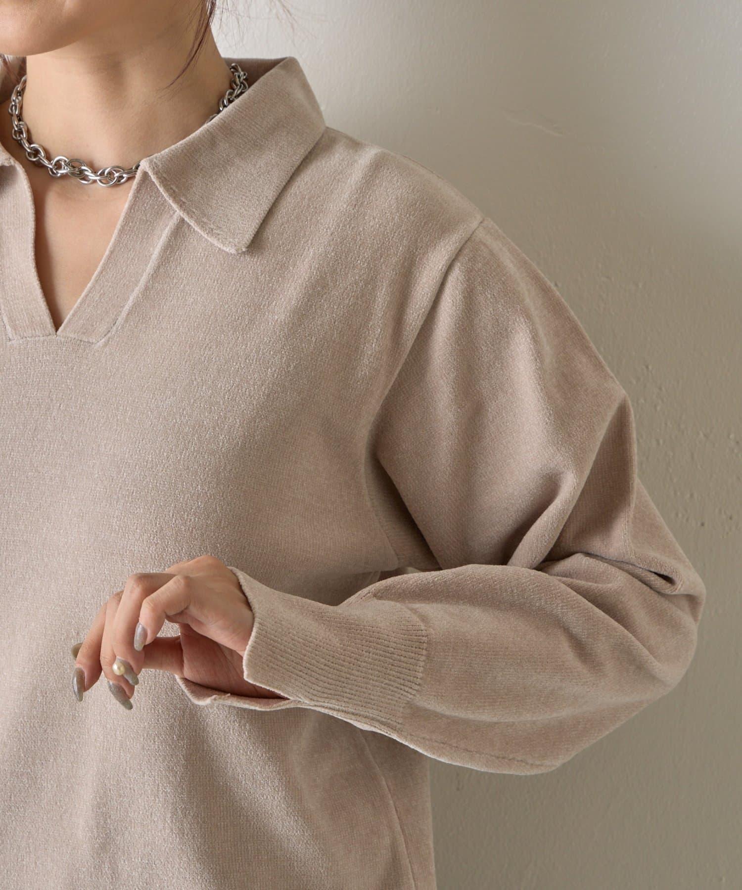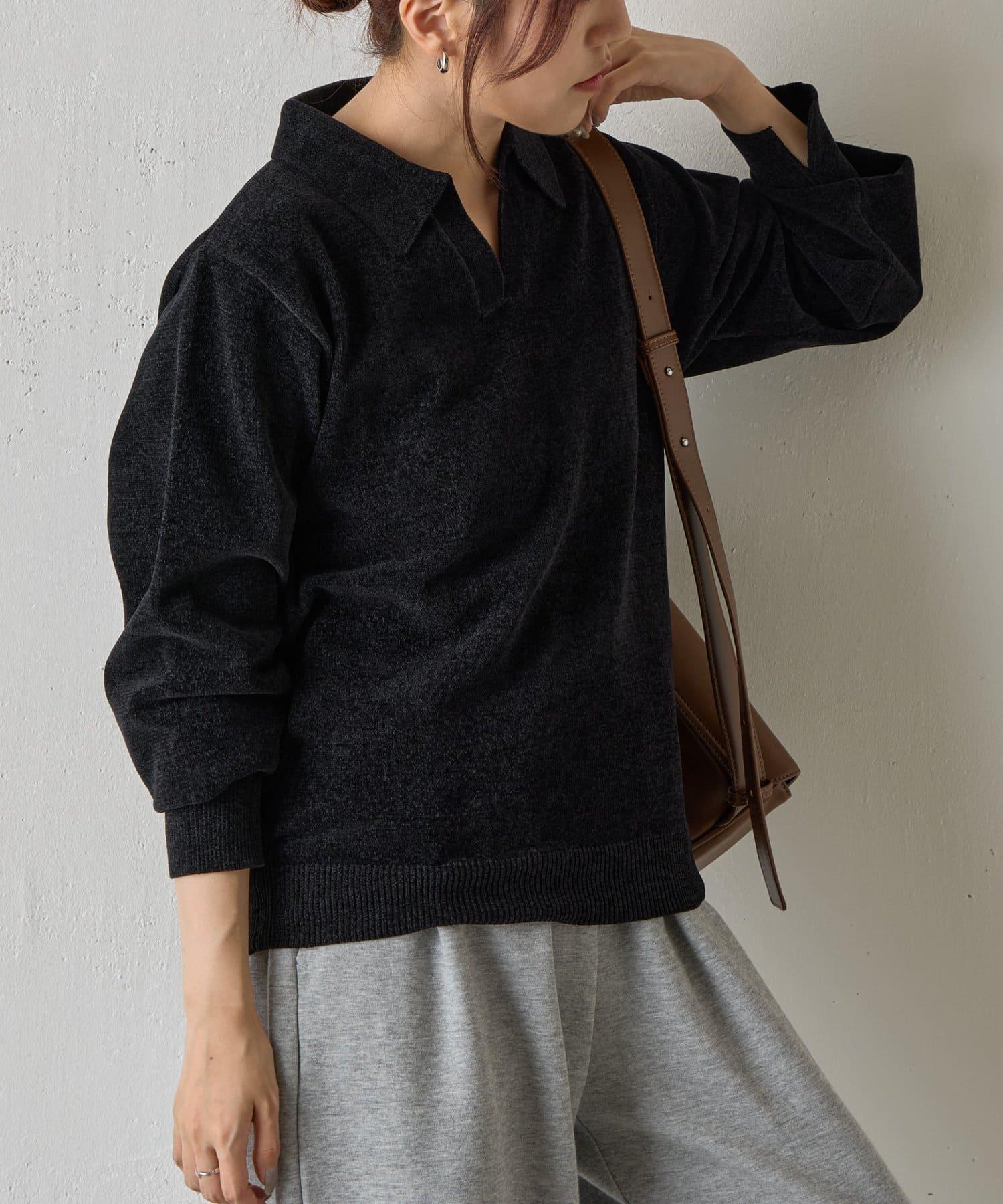 這款船長馬球針織衫採用絲絨編織面料,光滑的光澤和蓬鬆的觸感給人一種優雅的印象。