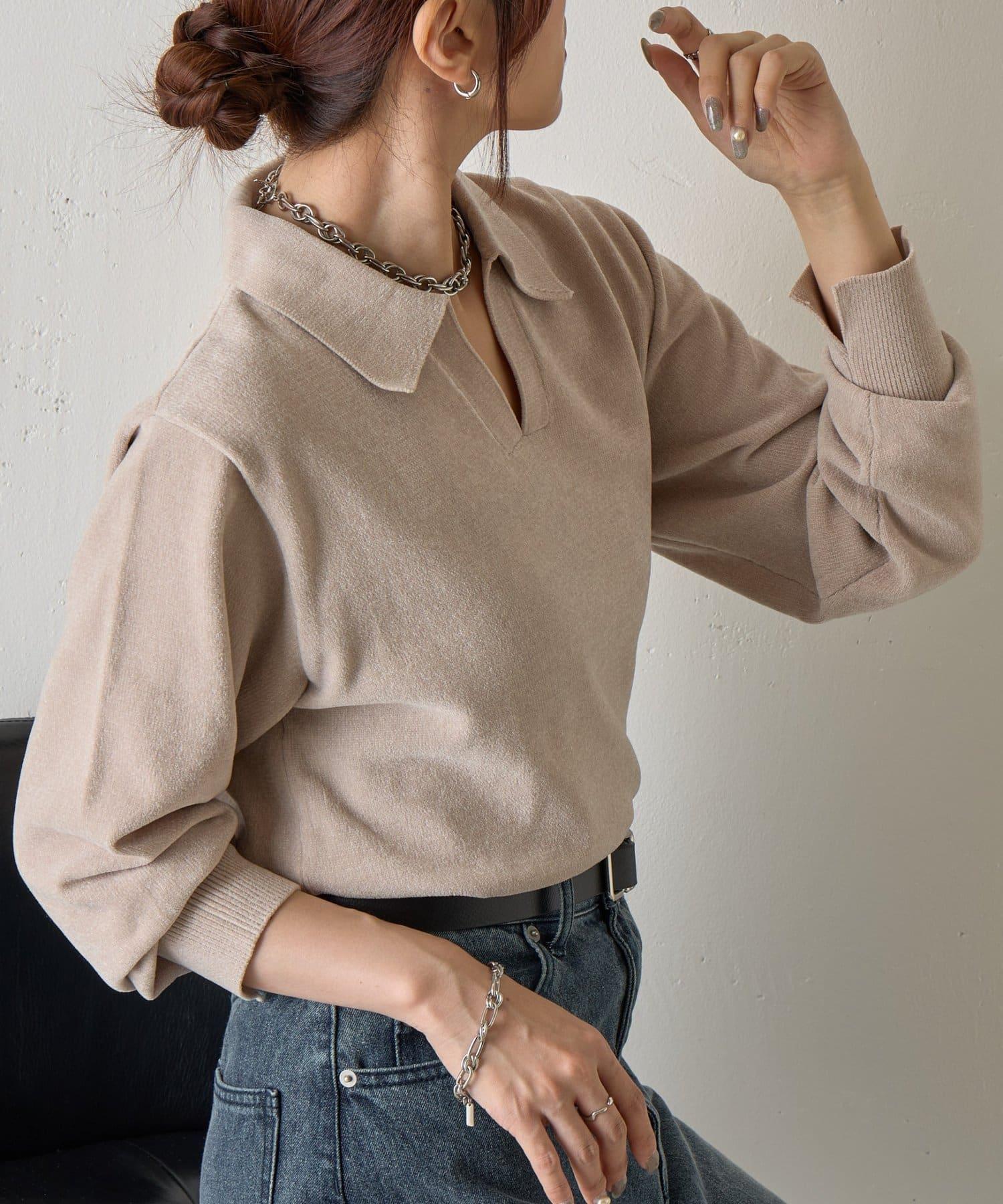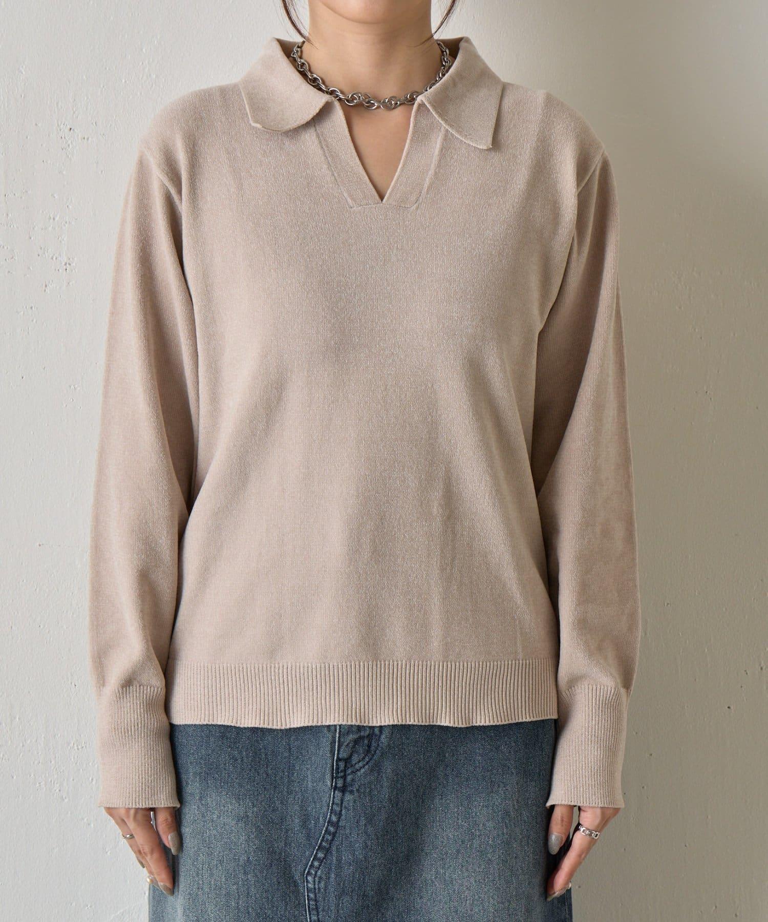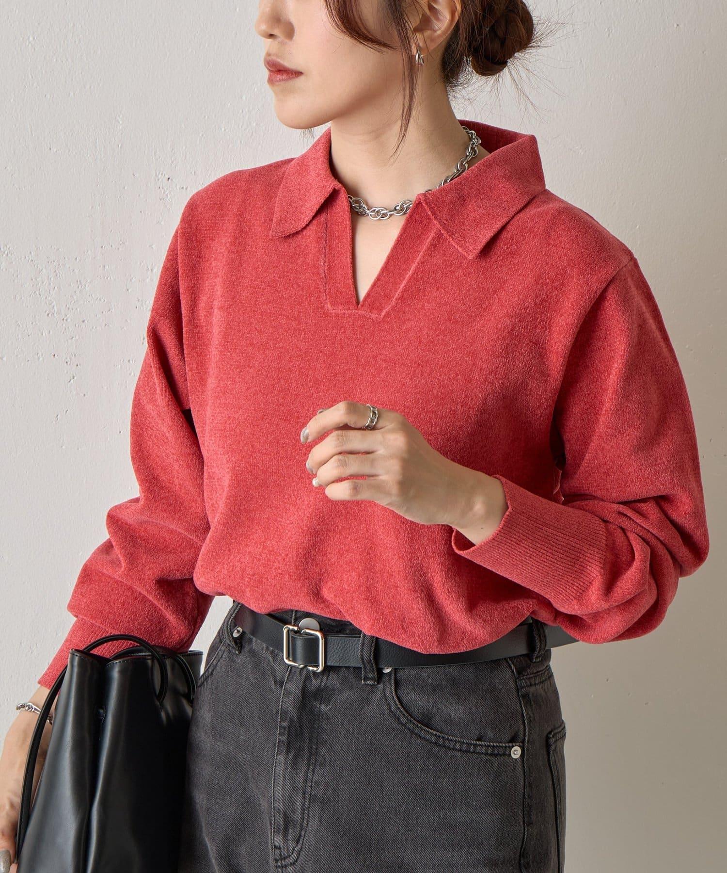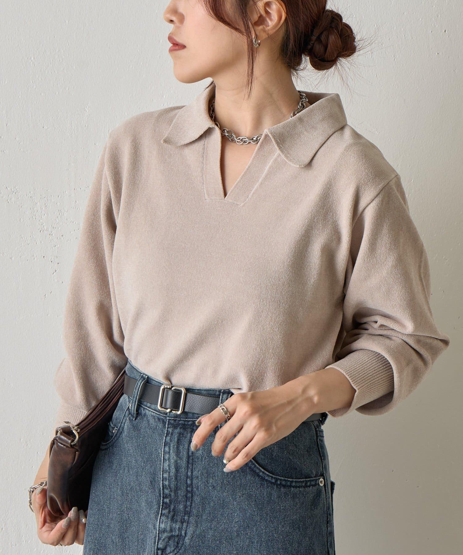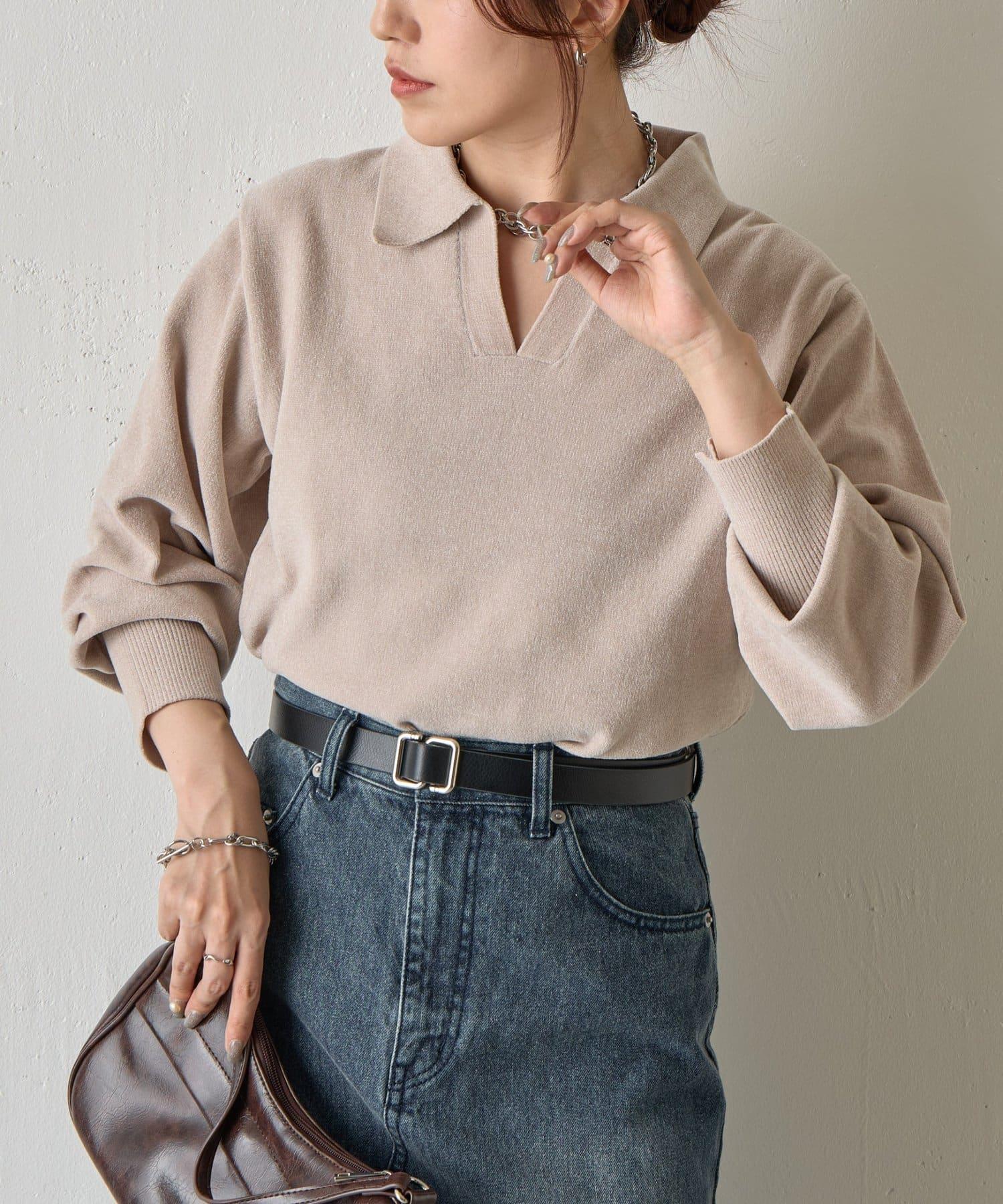 這款船長馬球針織衫採用絲絨編織面料,光滑的光澤和蓬鬆的觸感給人一種優雅的印象。