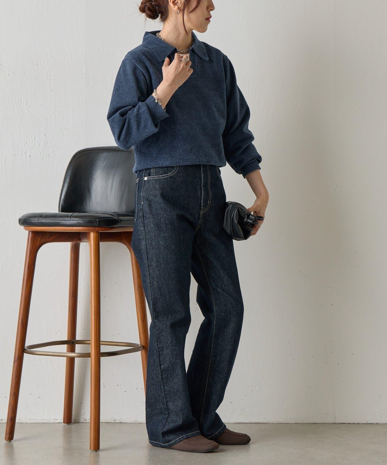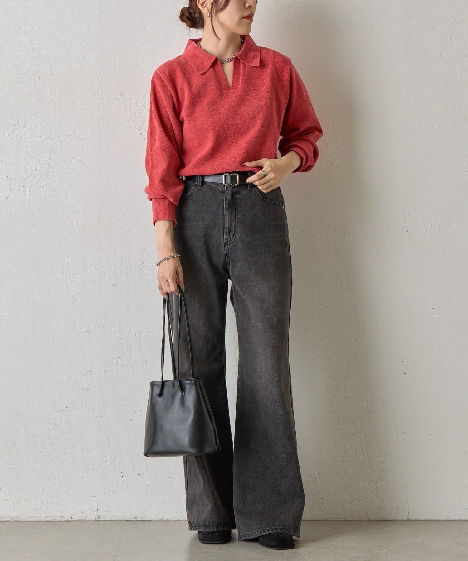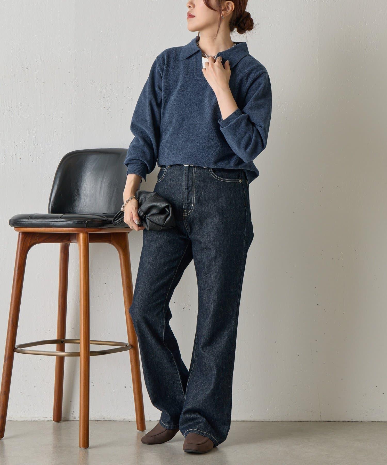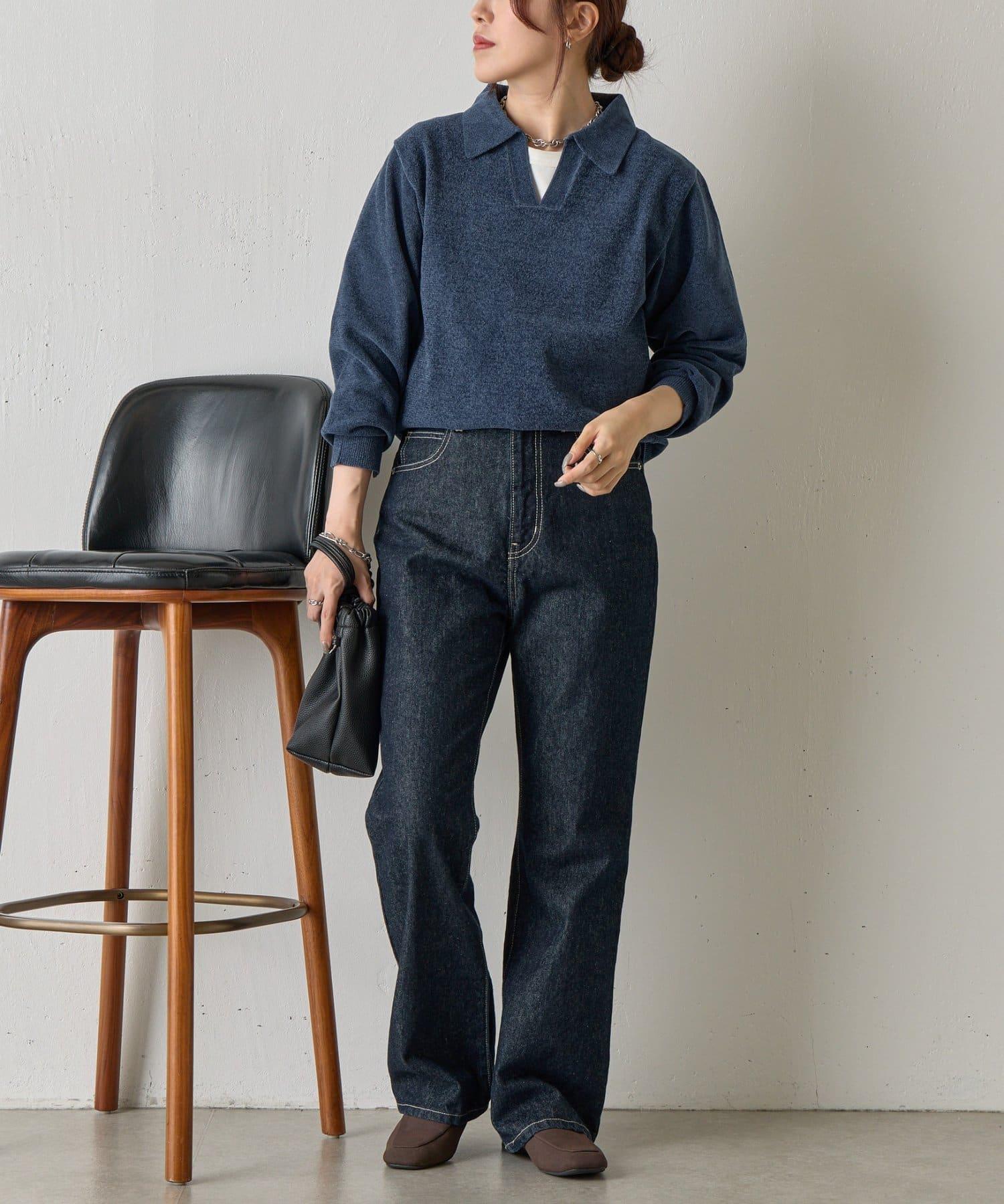 這款船長馬球針織衫採用絲絨編織面料,光滑的光澤和蓬鬆的觸感給人一種優雅的印象。