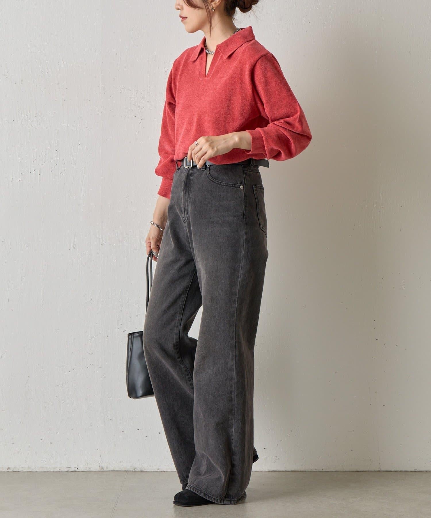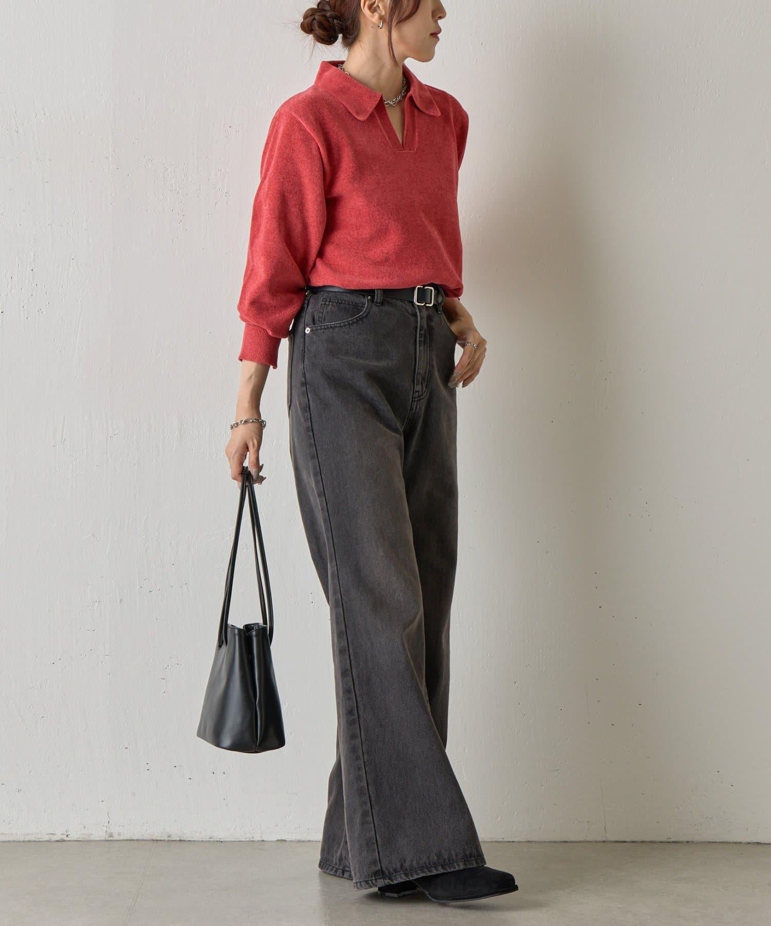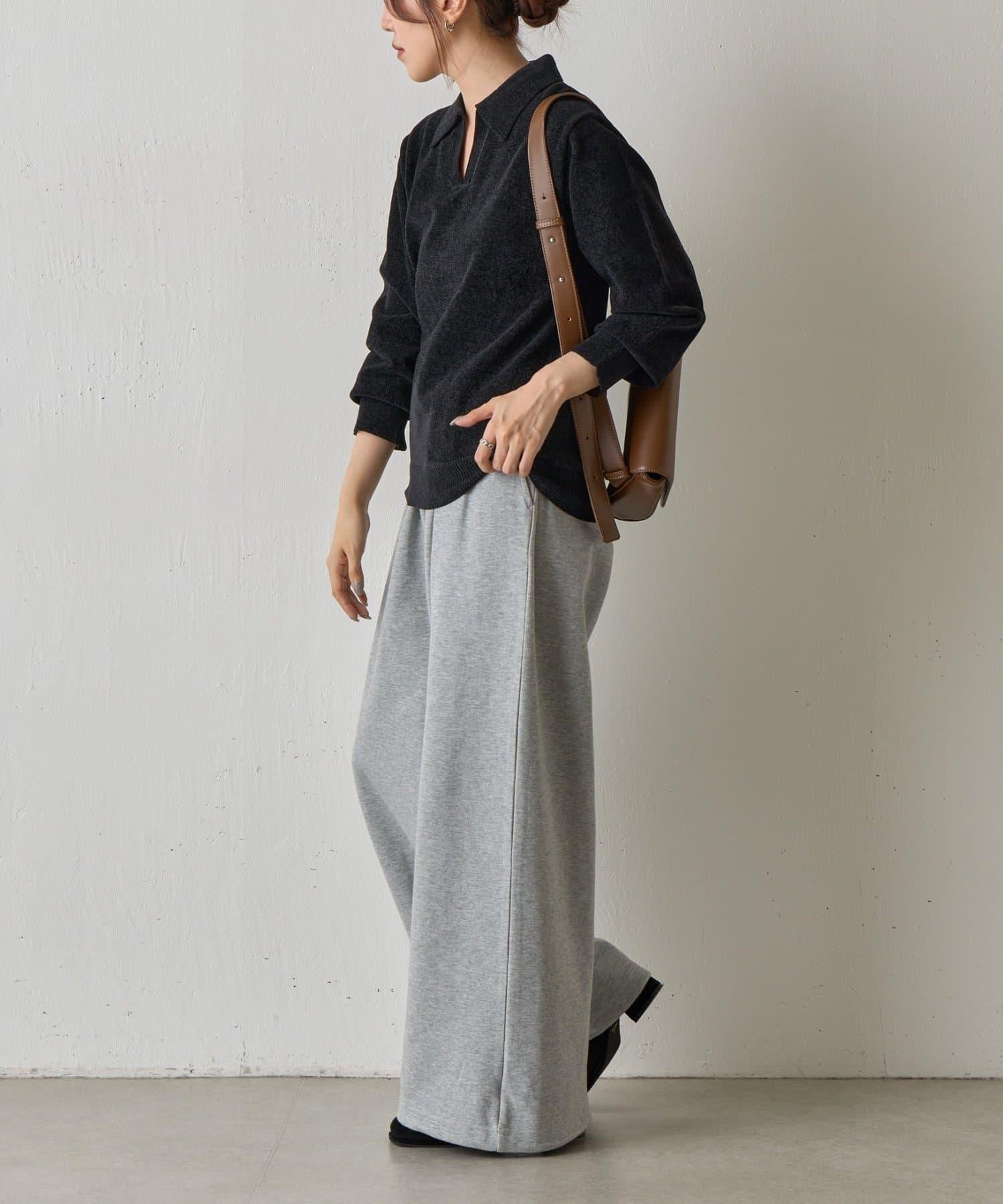 天鵝絨特有的精緻光澤和辮子紗的立體感,使其看起來既休閒又成熟。