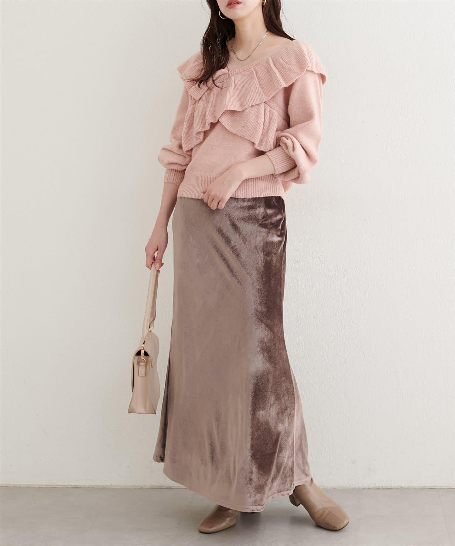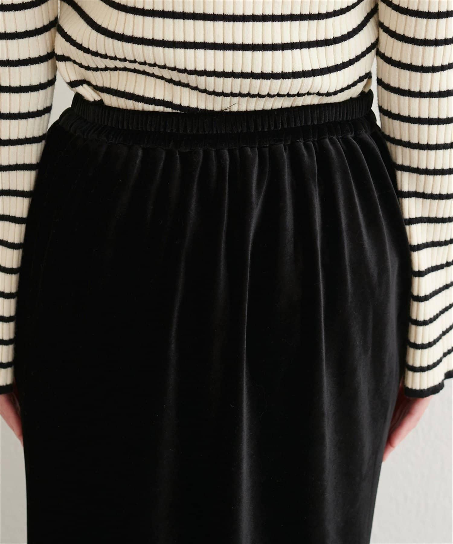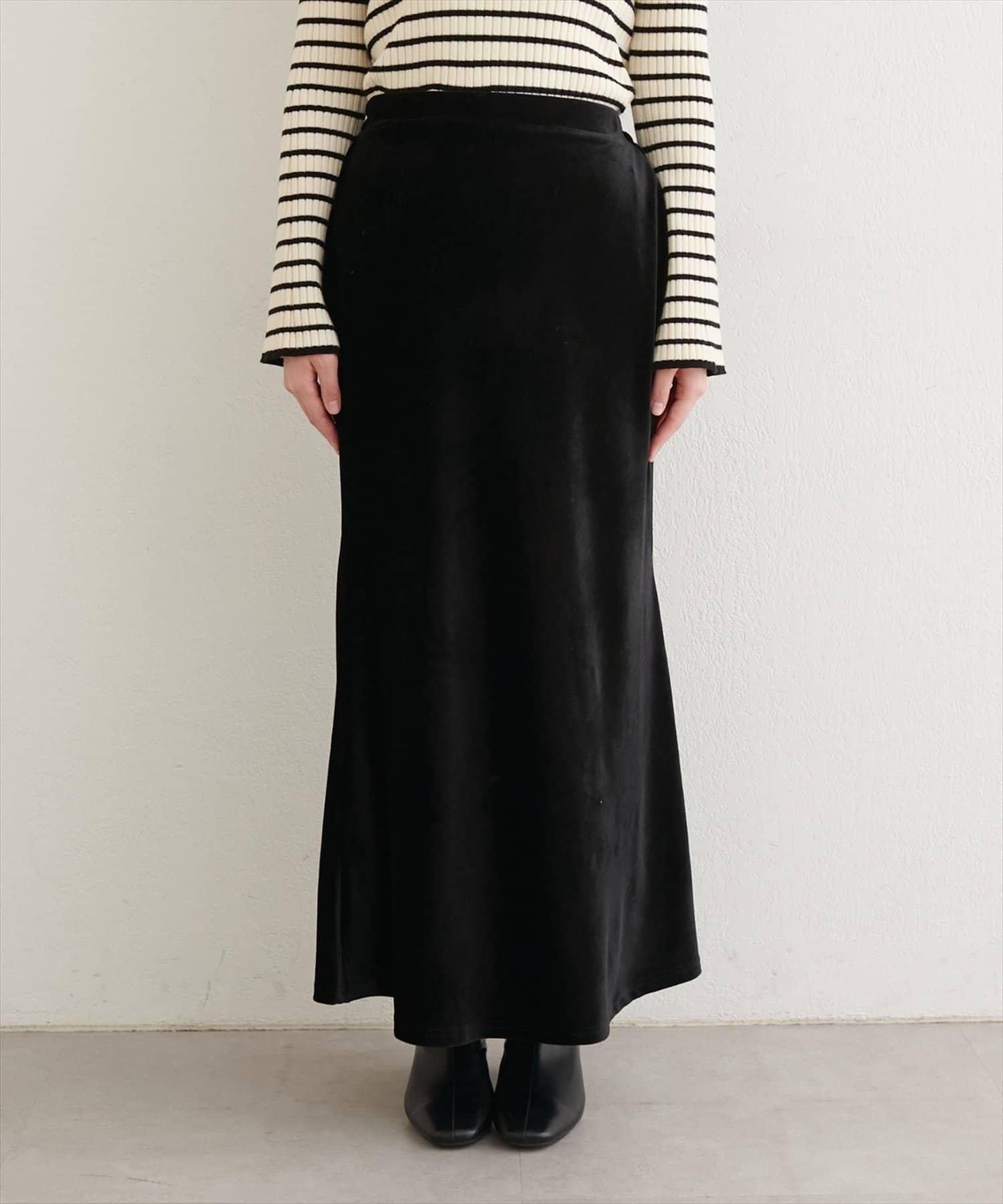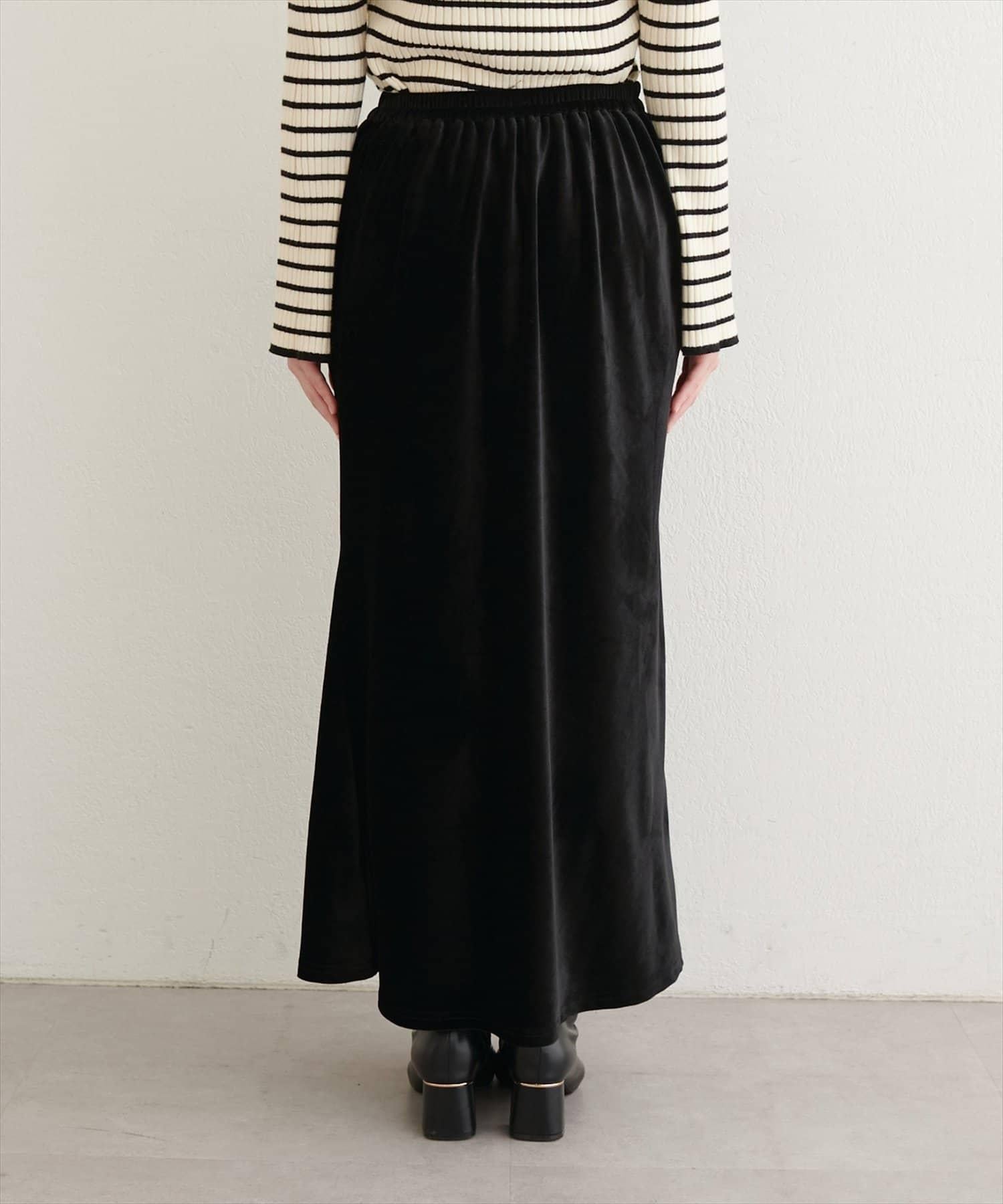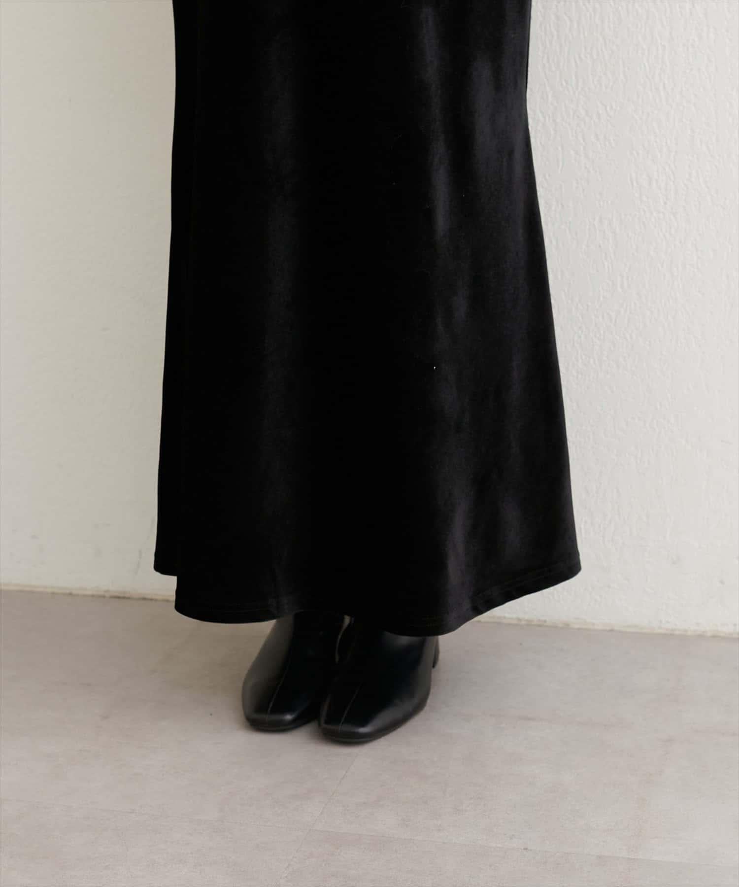 絲絨人魚裙讓您在行走時搖曳生姿。絲絨材質散發出優雅的光澤、