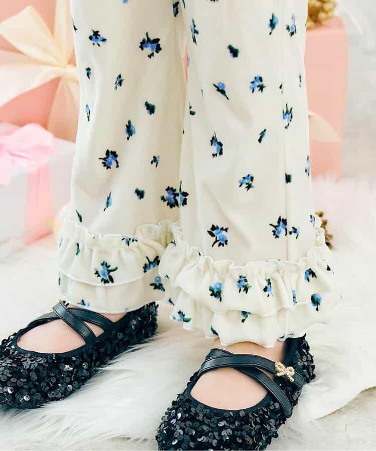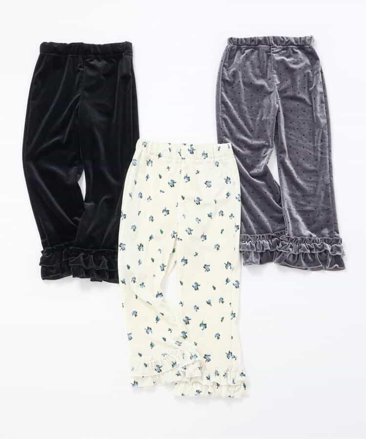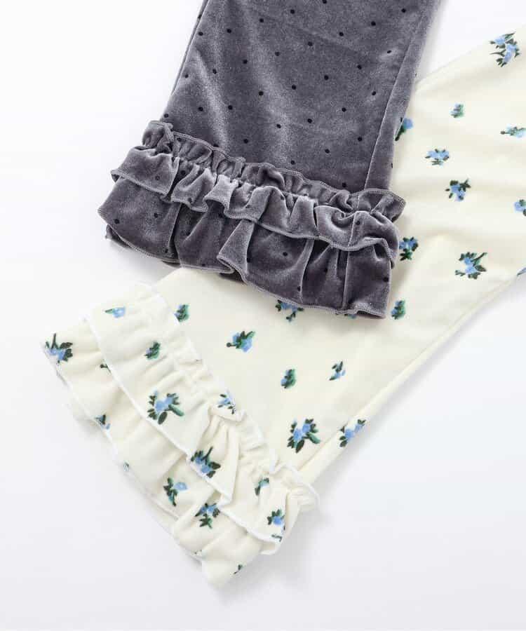 apres les cours 的 "Velour Frill Leggings "襯墊和緊身褲設計讓您從腳部開始就充滿時尚感。請盡情搭配您的悠悠球。