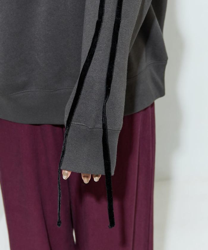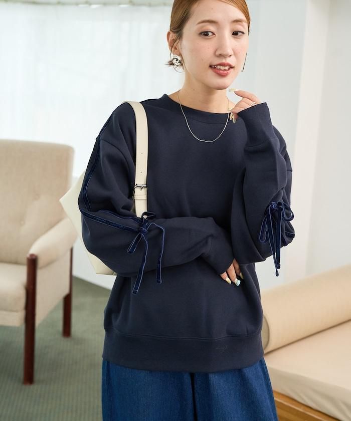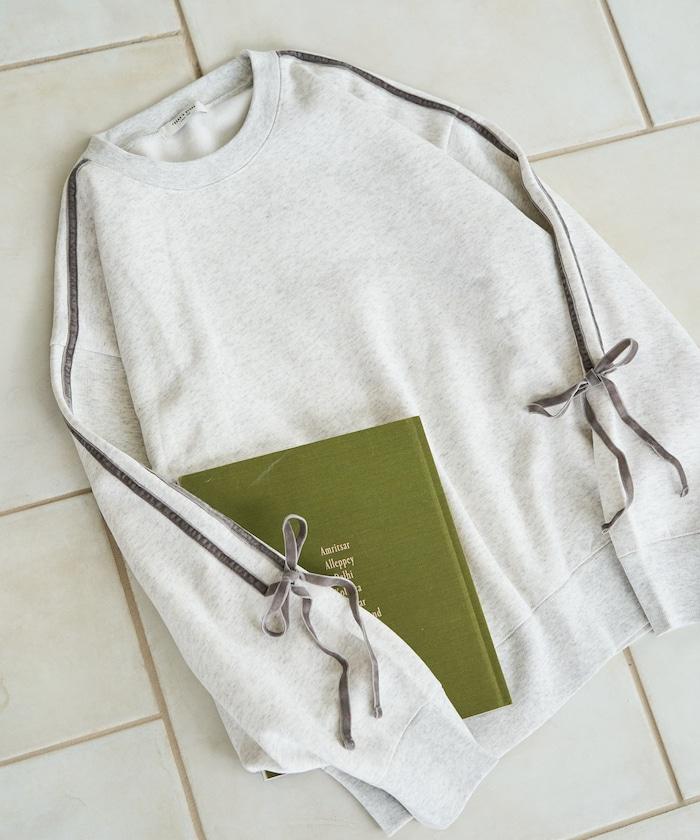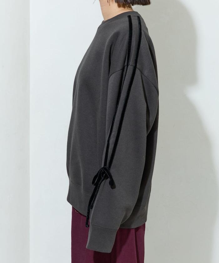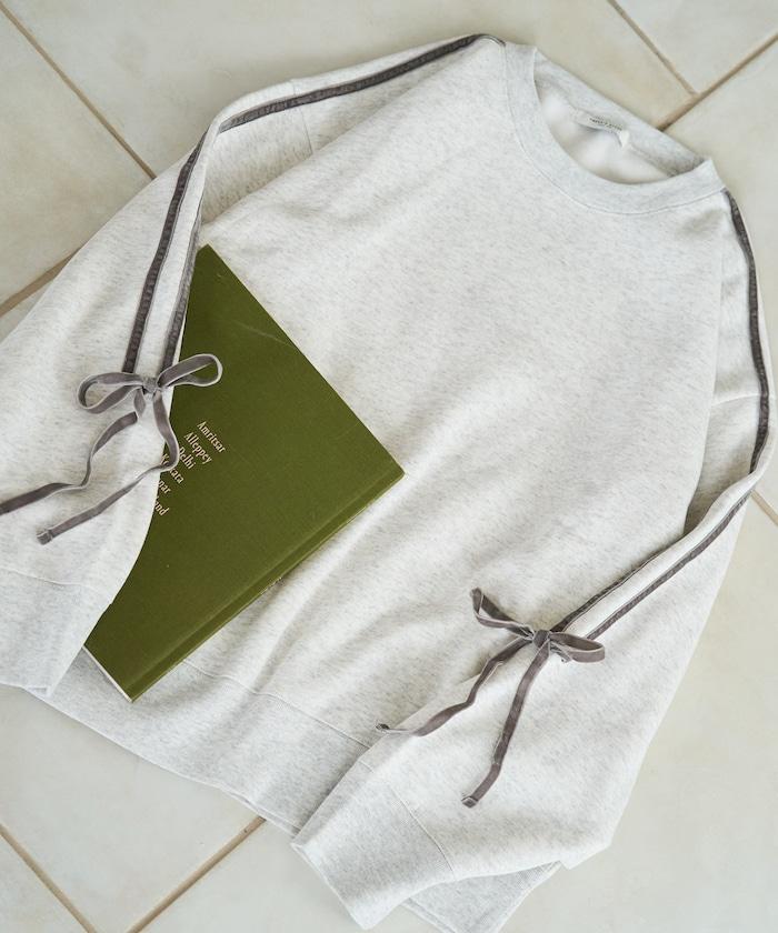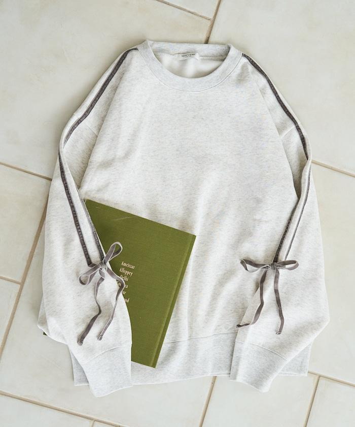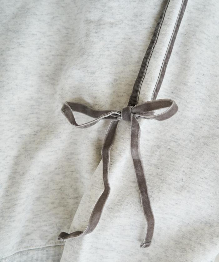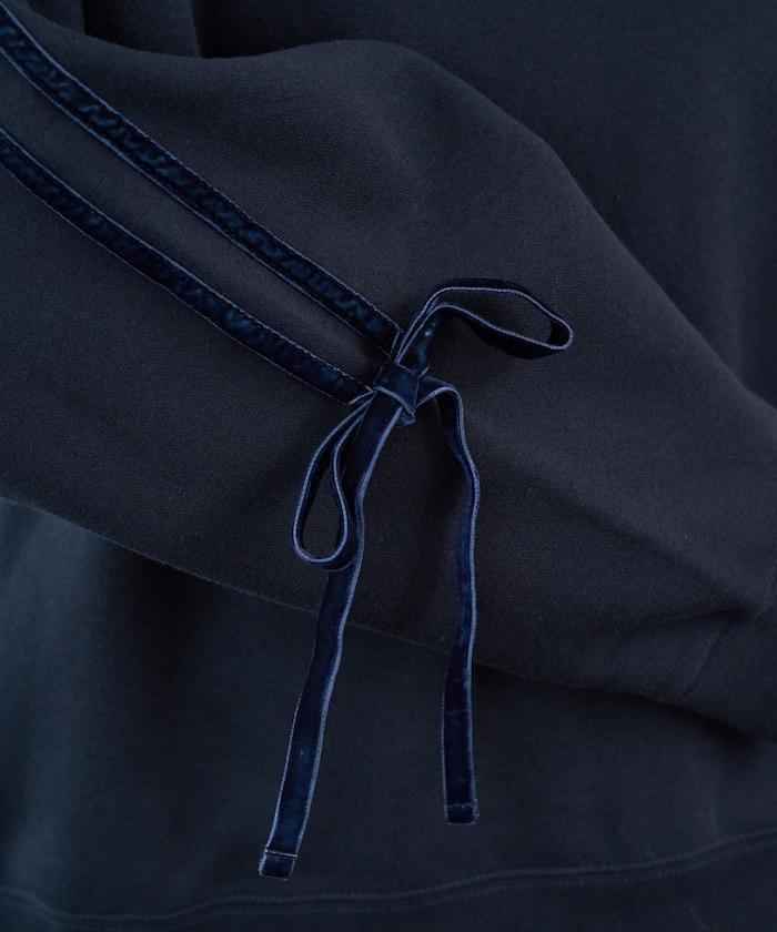 天鵝絨蝴蝶結條紋加絨衛衣套頭衫【限定展售】