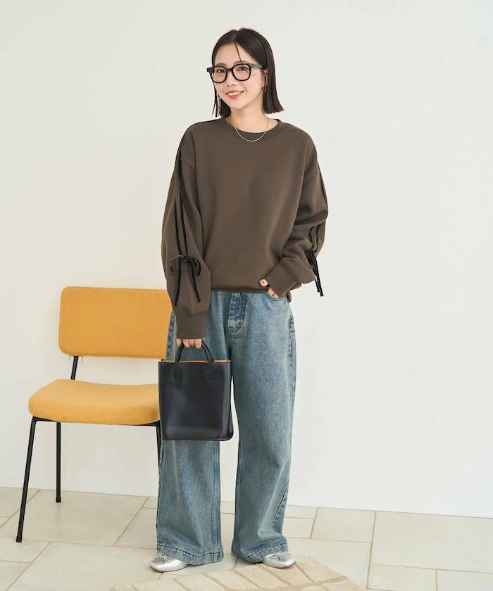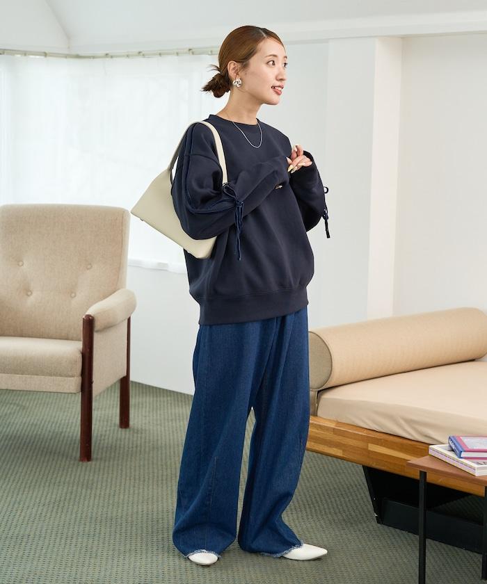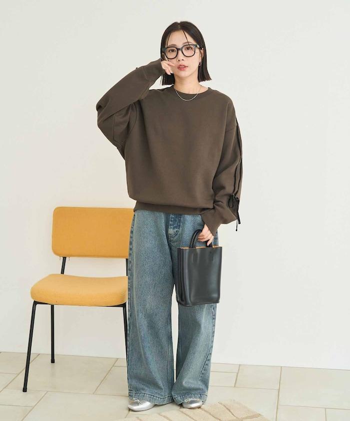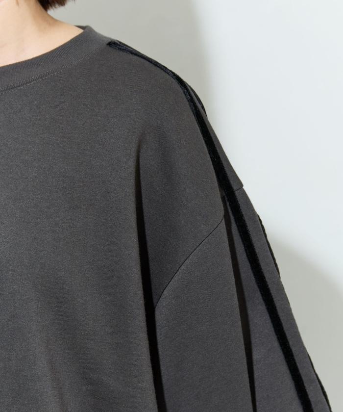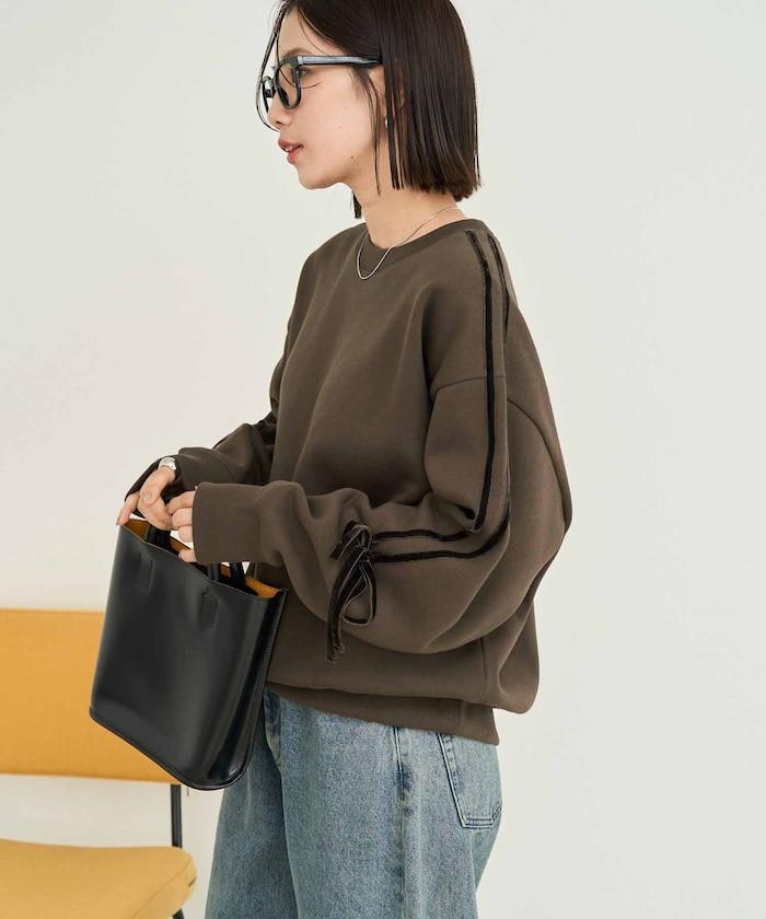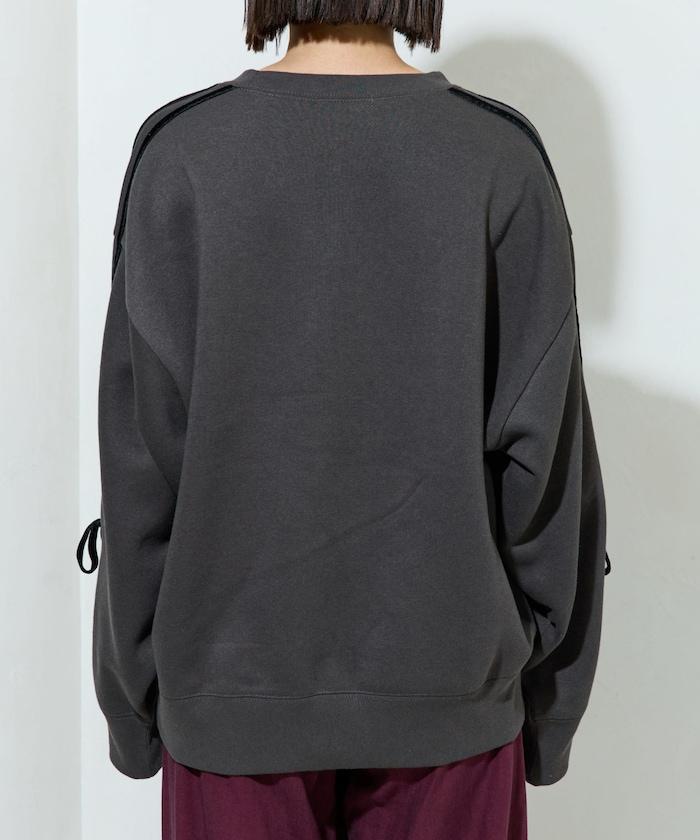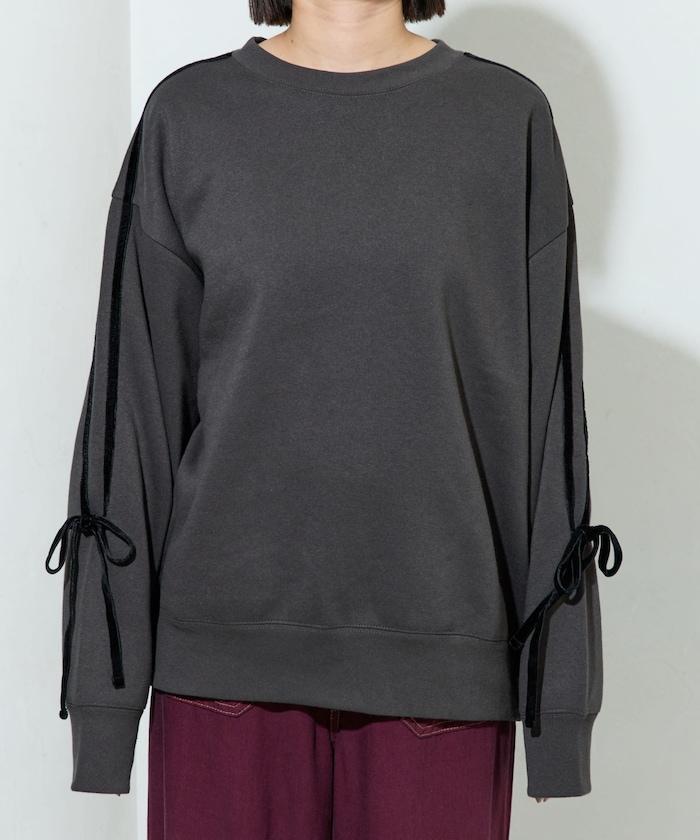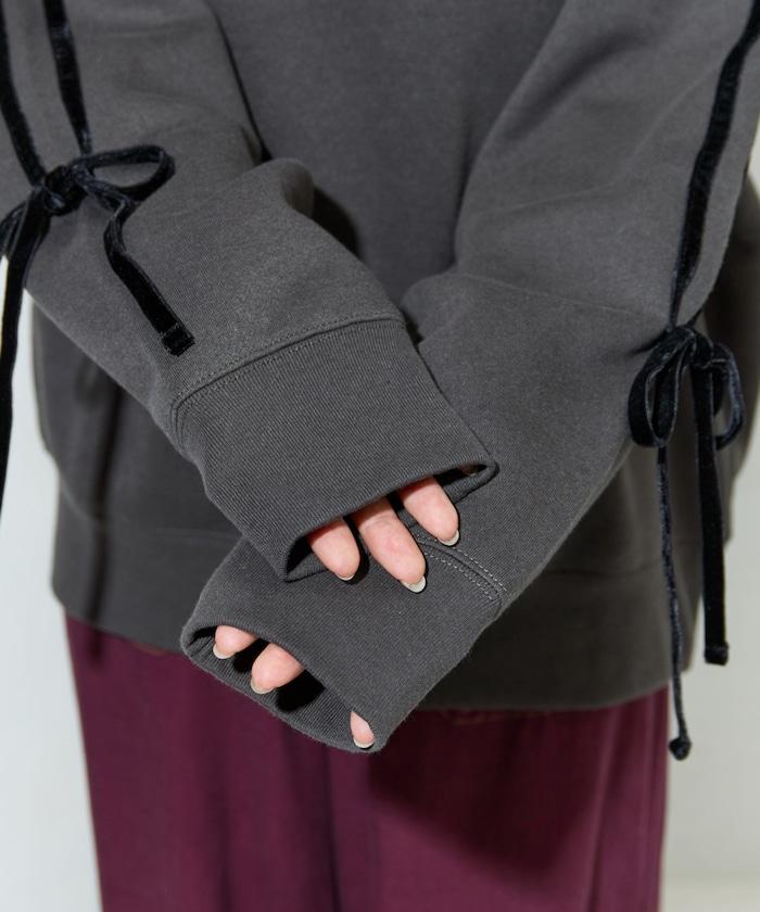 天鵝絨蝴蝶結條紋加絨衛衣套頭衫【限定展售】