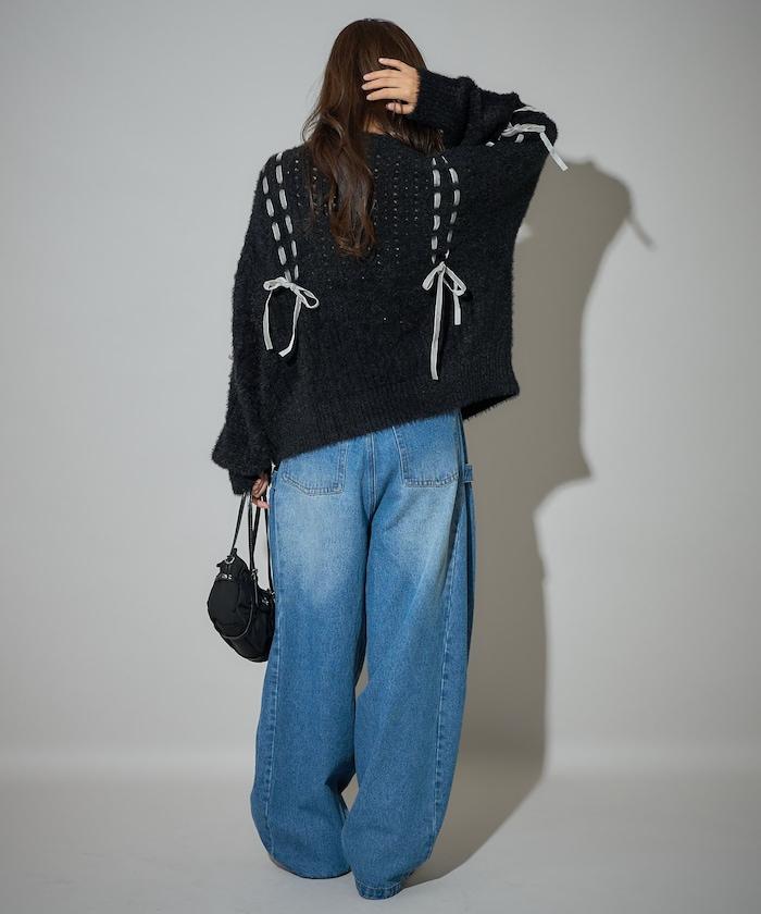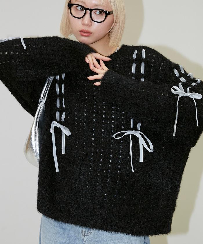 採用絲帶、鏤空和羽毛編織的少女針織衫,造型可愛。