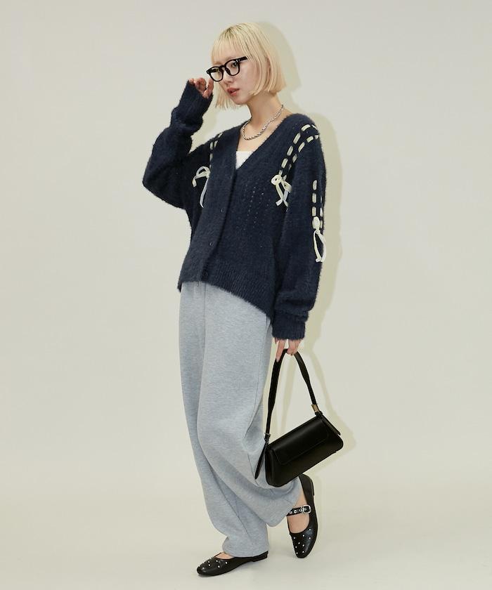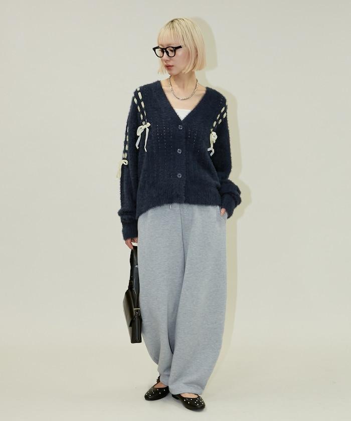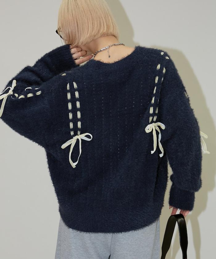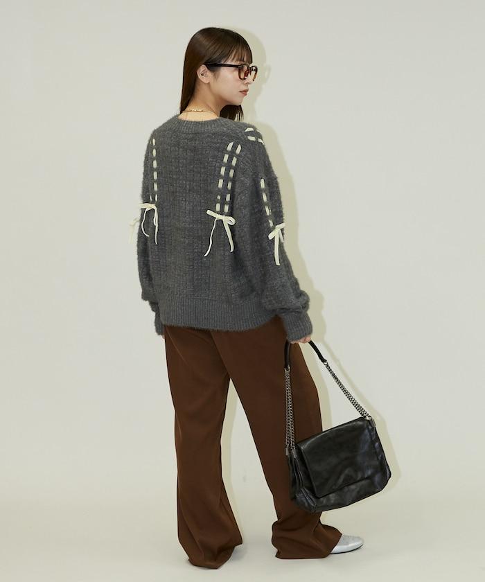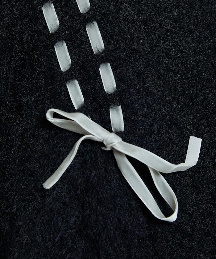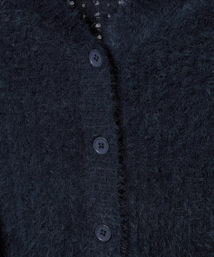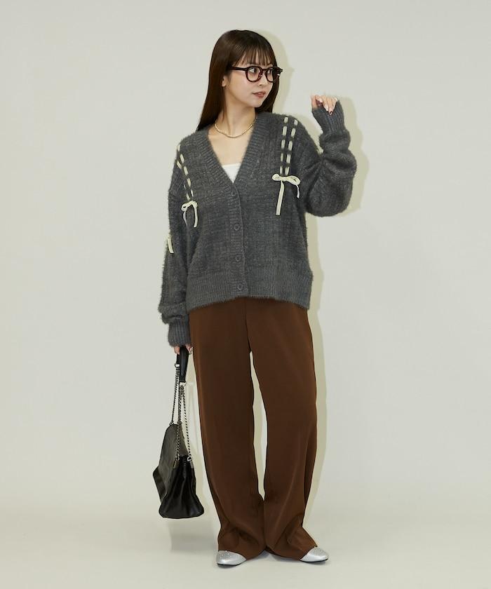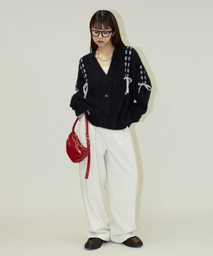 天鵝絨蝴蝶結編織羽毛針織開衫