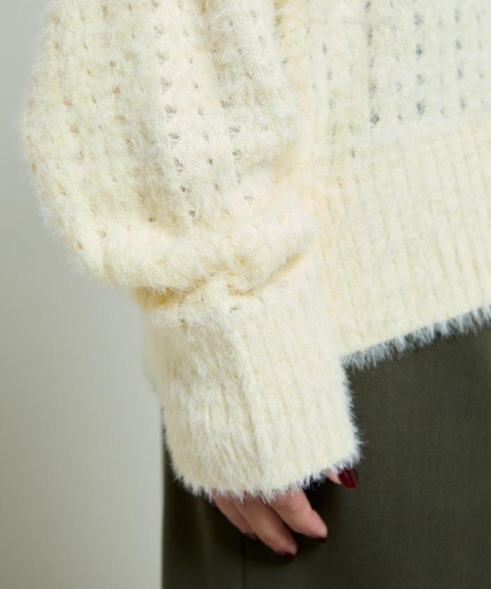 長絨毛針織營造出柔軟蓬鬆的氛圍,鏤空則給人一種慵懶的感覺。