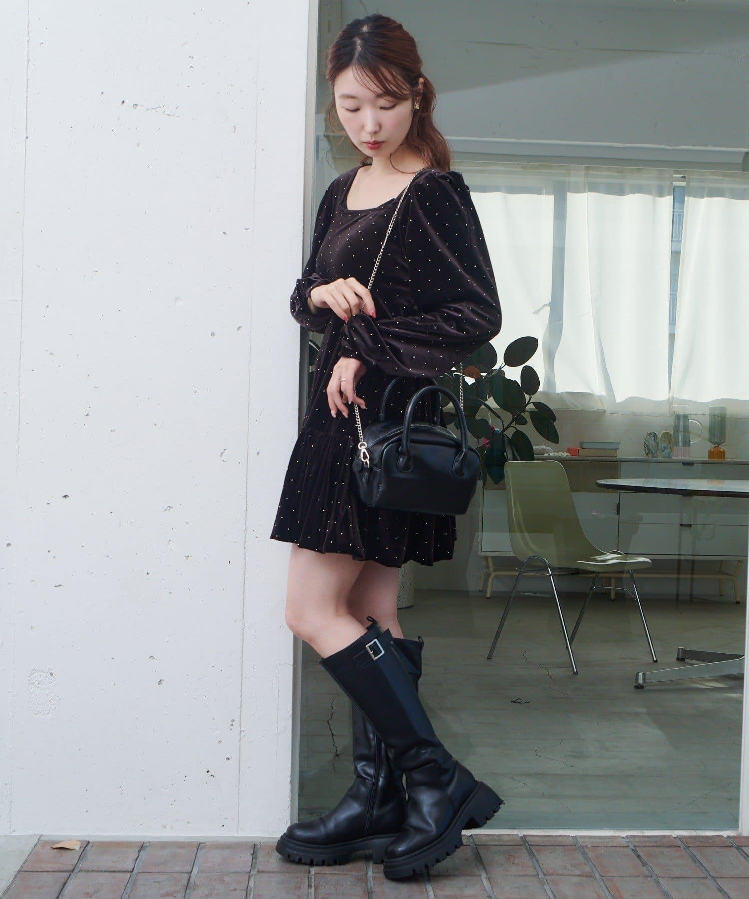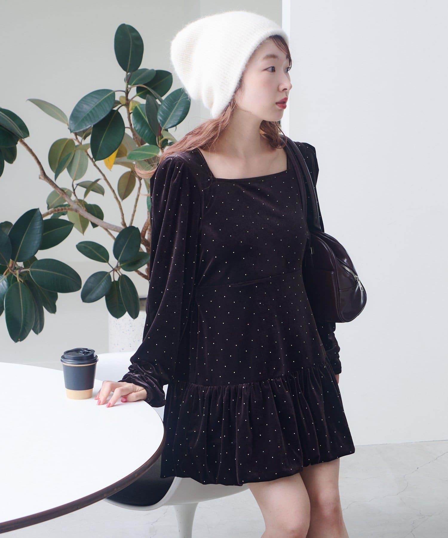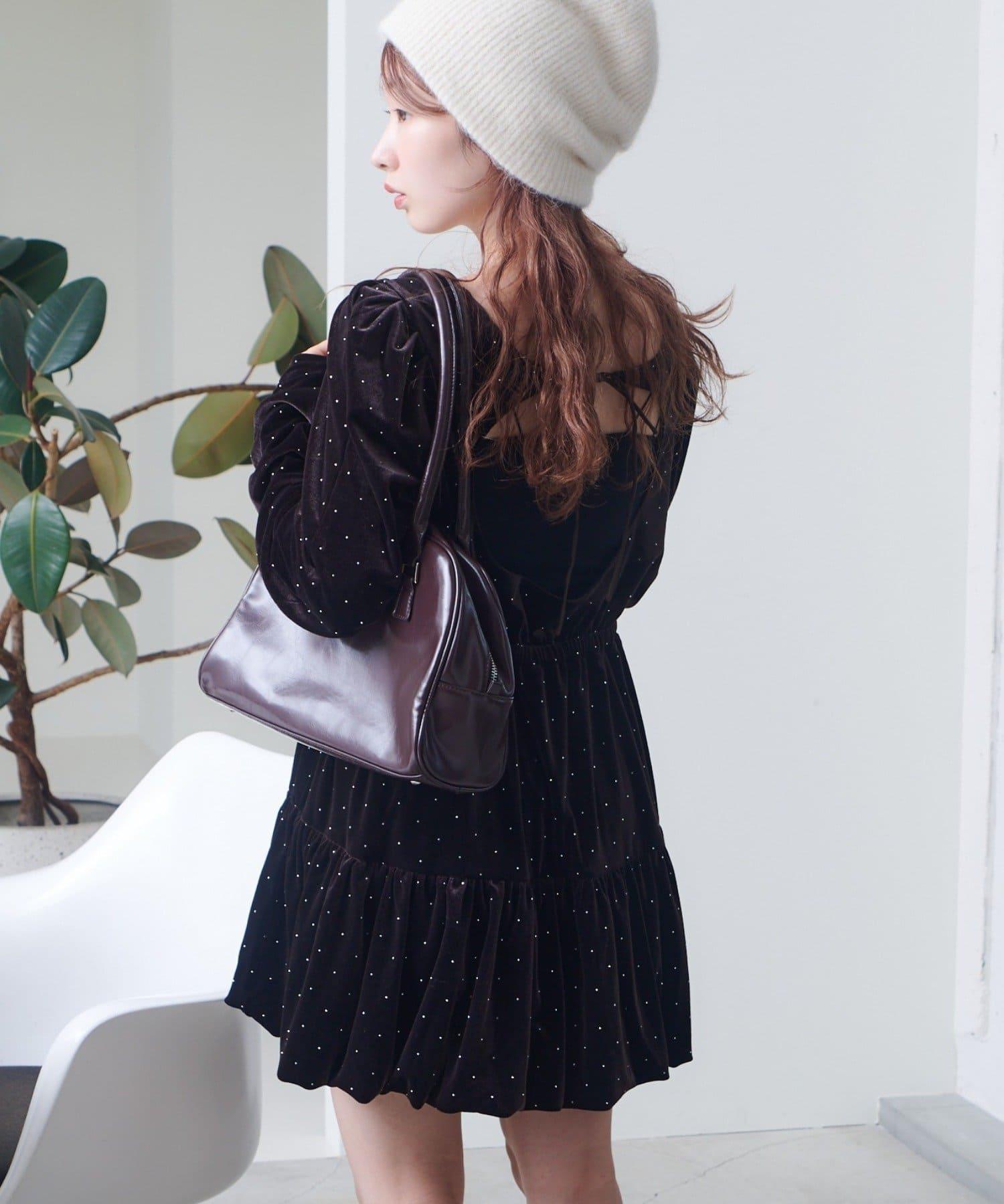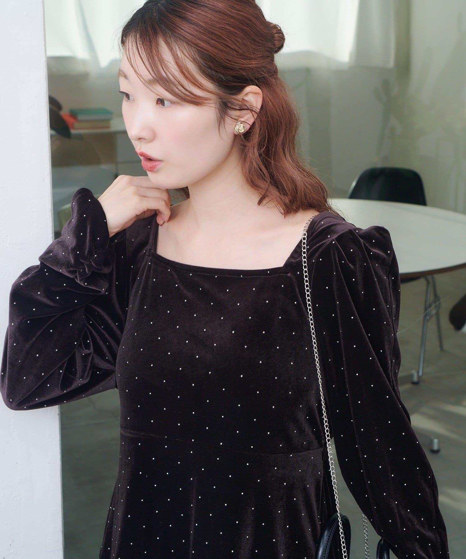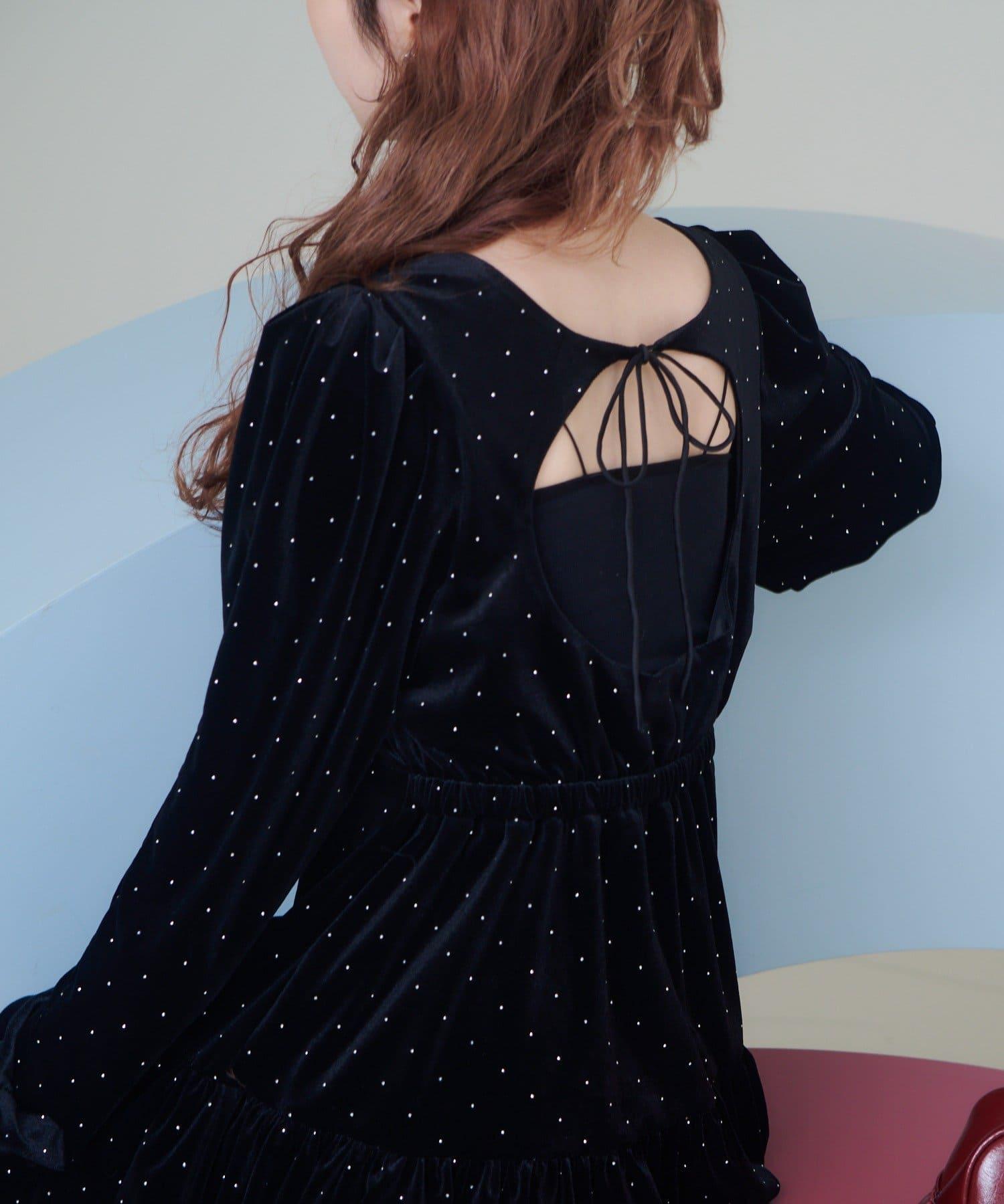 天鵝絨迷你連衣裙,飾有閃閃發光的精美鉚釘。
