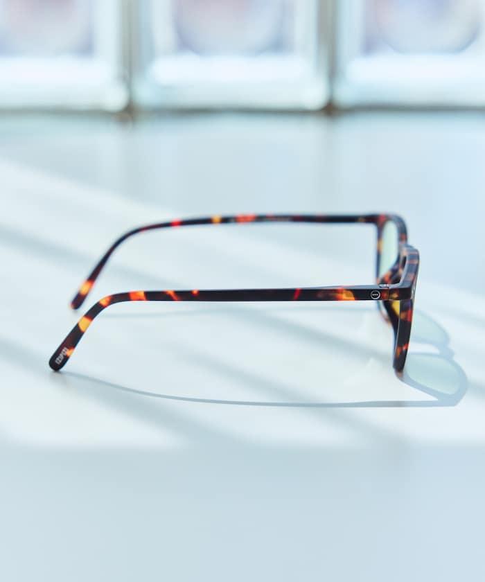 與其他 IZIPIZI 鏡架相比,#E 鏡架的尺寸更大,因此可以讓整個臉看起來更瘦更小。