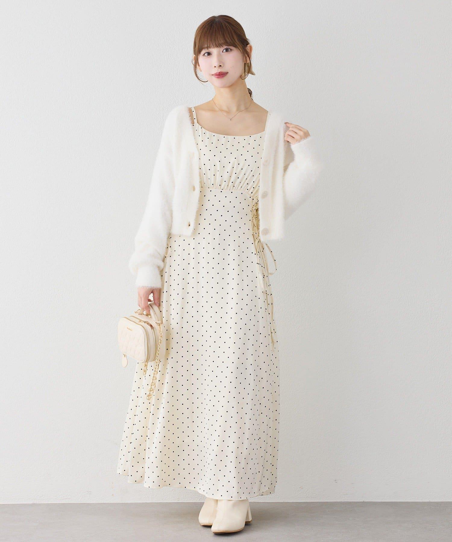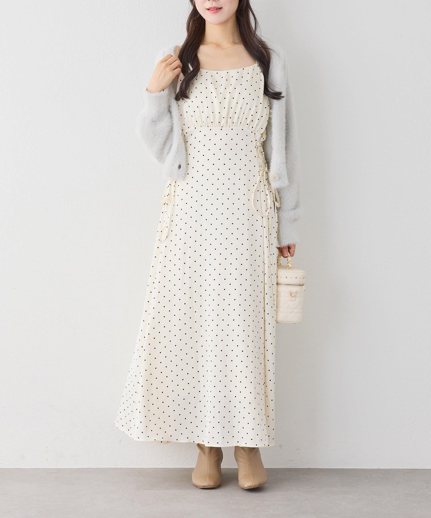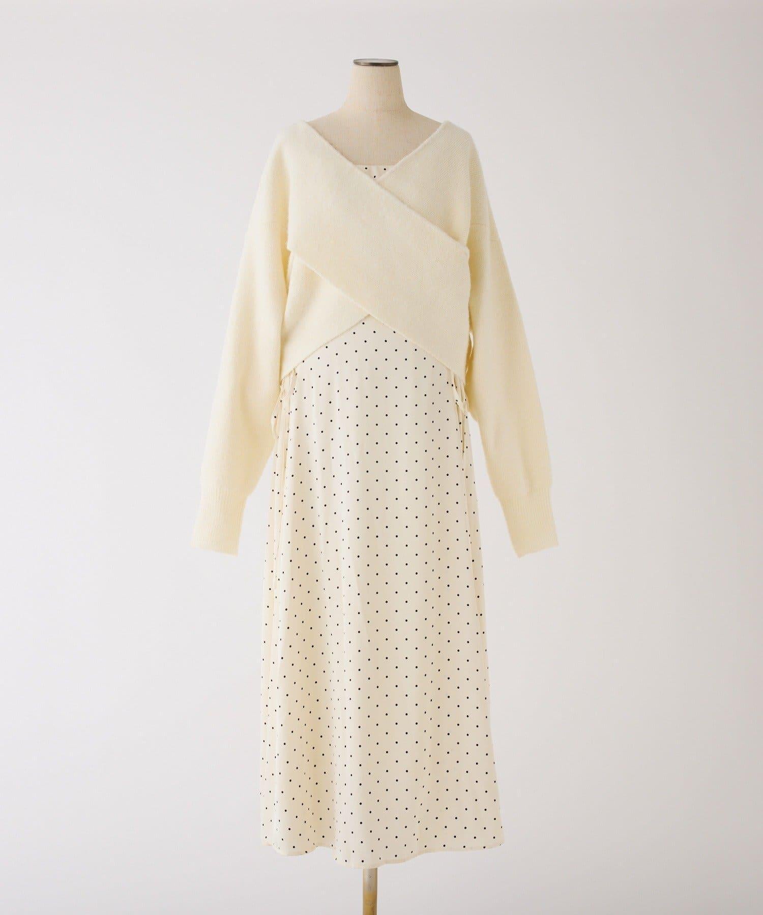 【套裝促銷商品】交叉針織&側邊繫帶吊帶連衣裙套裝