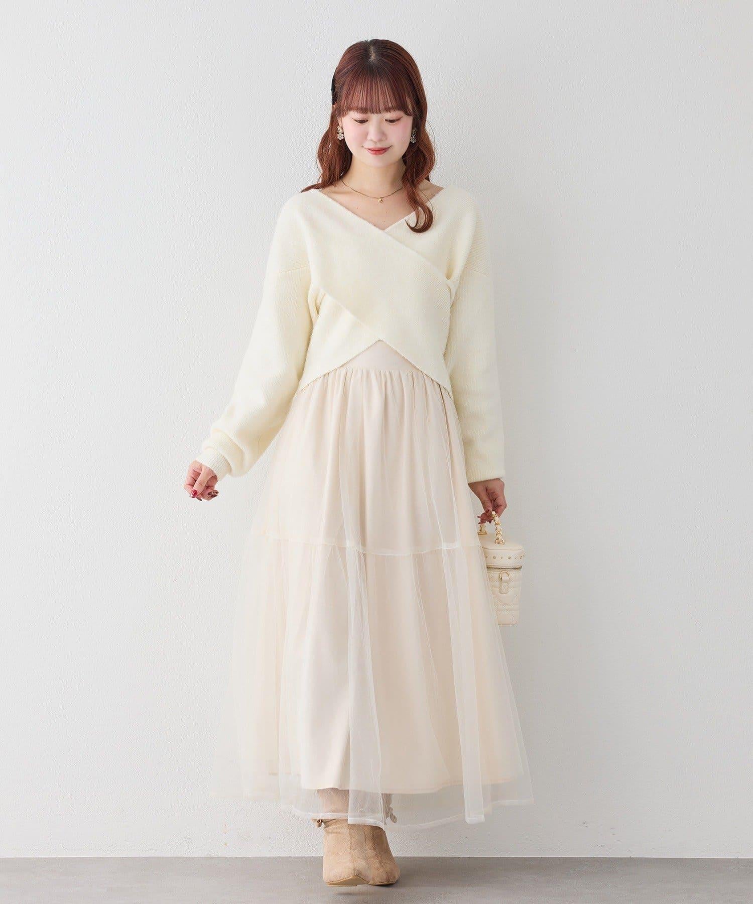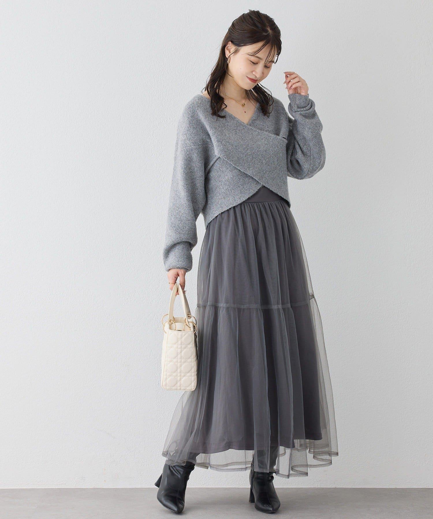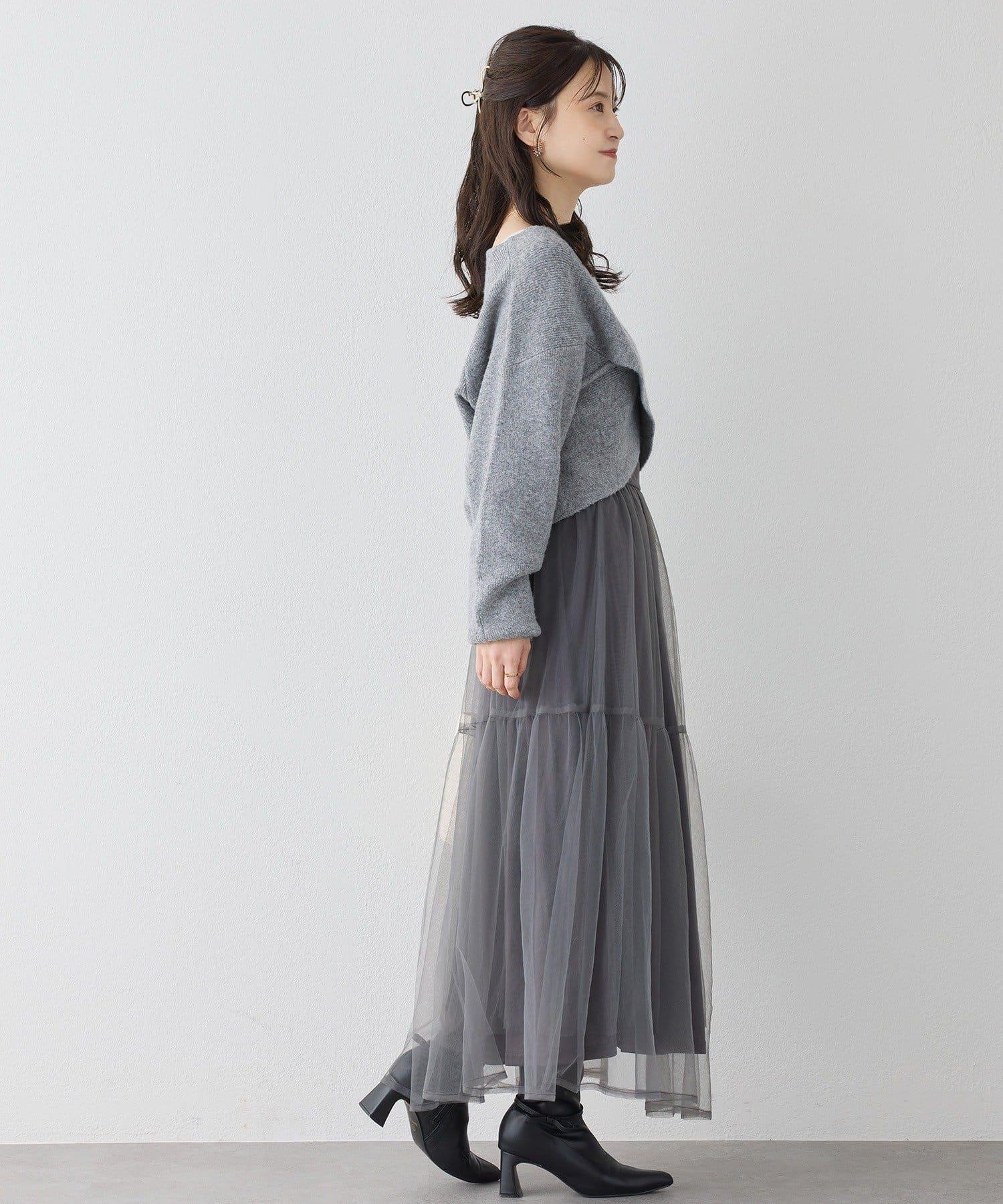 【套裝促銷商品】交叉針織&側邊繫帶吊帶連衣裙套裝