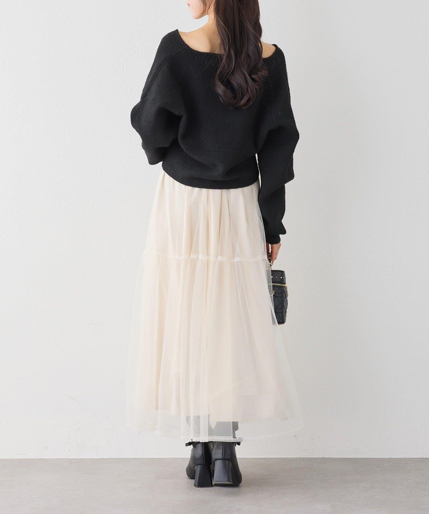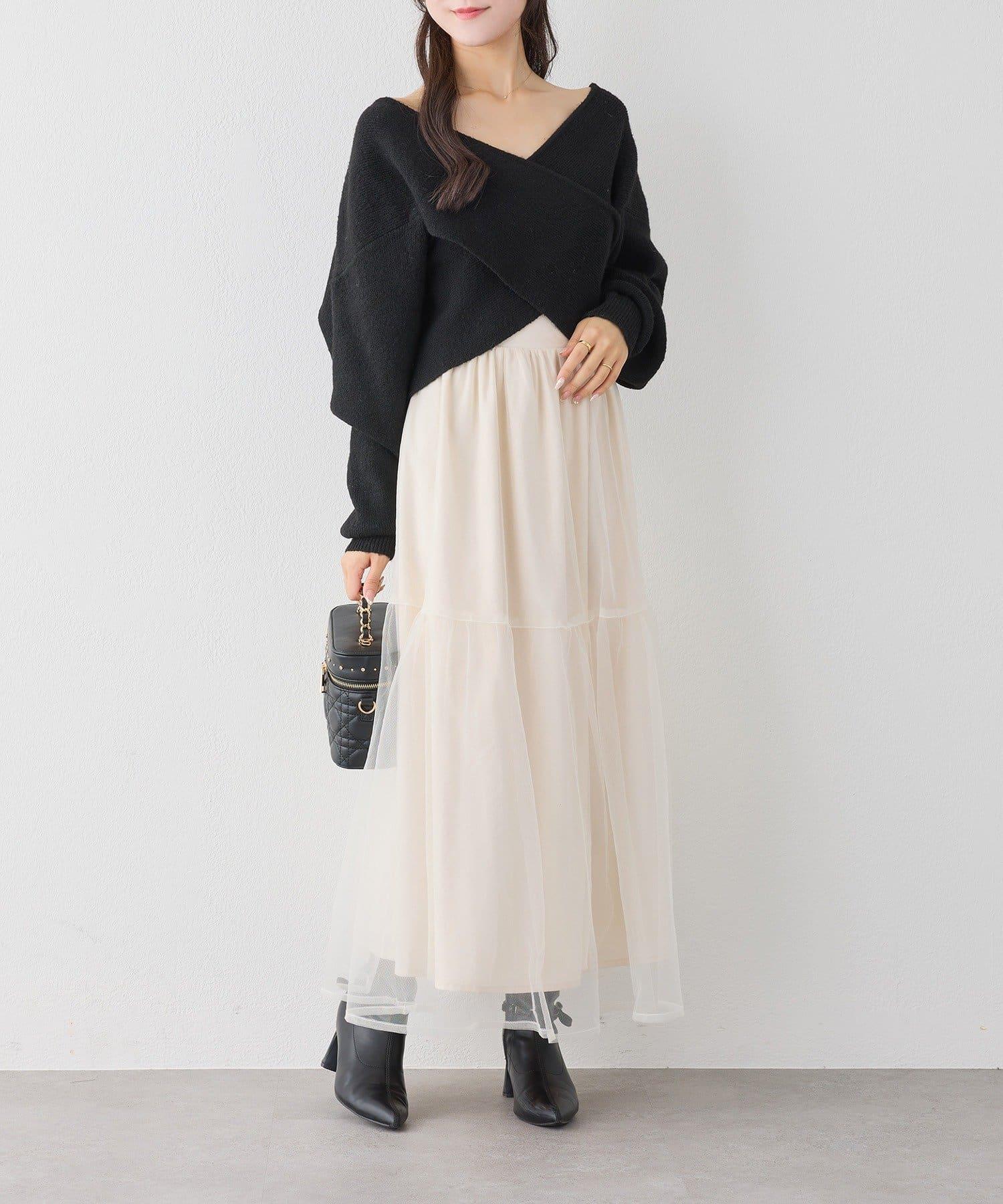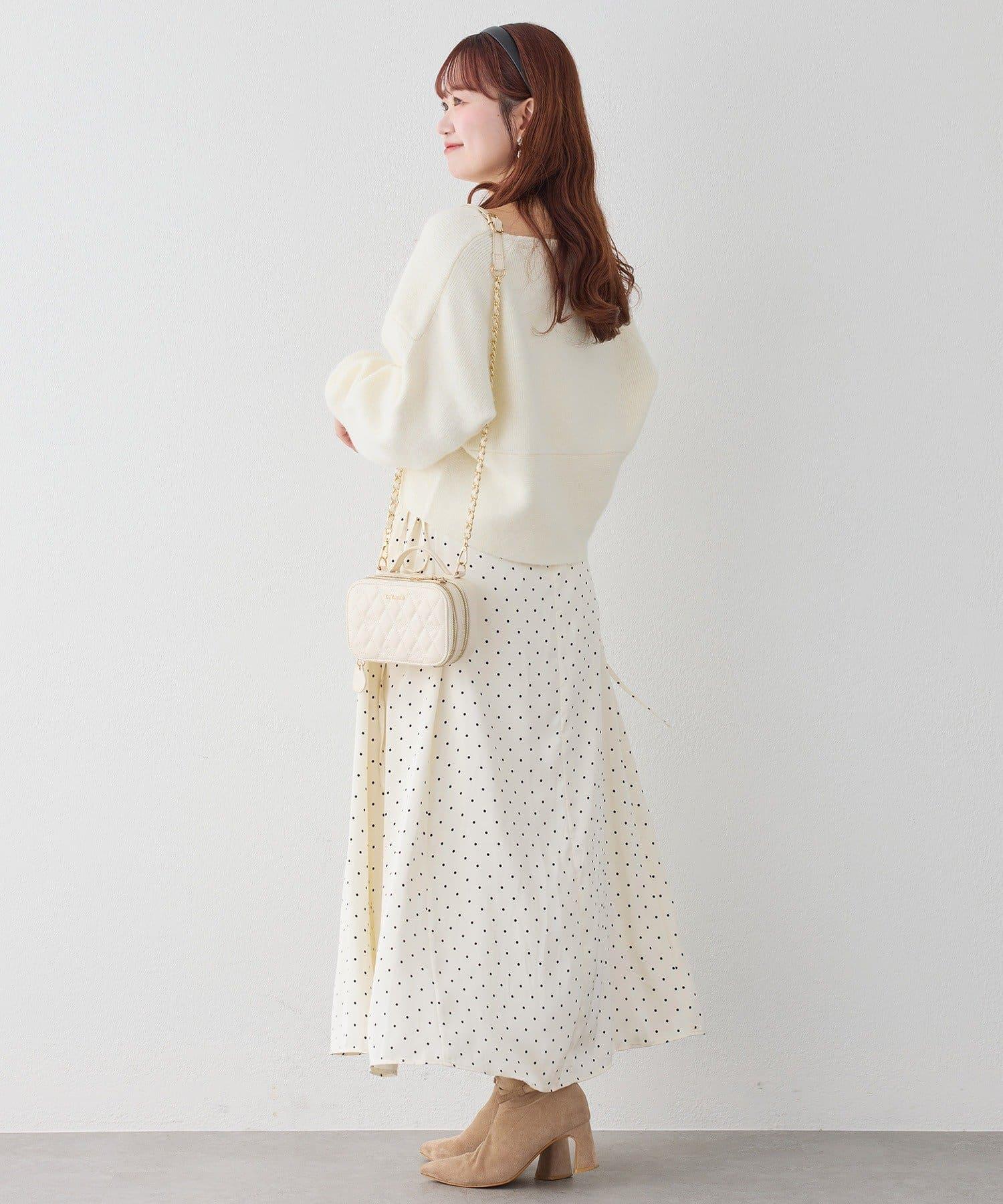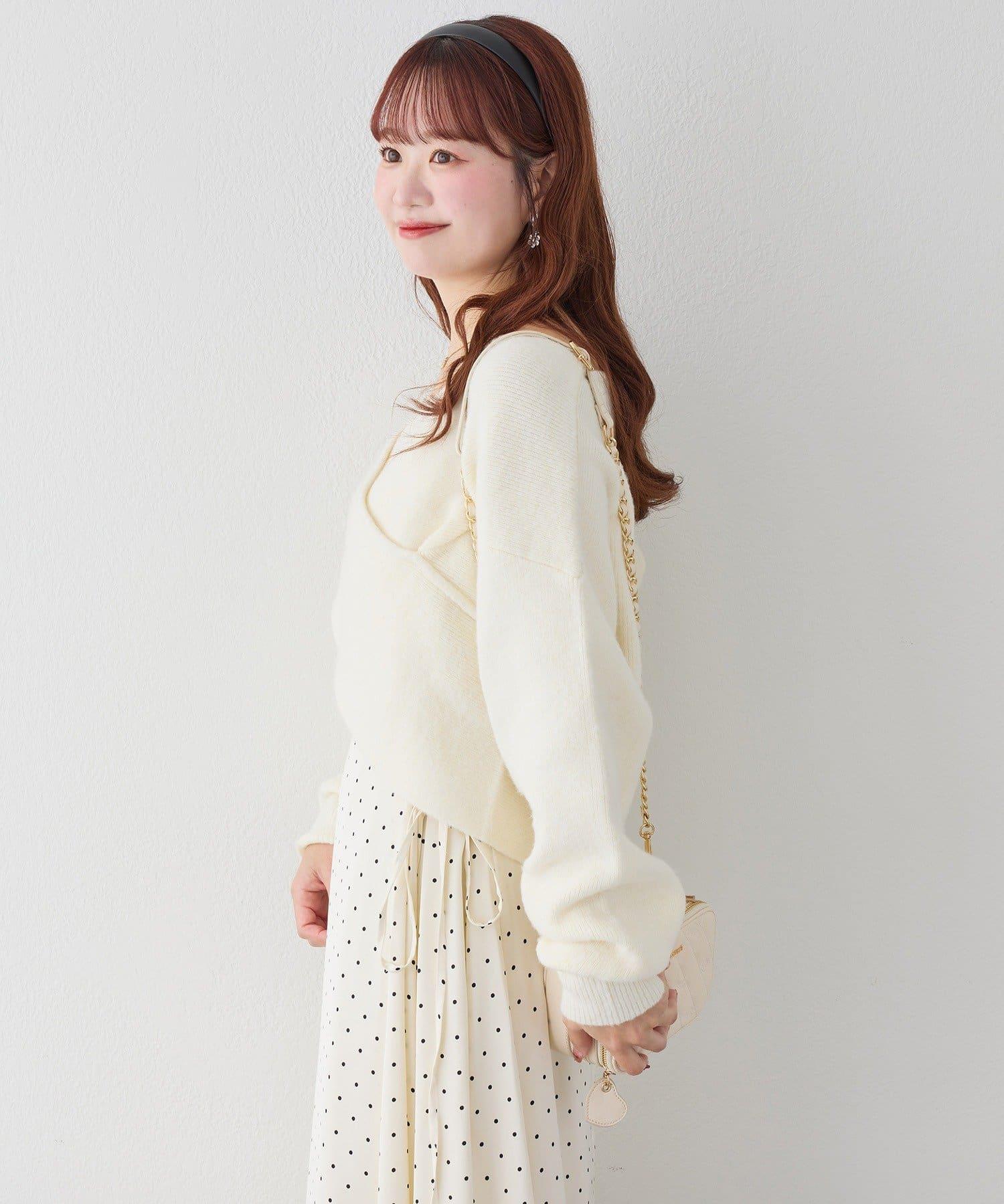針織衫採用適度合身的十字設計,給人以女性化的印象、