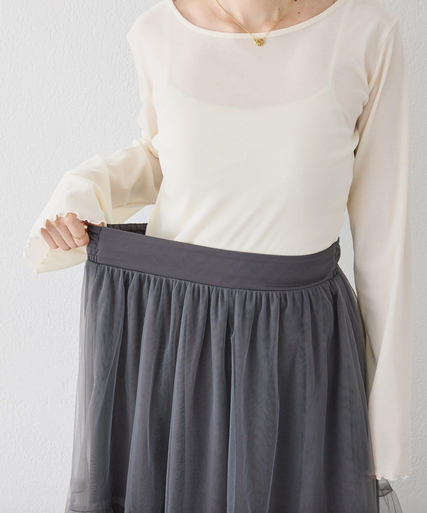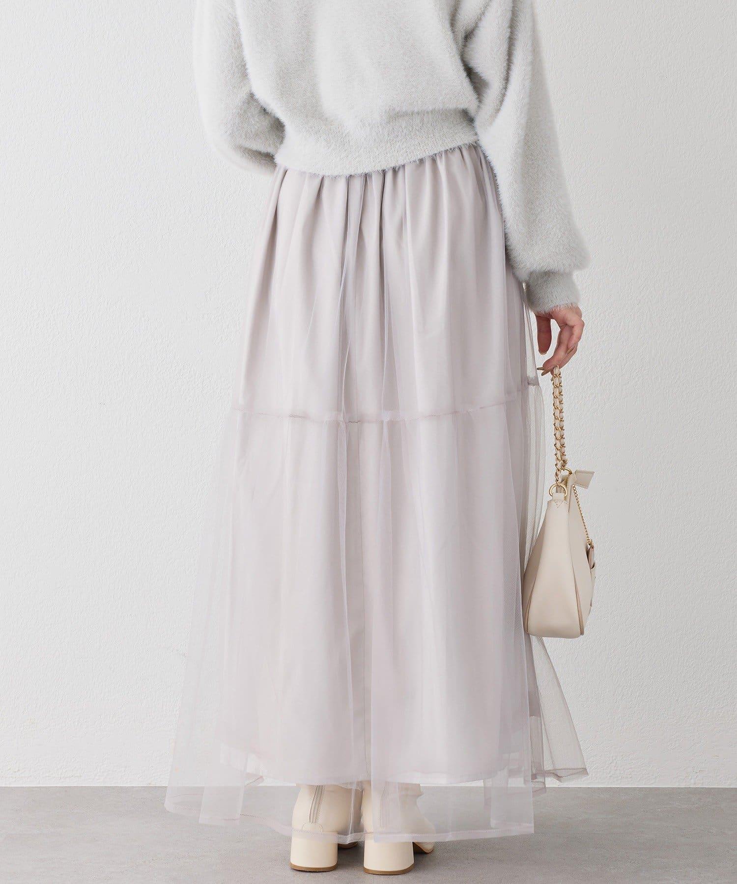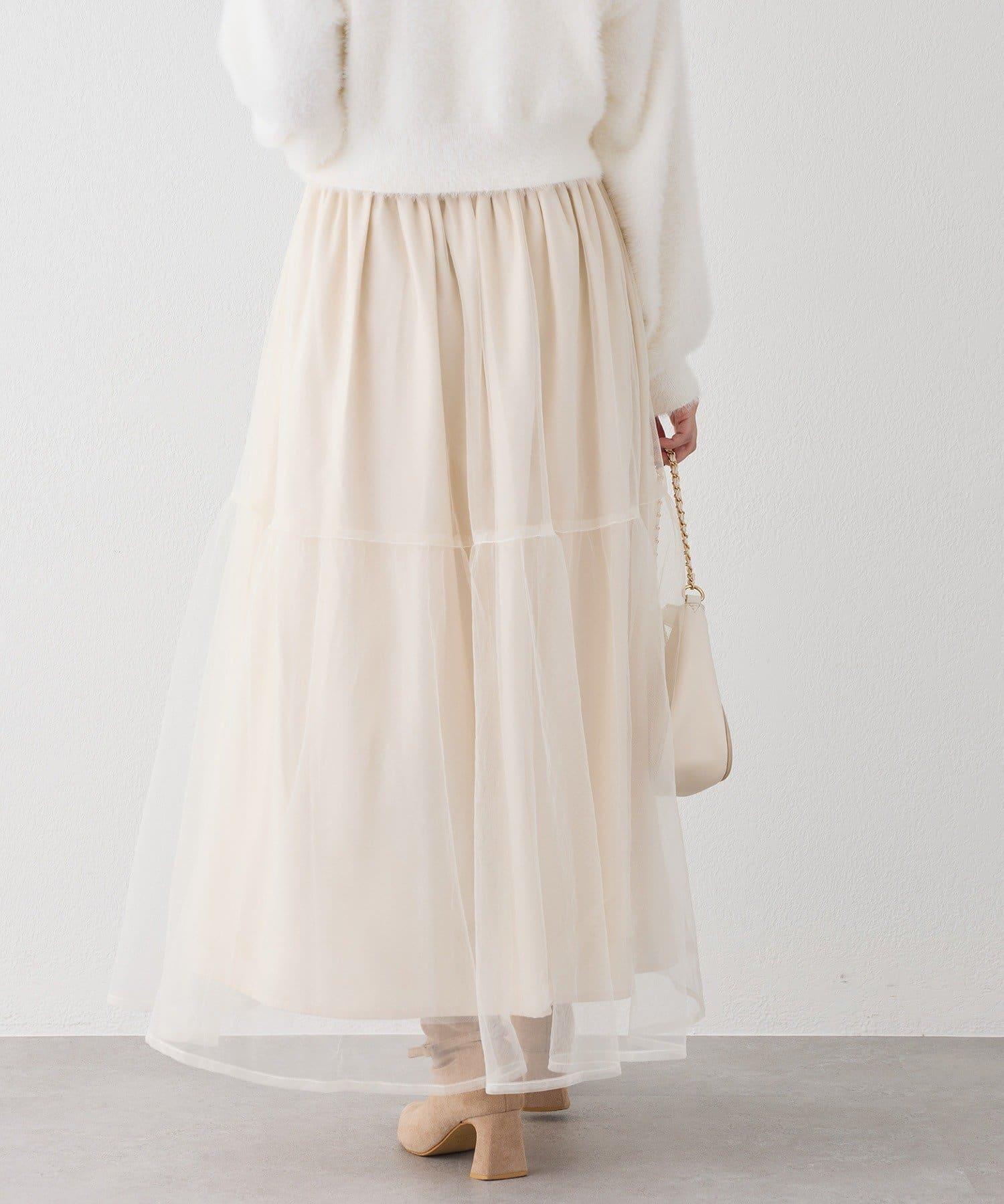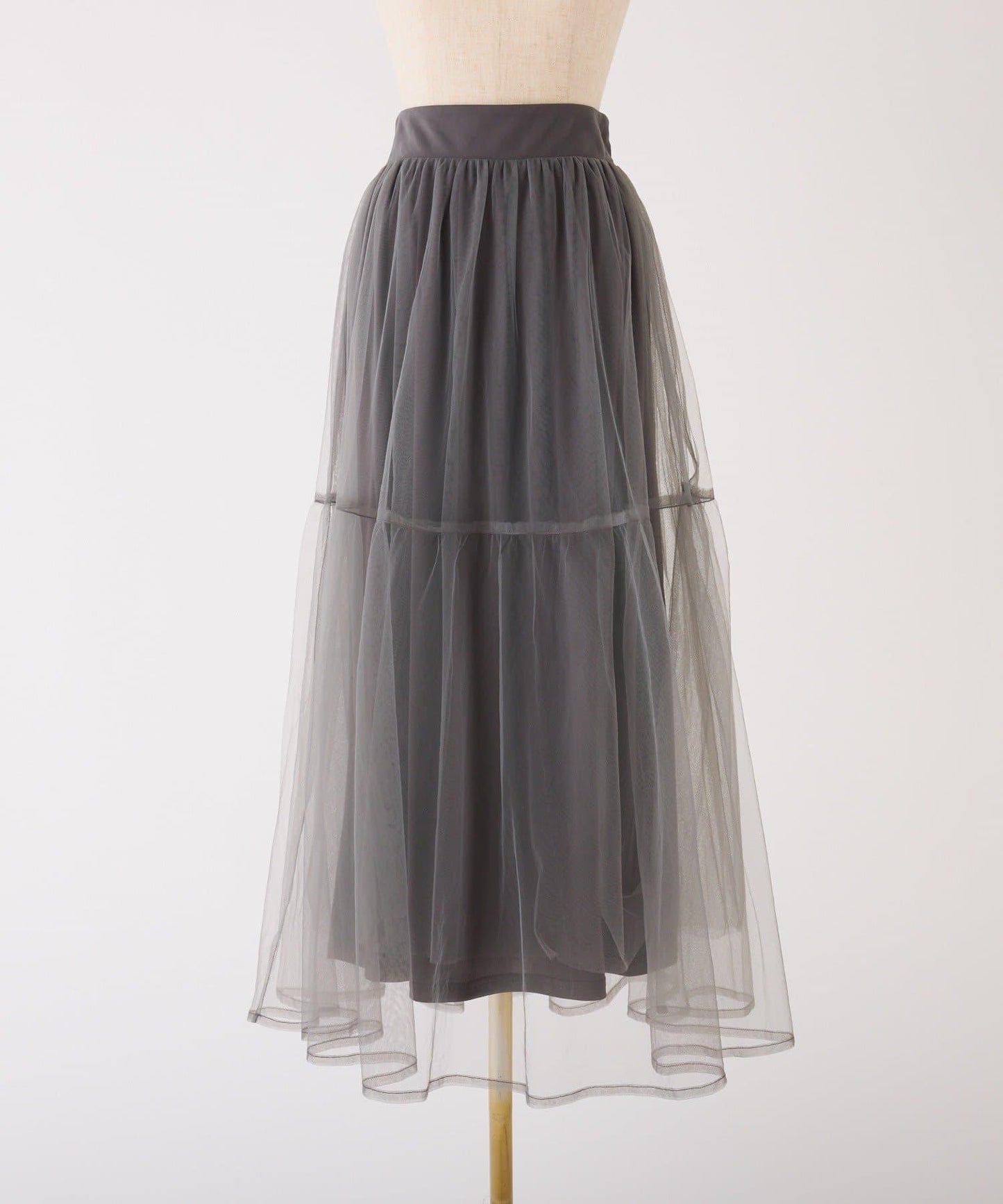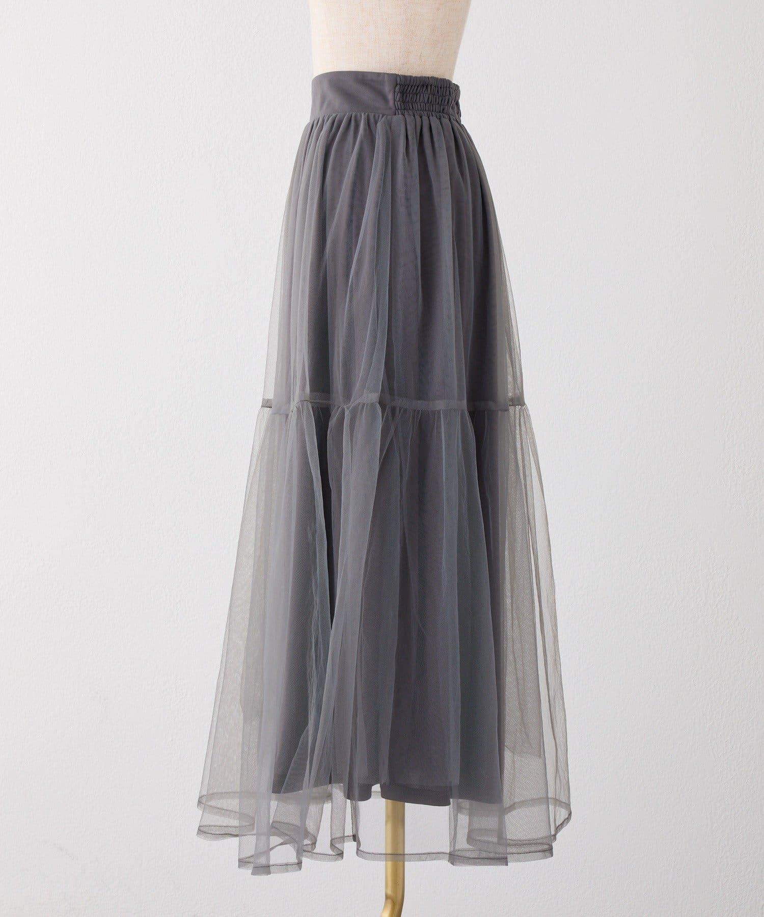 喇叭形長裙由柔軟輕盈的薄紗製成。