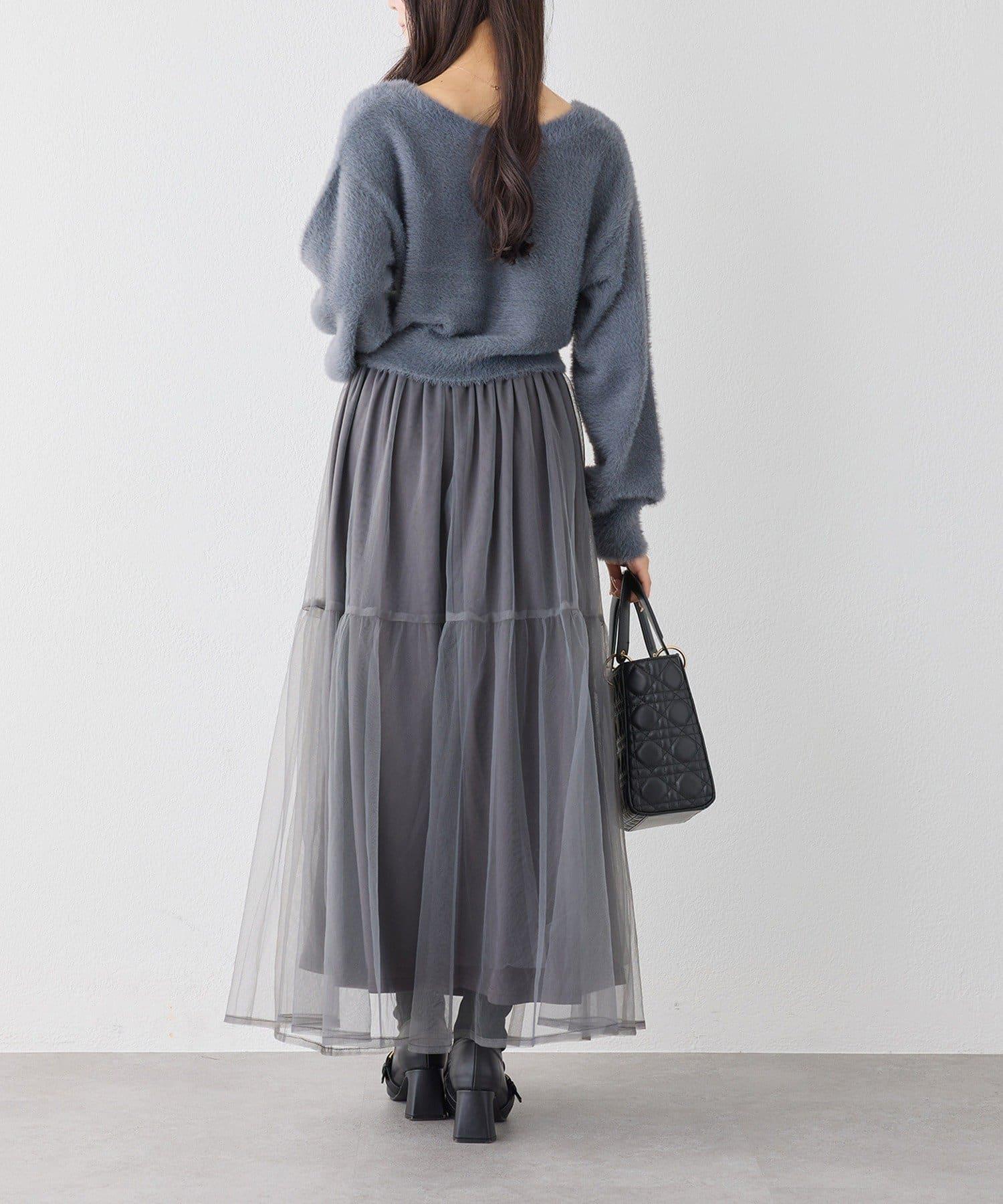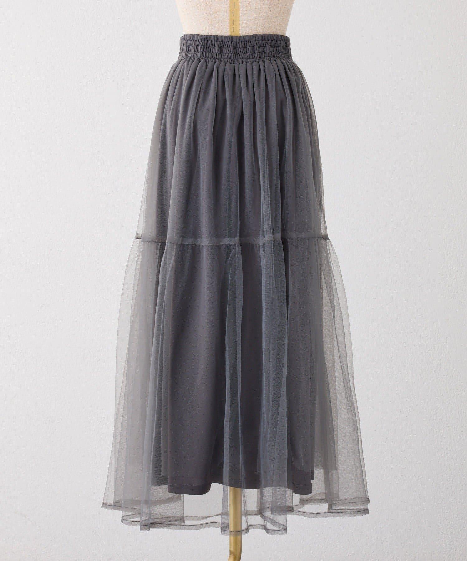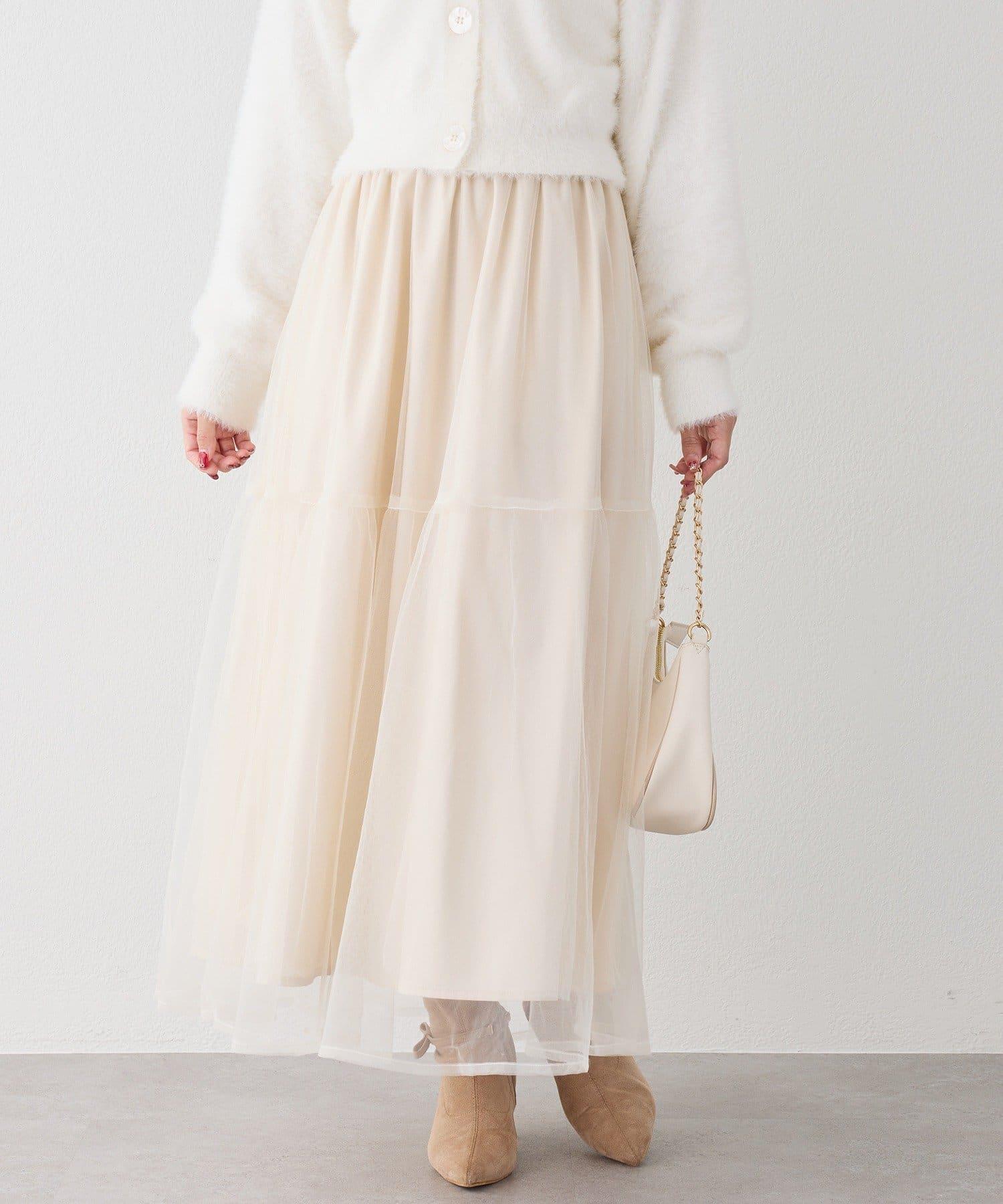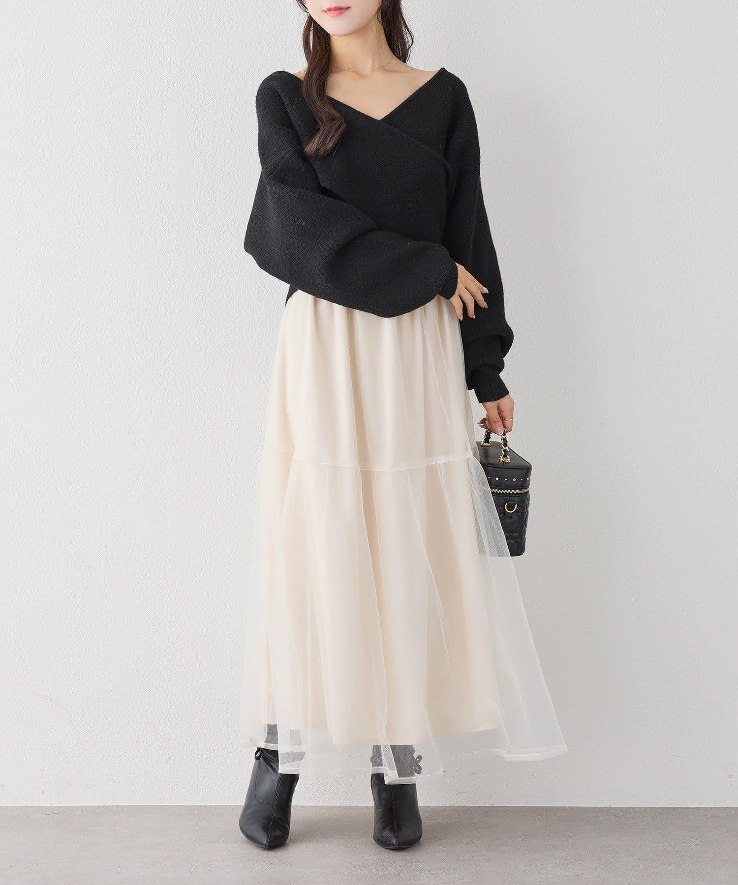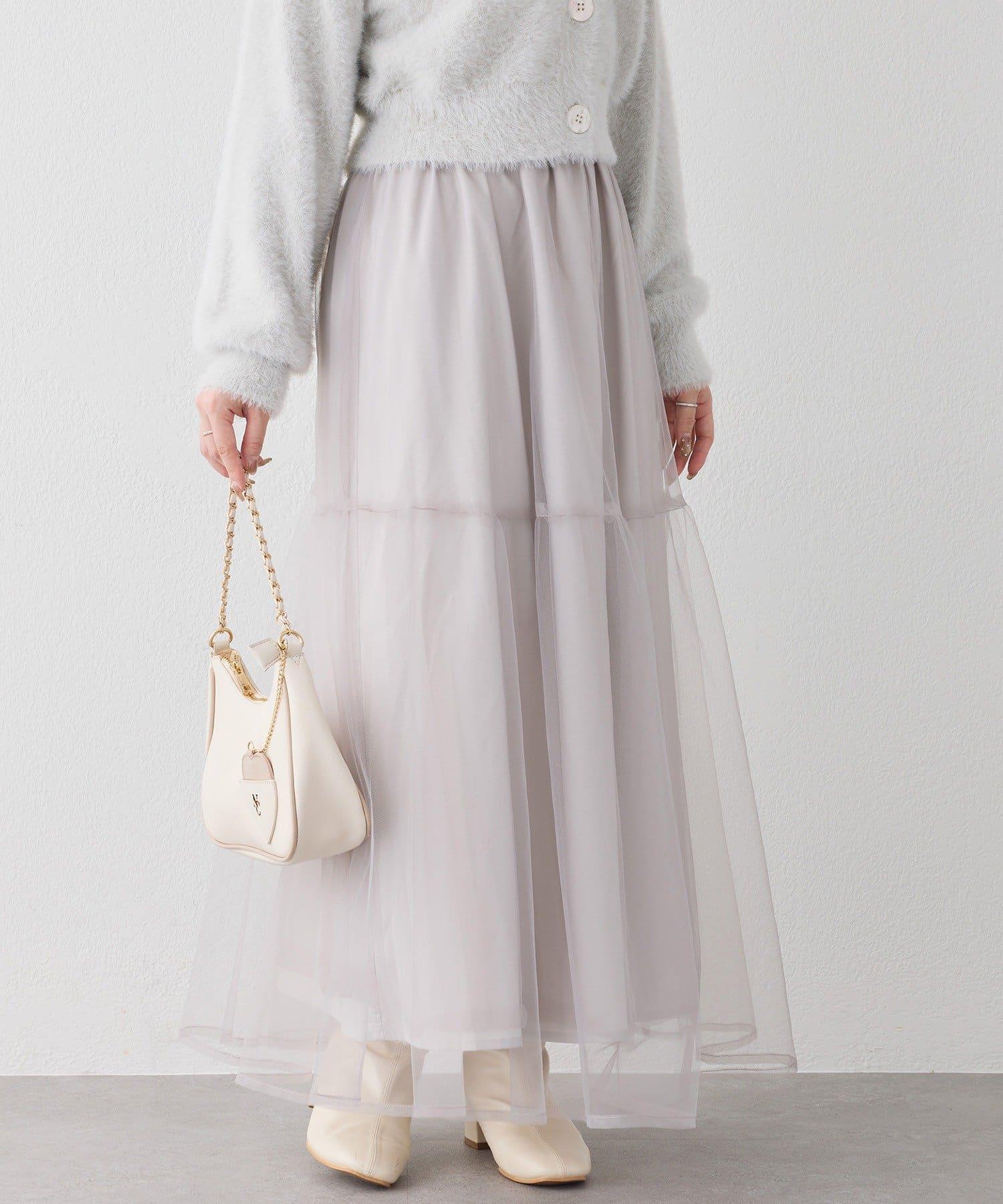 喇叭形長裙由柔軟輕盈的薄紗製成。