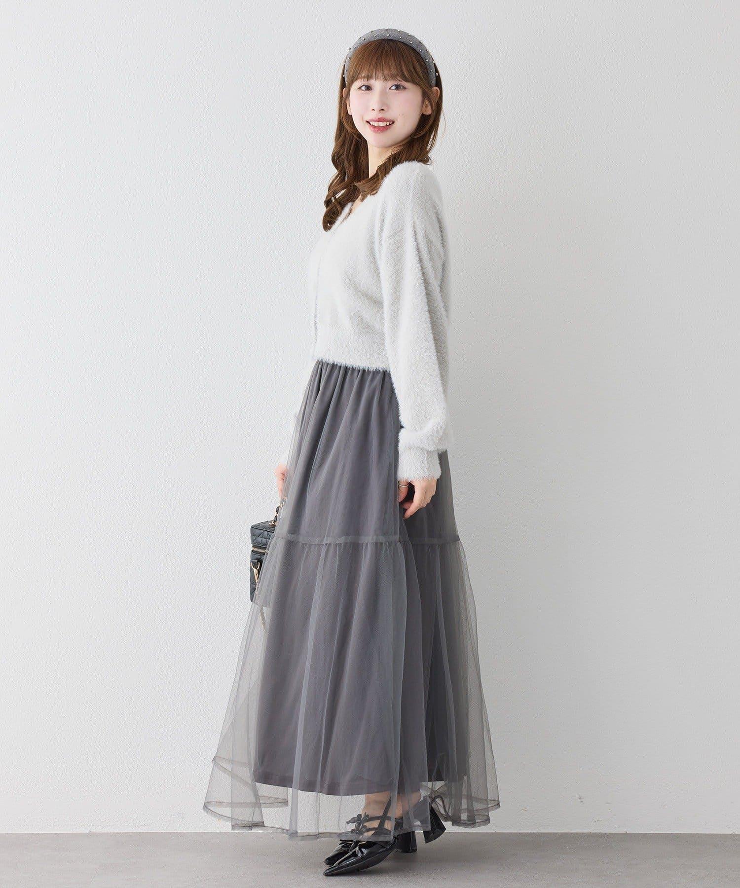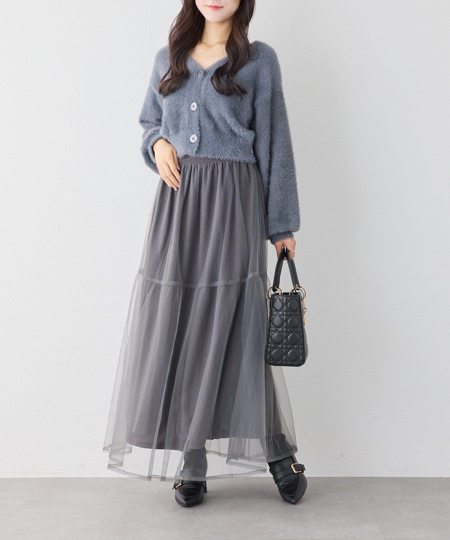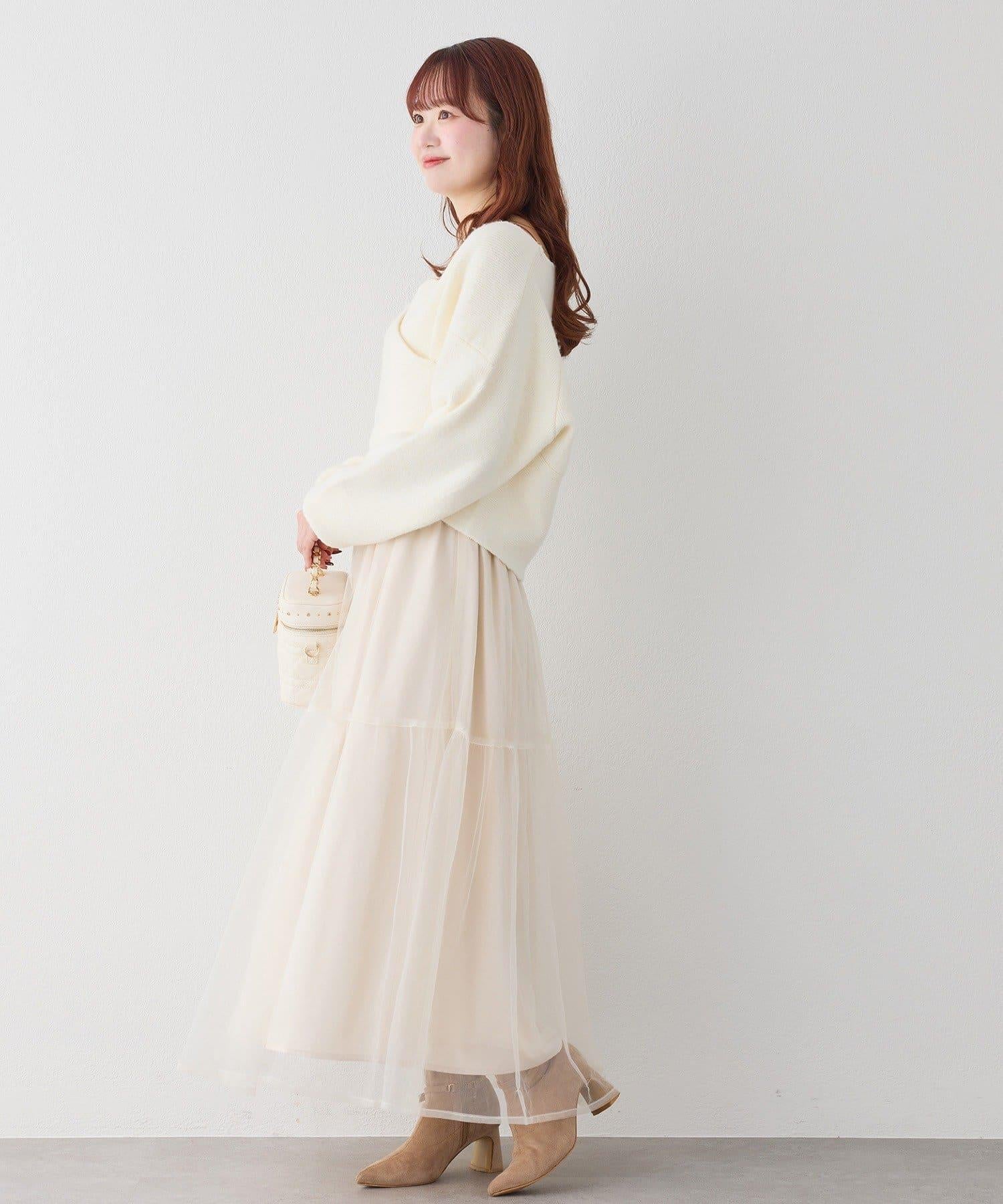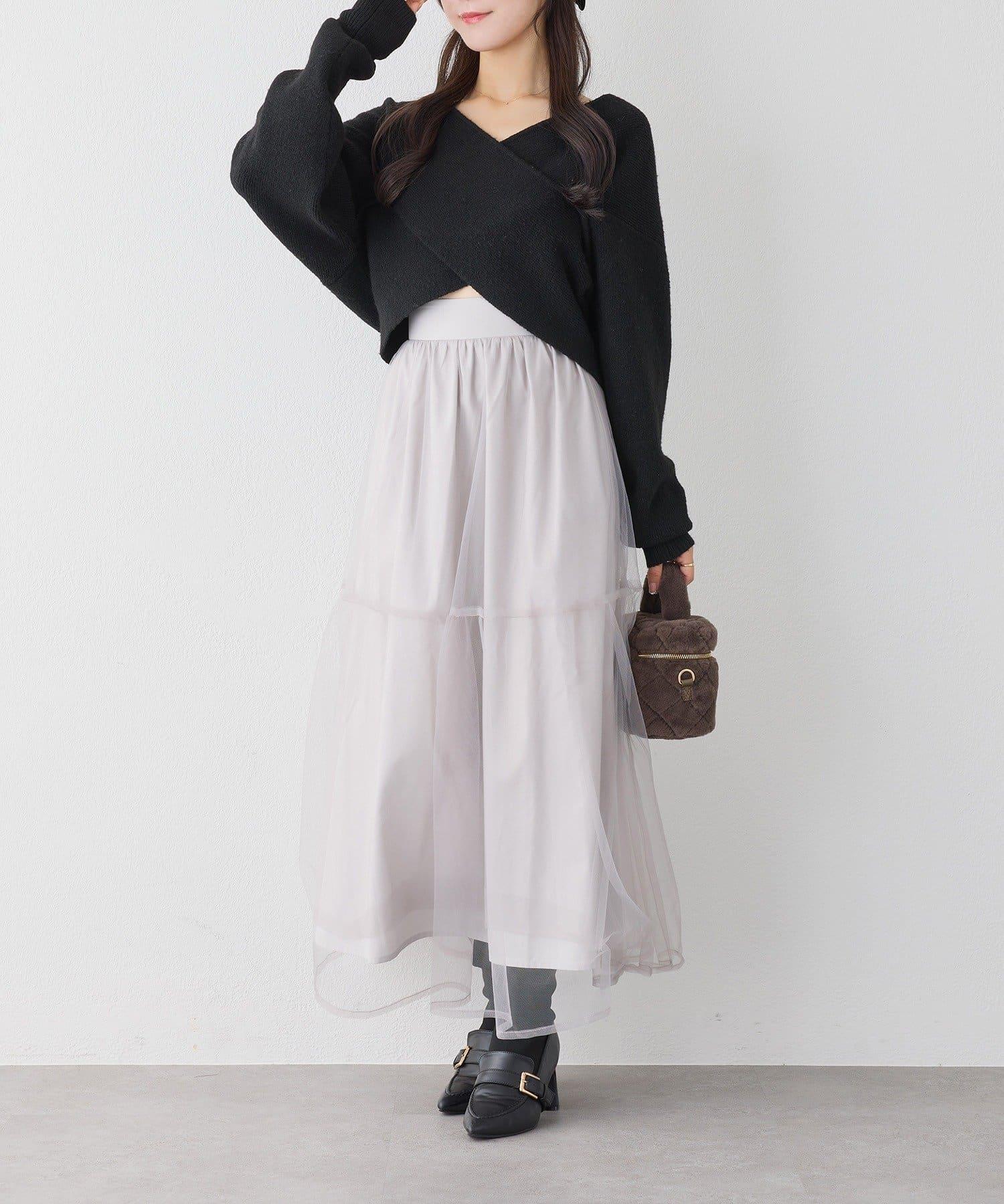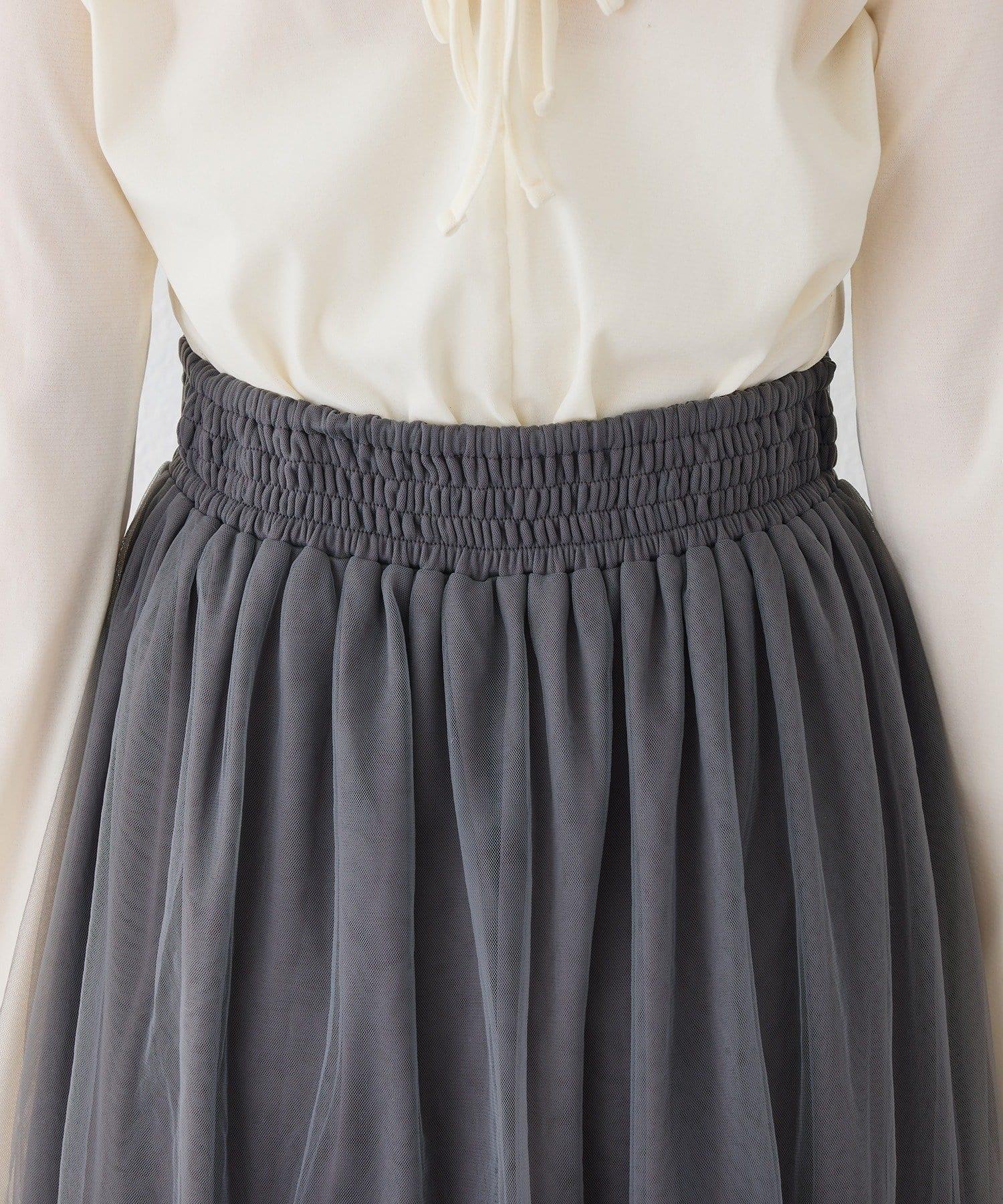 喇叭形長裙由柔軟輕盈的薄紗製成。