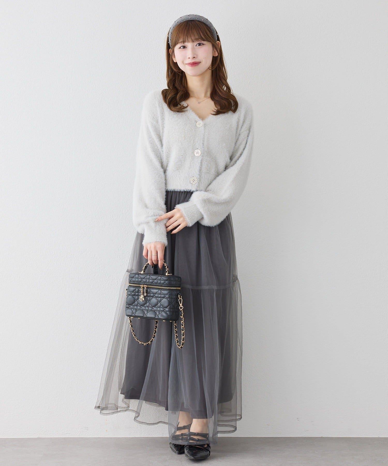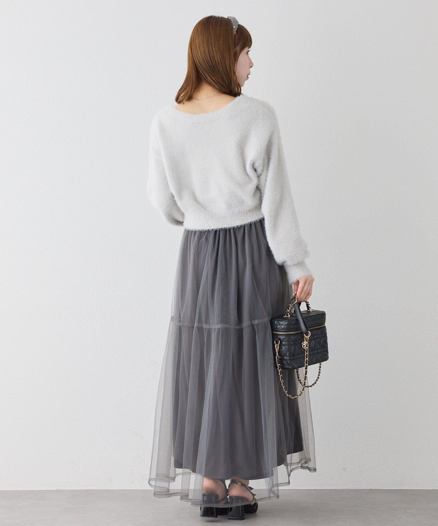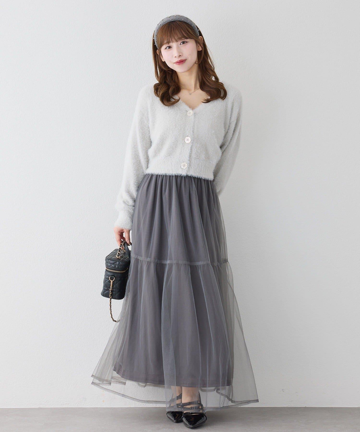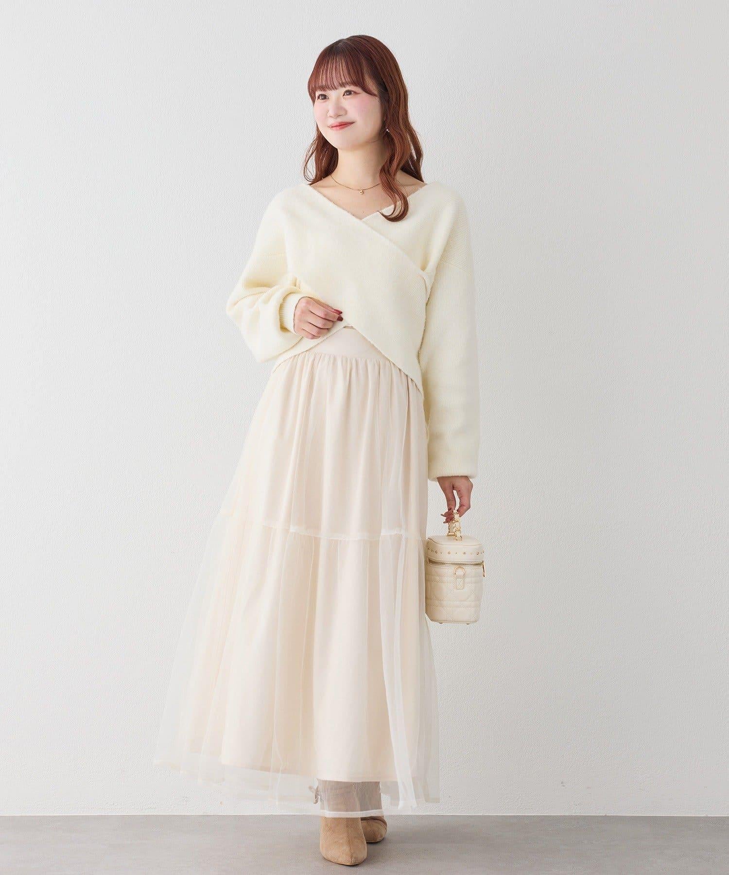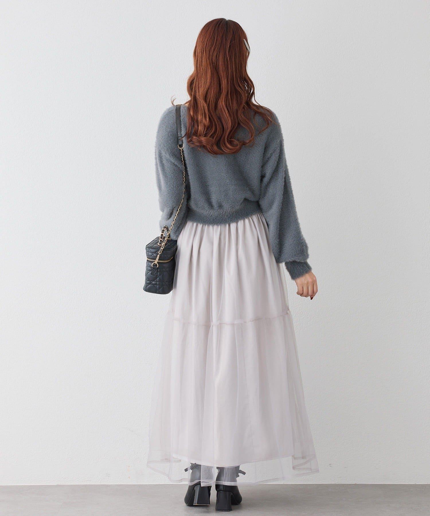 喇叭形長裙由柔軟輕盈的薄紗製成。
