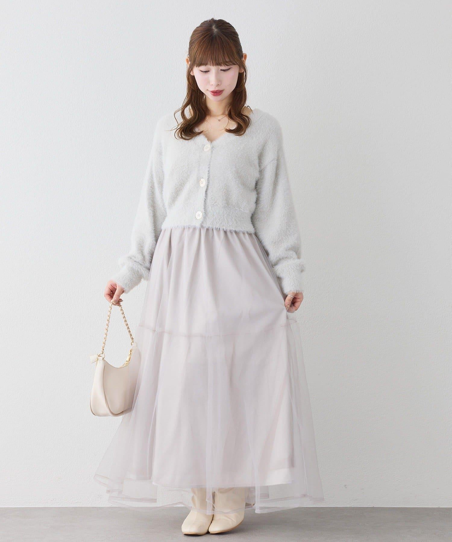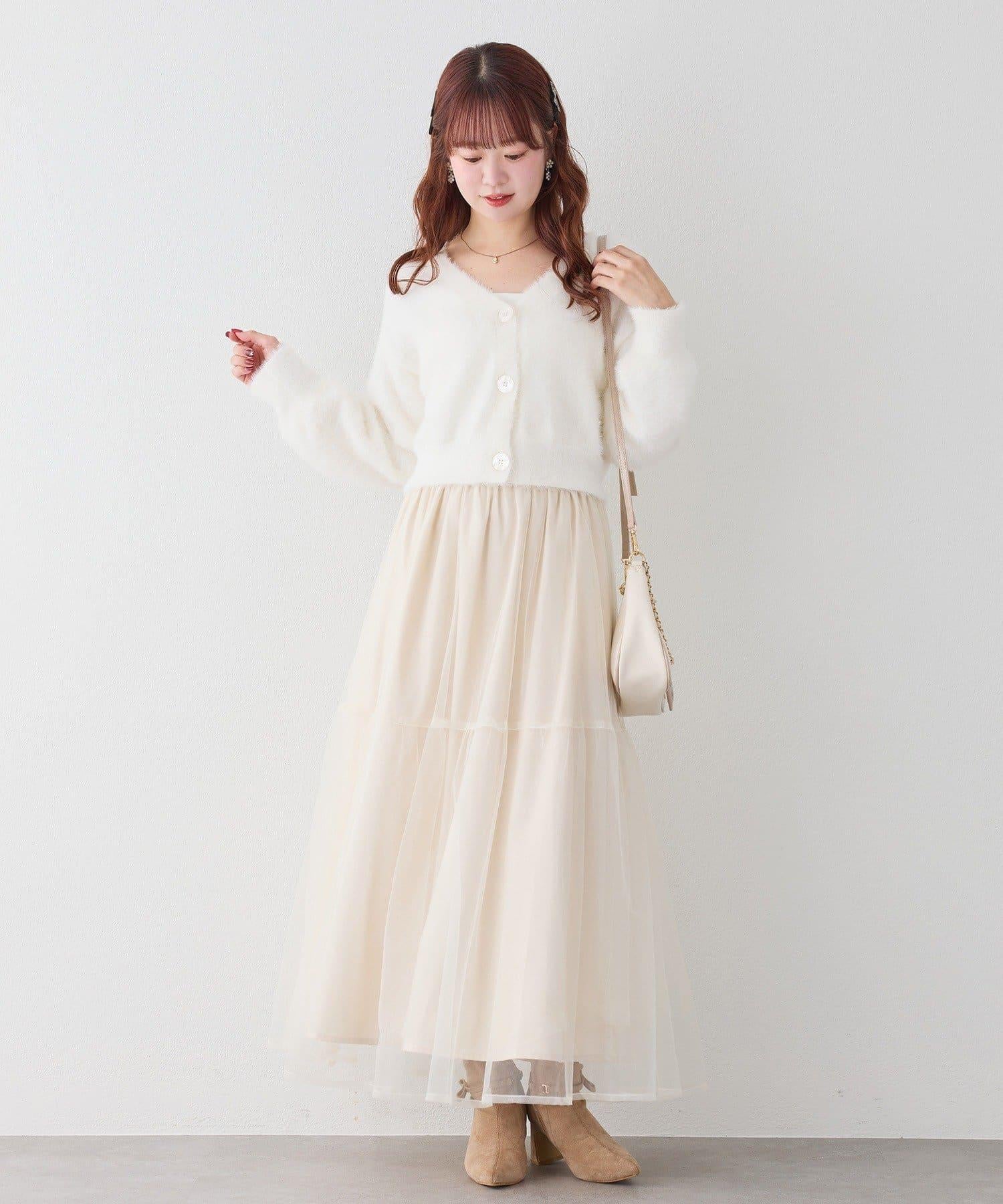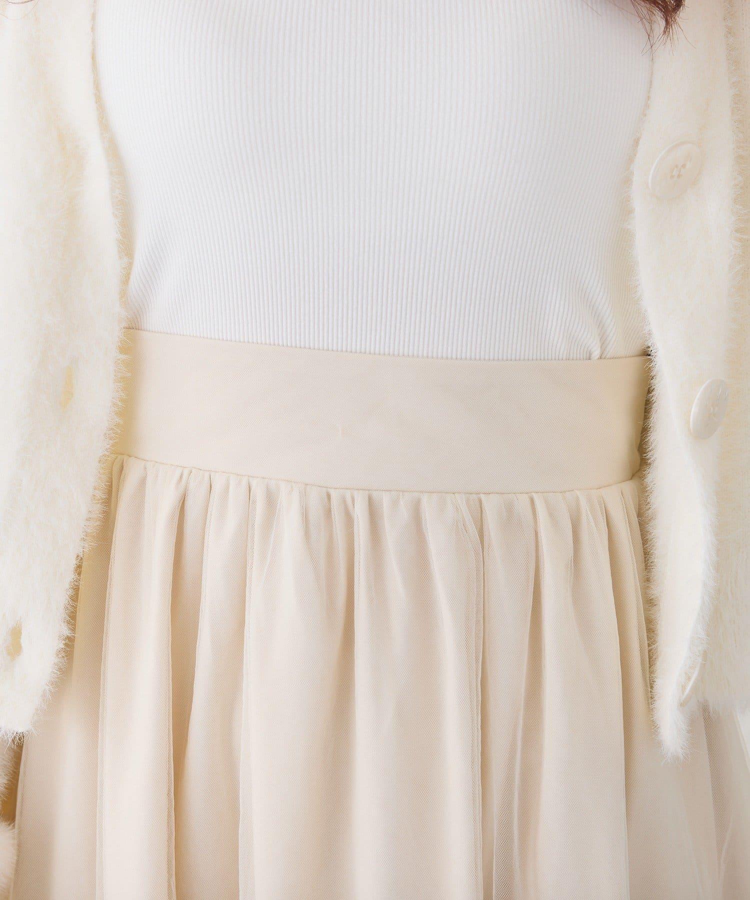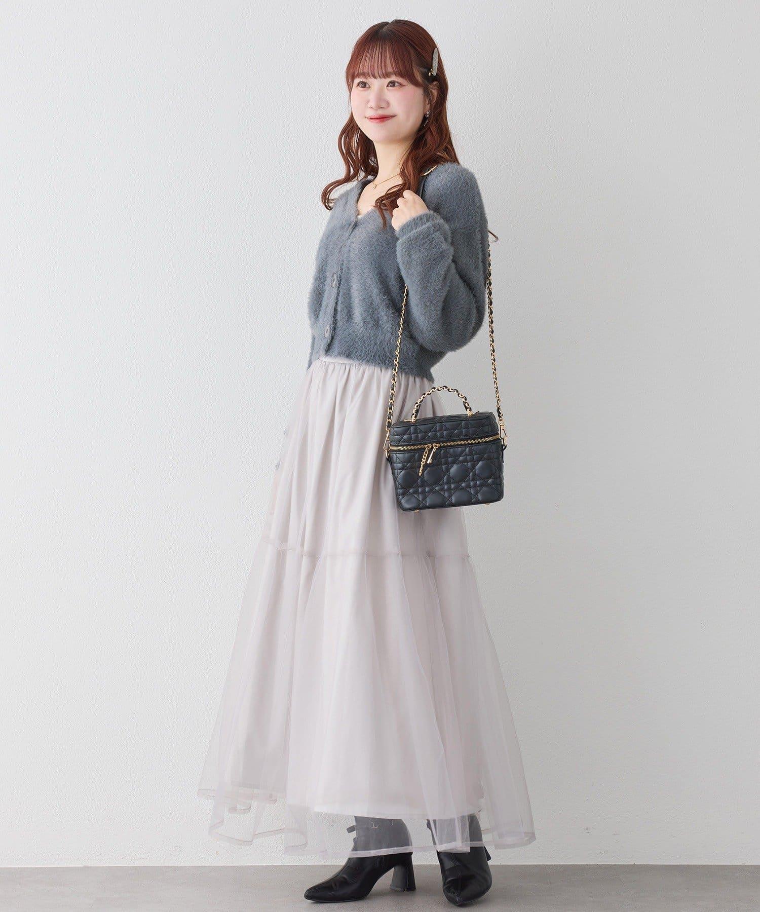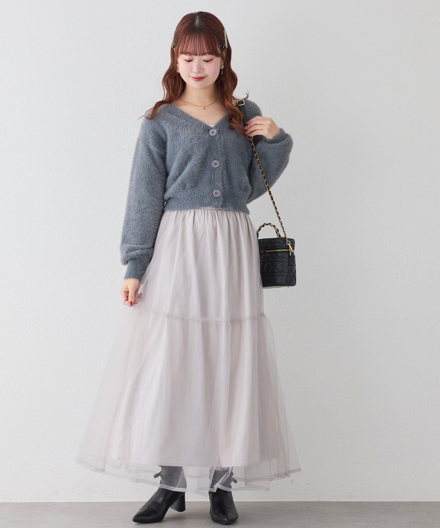 喇叭形長裙由柔軟輕盈的薄紗製成。