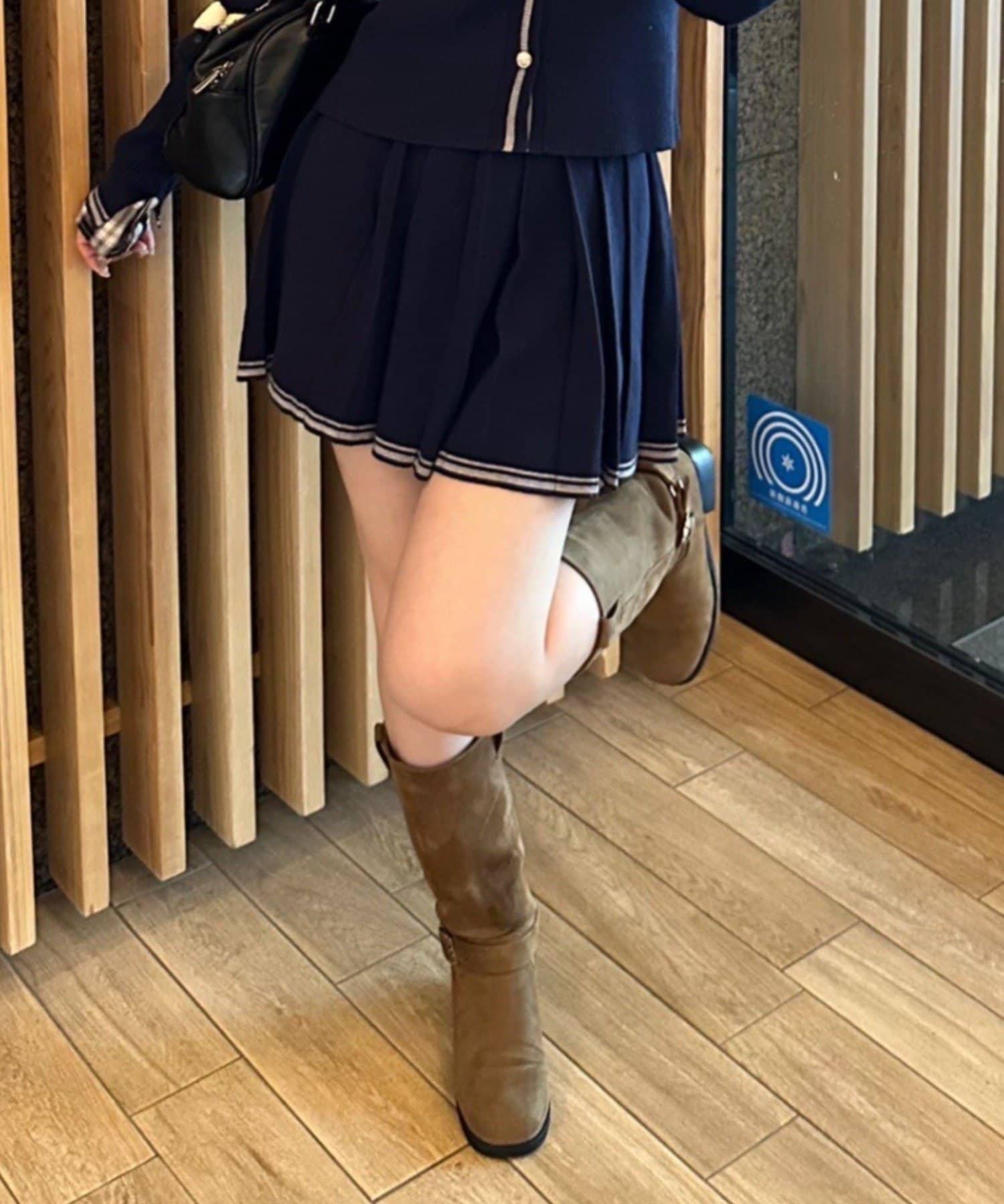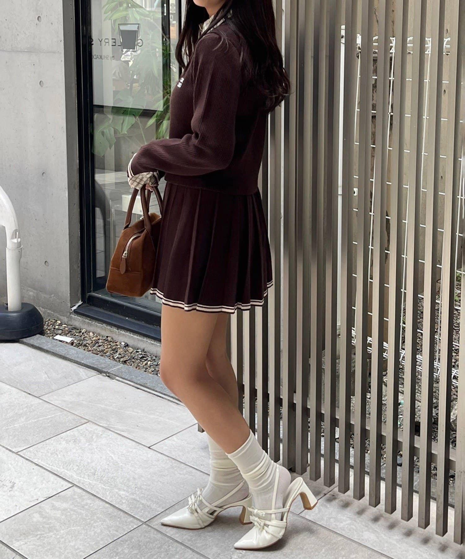 這款單品非常適合搭配套裝上衣,給你一種校園風的感覺。