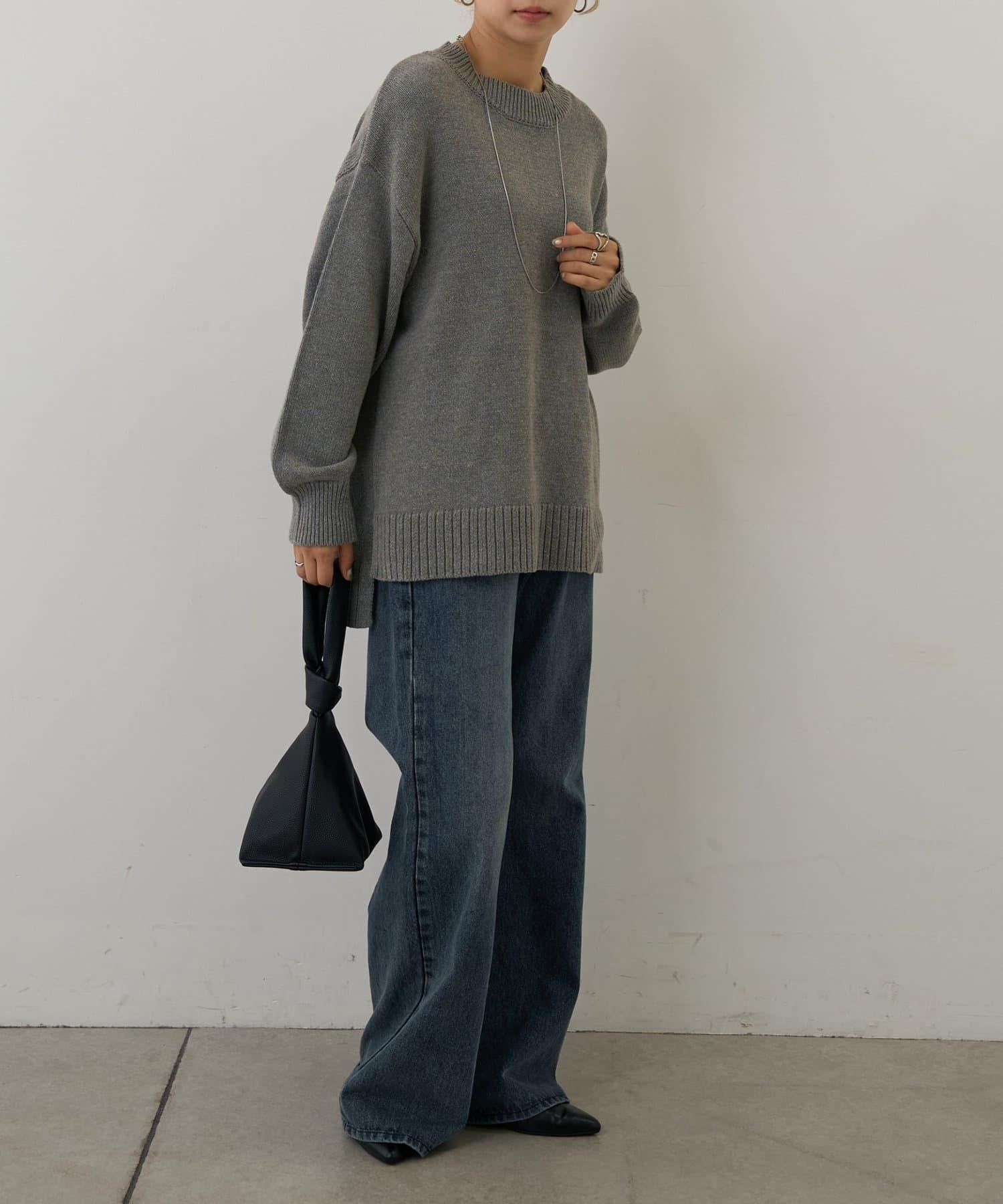 寬鬆針織套頭衫,手感柔軟,面料富有彈性,穿著毫無壓力。