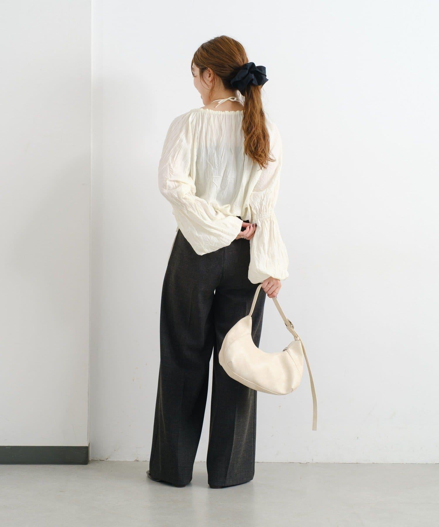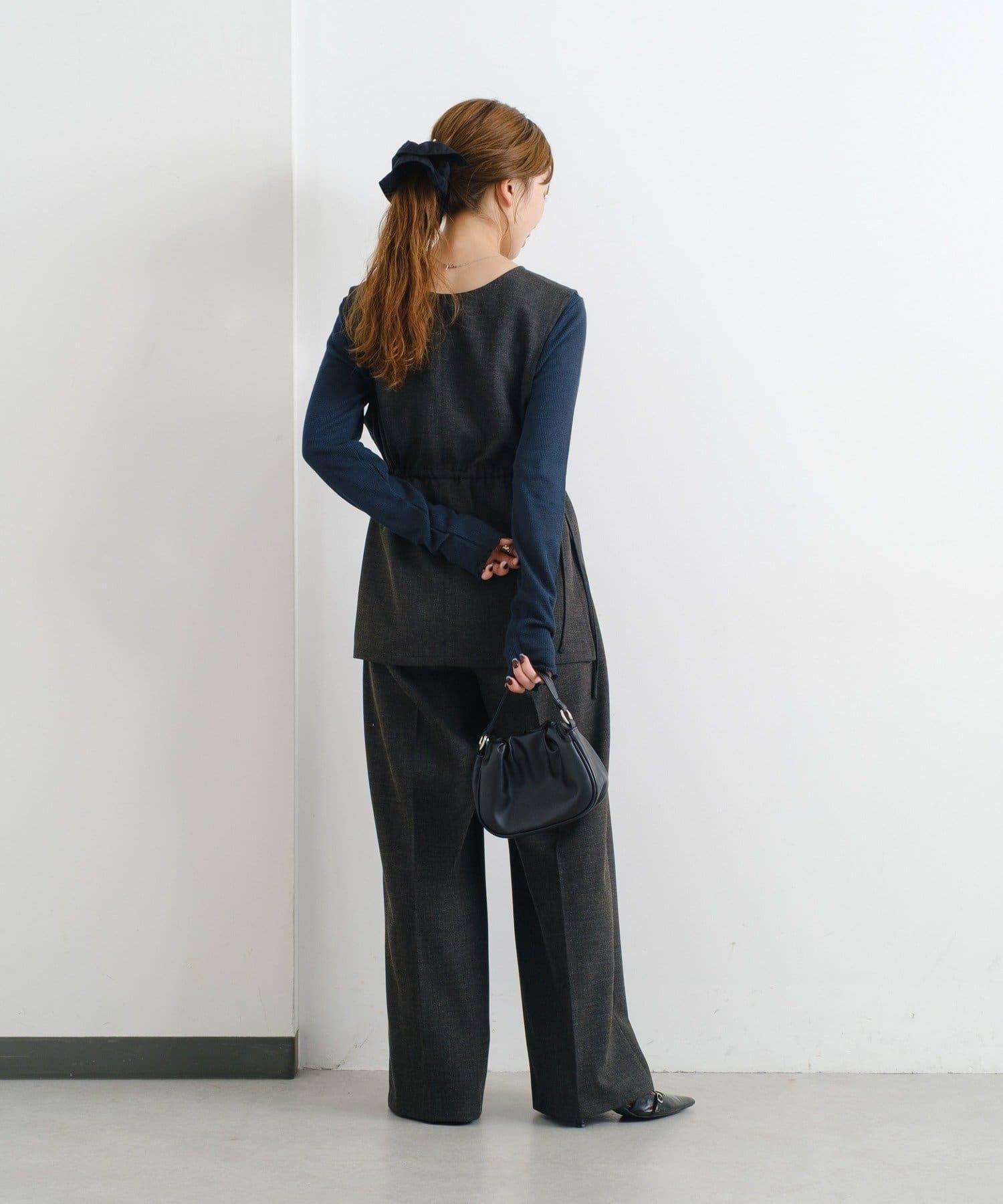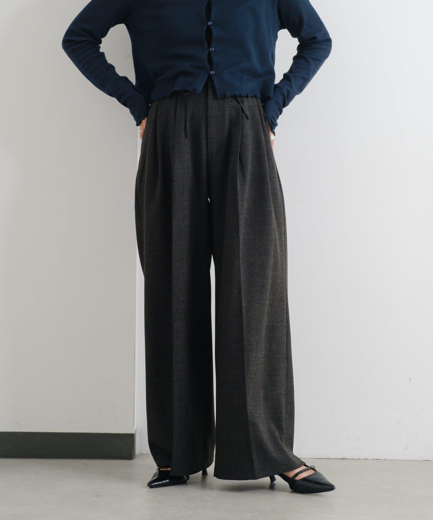 輕鬆休閒褲,腰部緞帶寬鬆整齊。