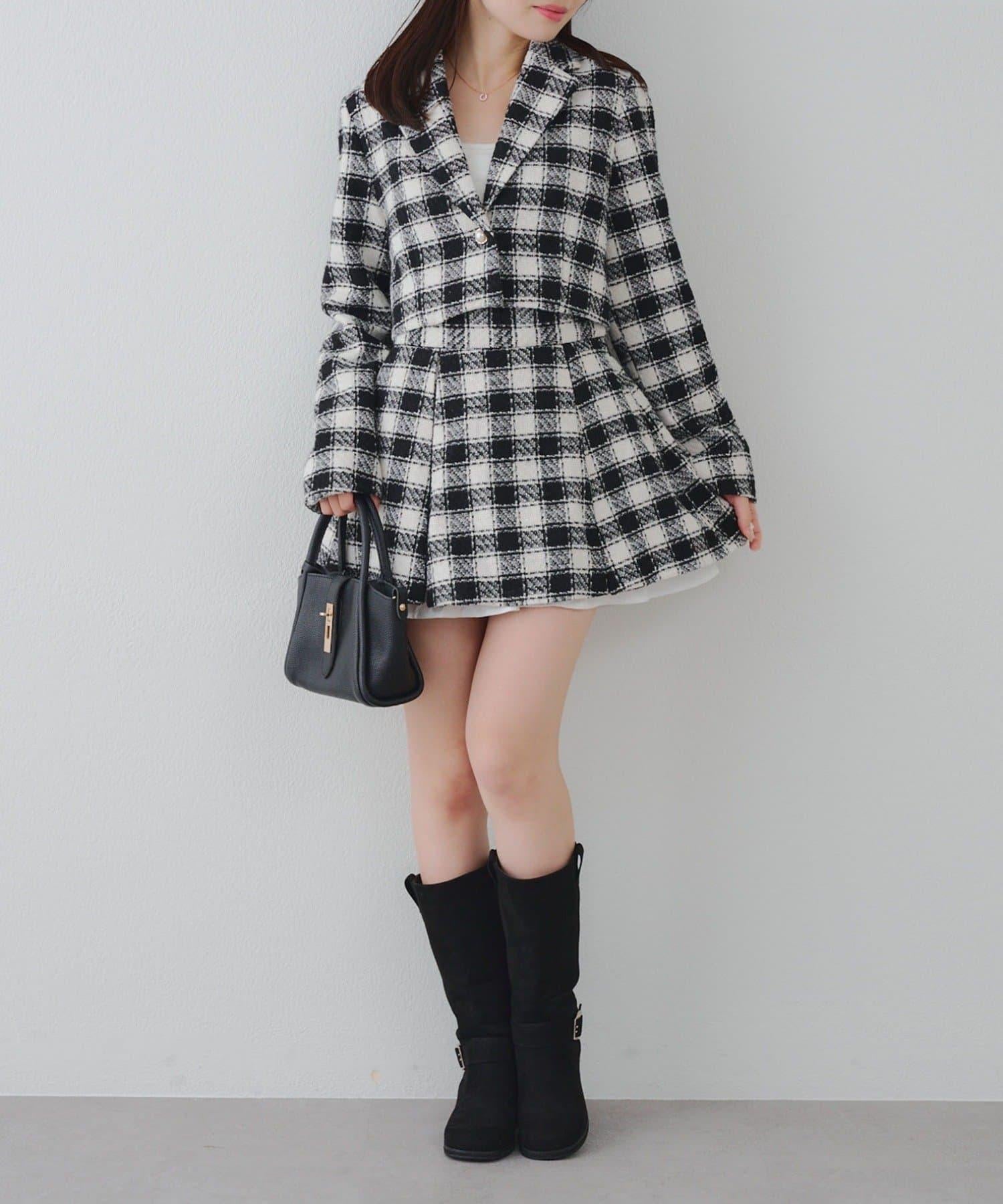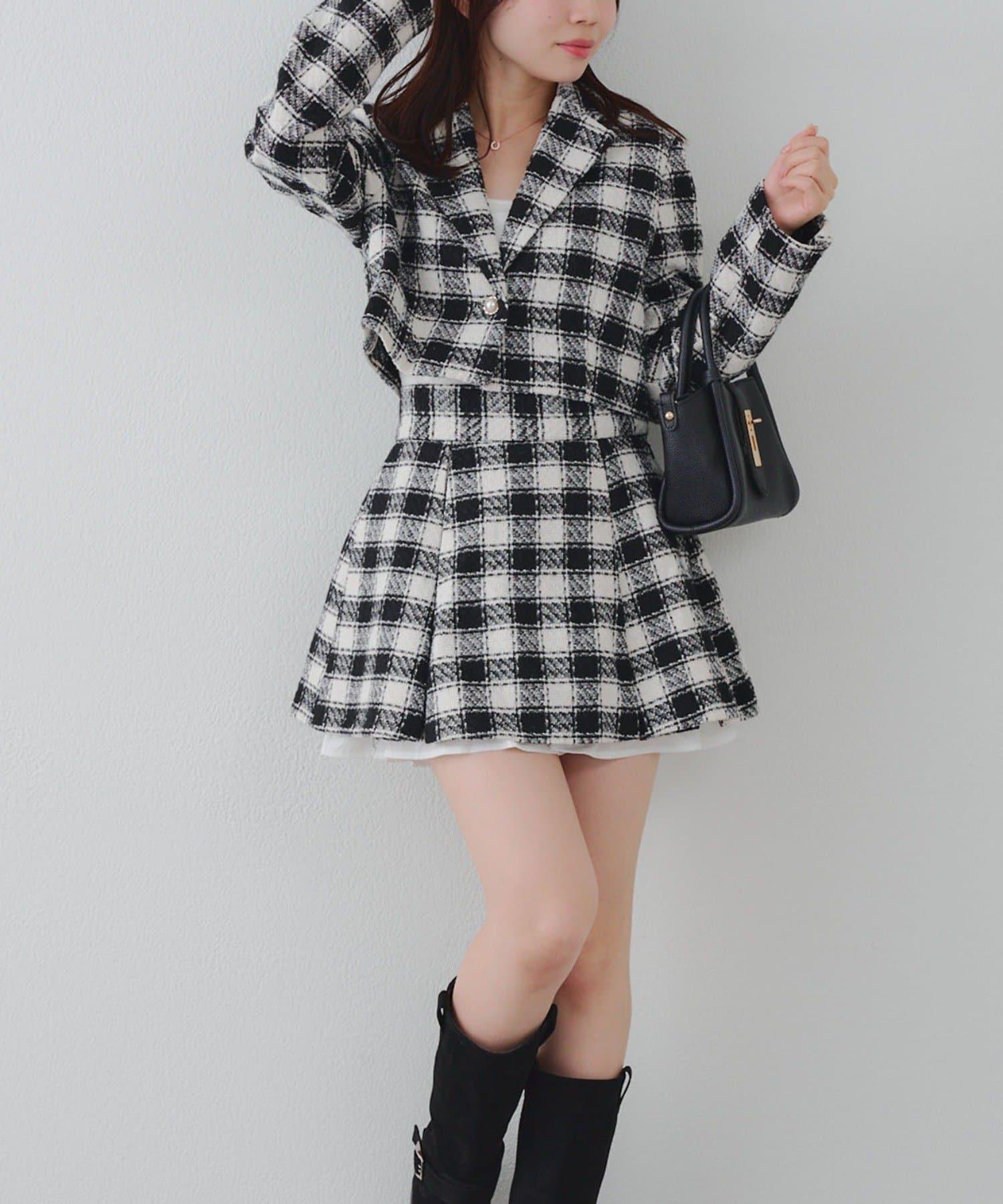 【套裝可搭配】粗花呢下襬微露迷你裙