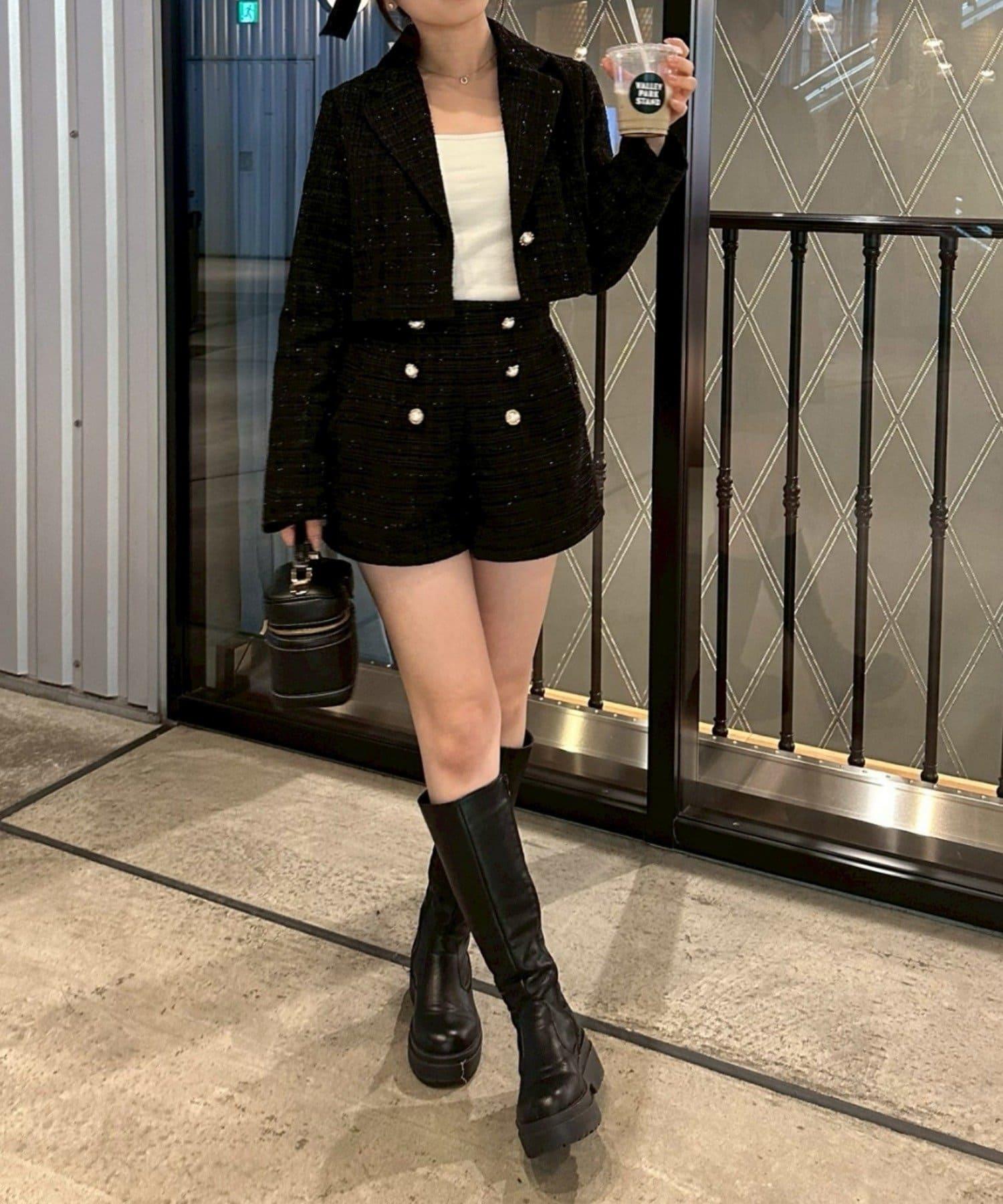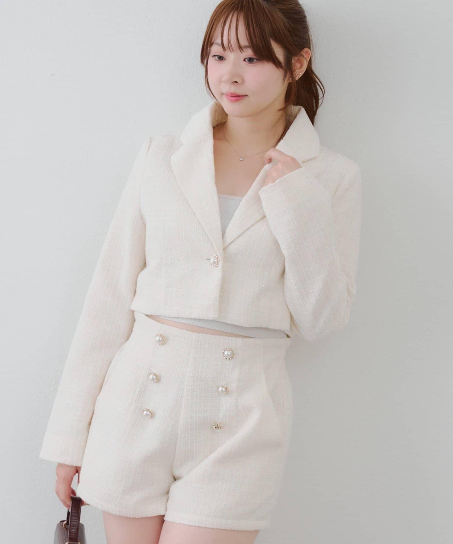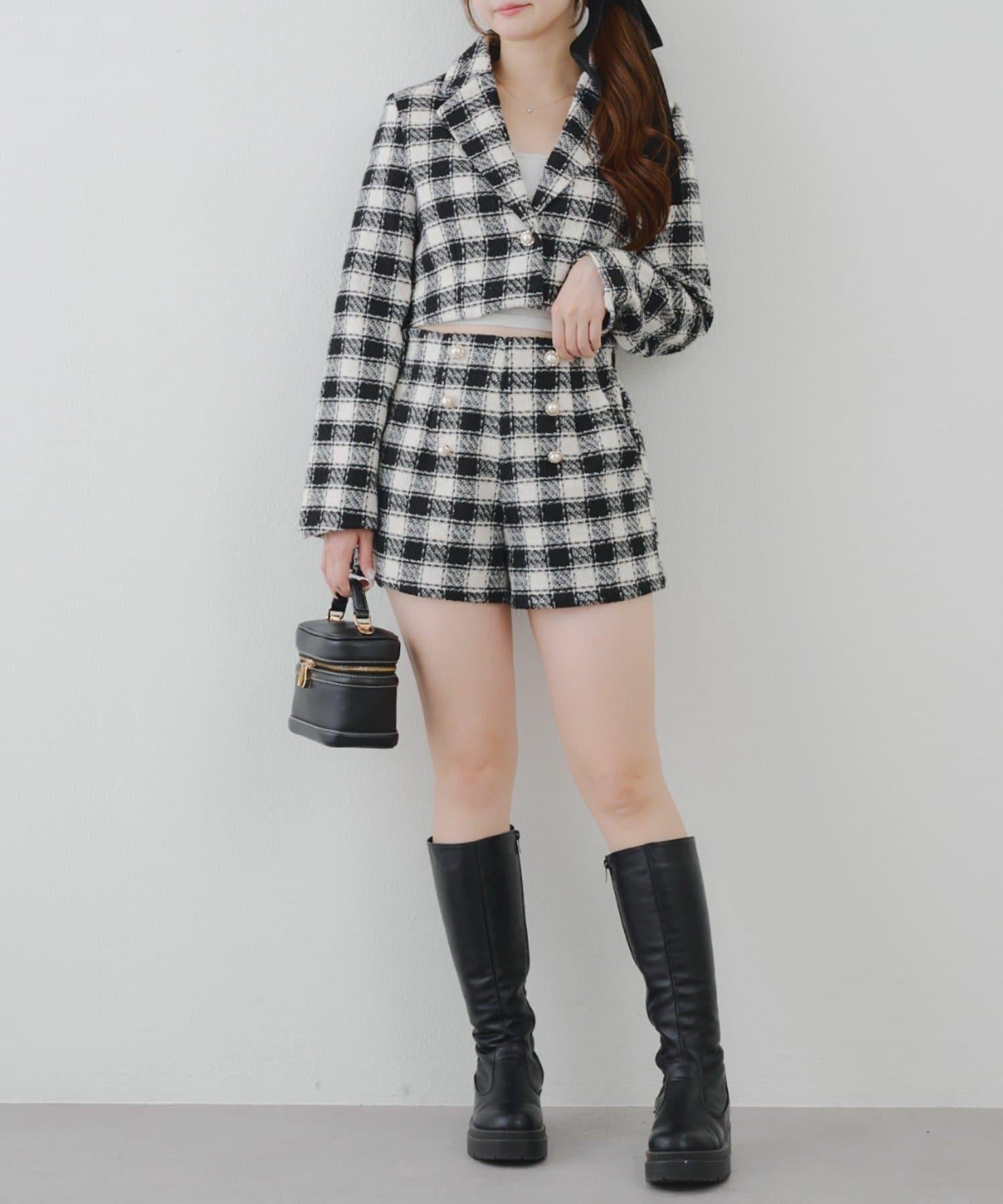 金色紐扣斜紋軟呢短褲 編號:0852020330