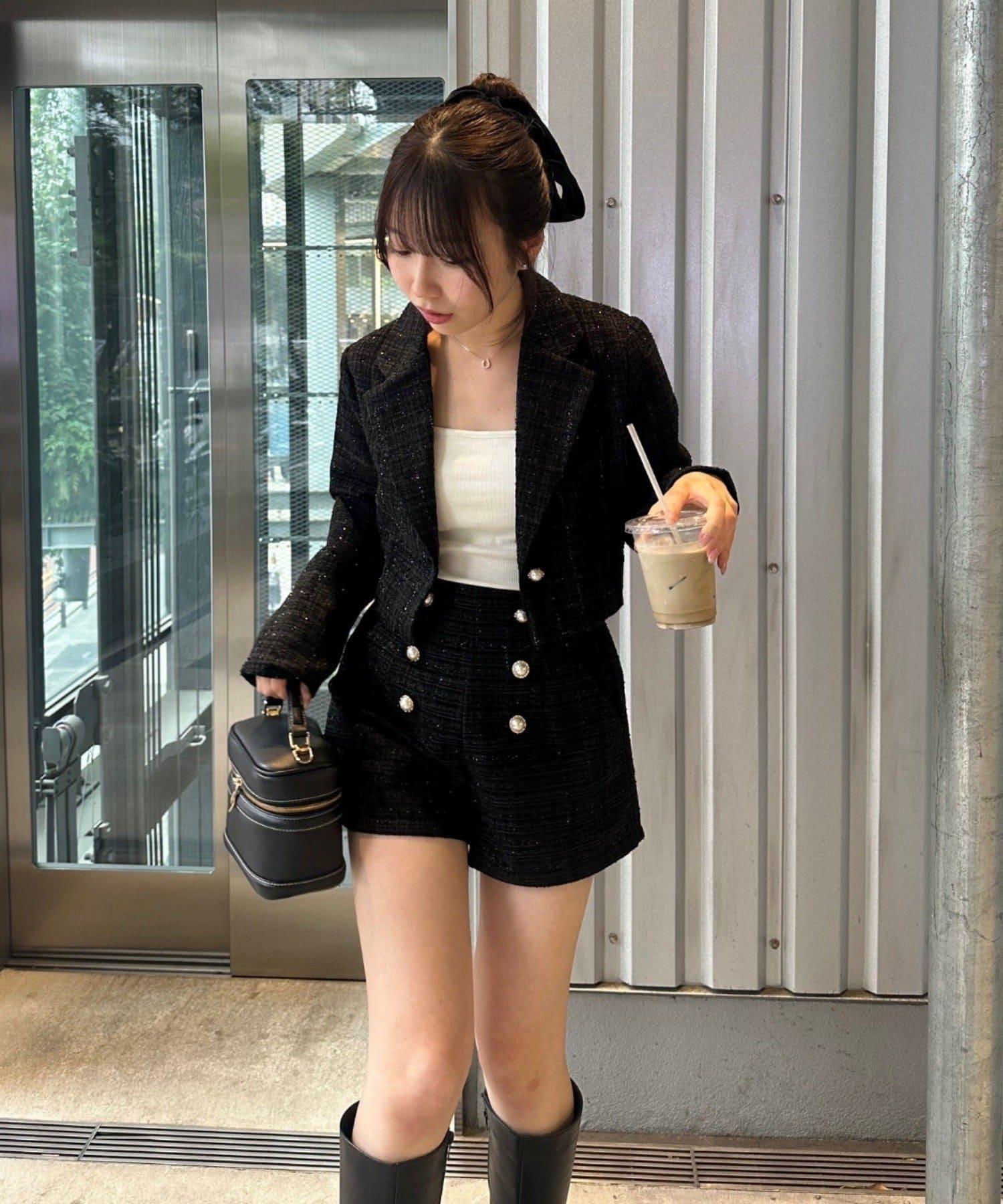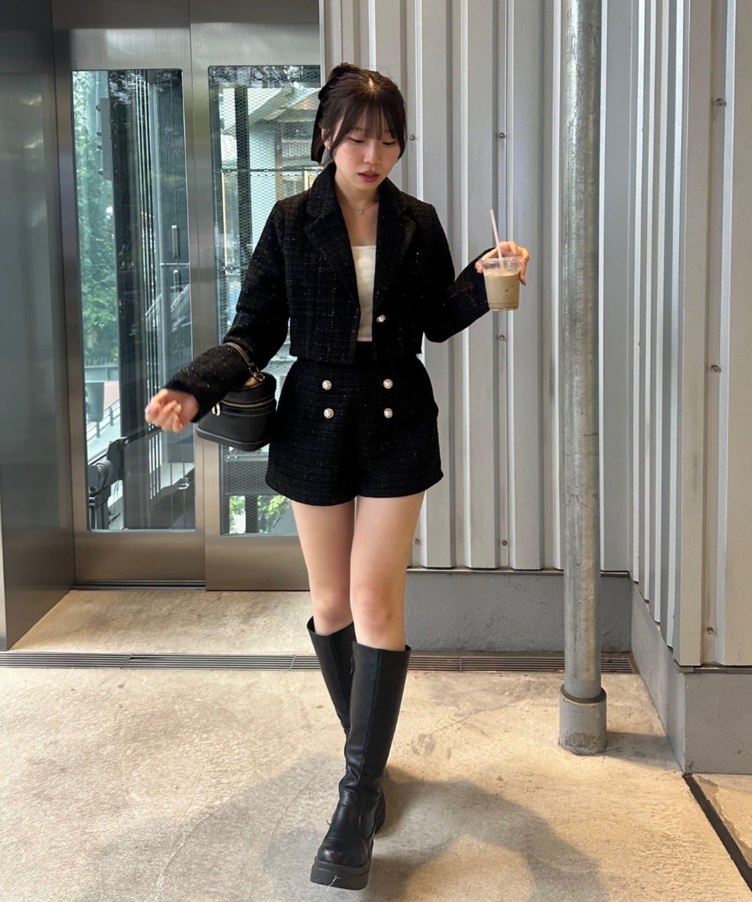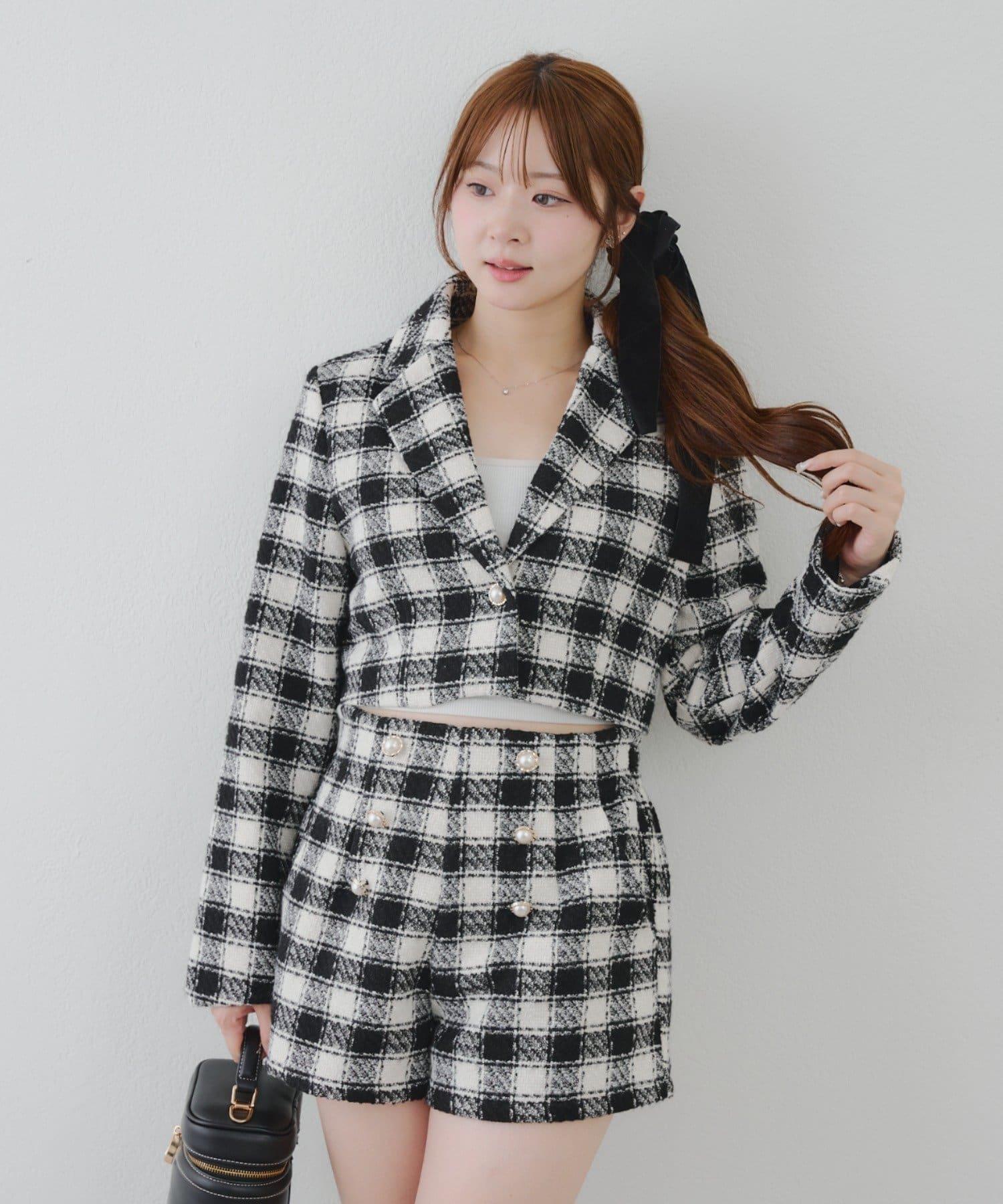 金色紐扣斜紋軟呢短褲 編號:0852020330