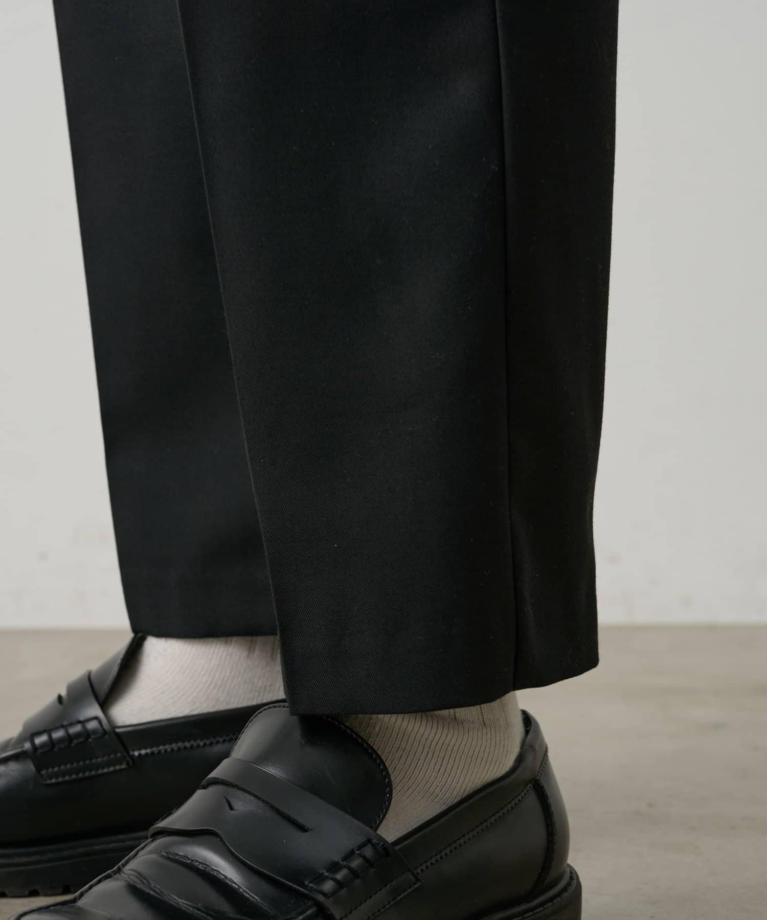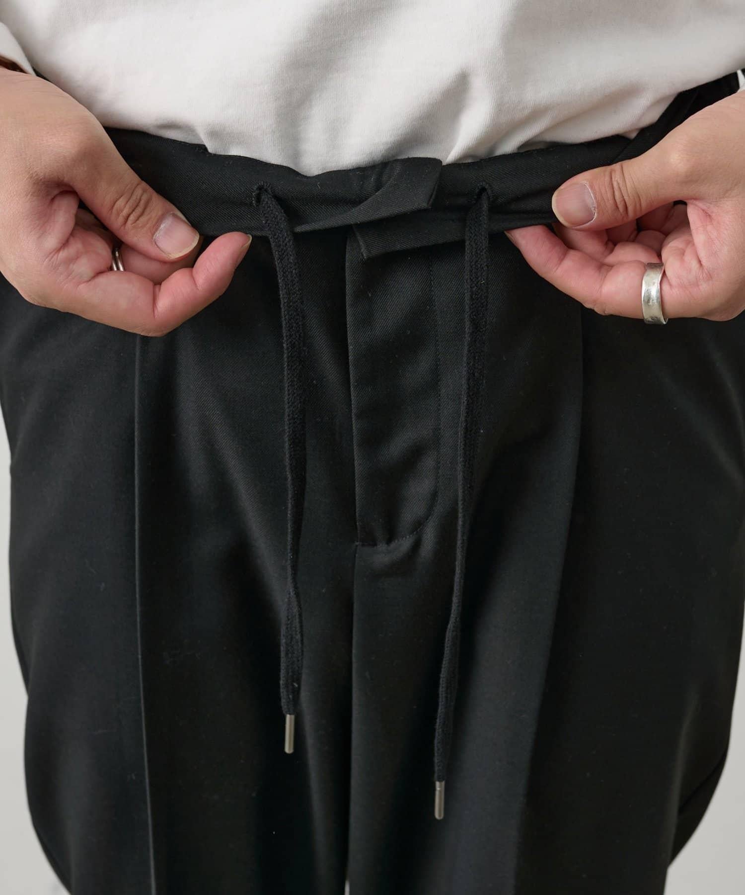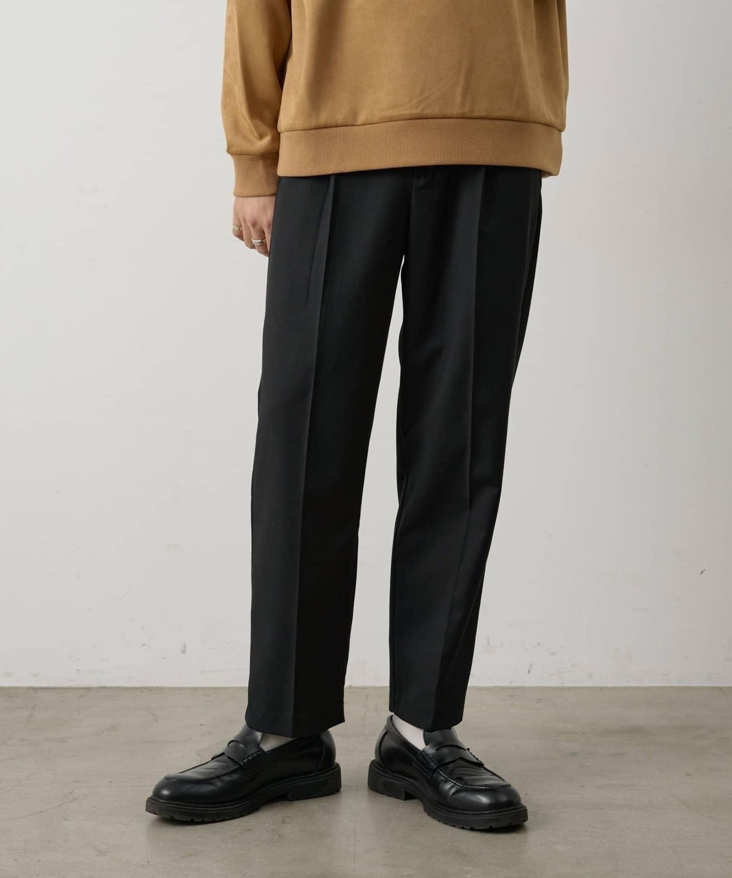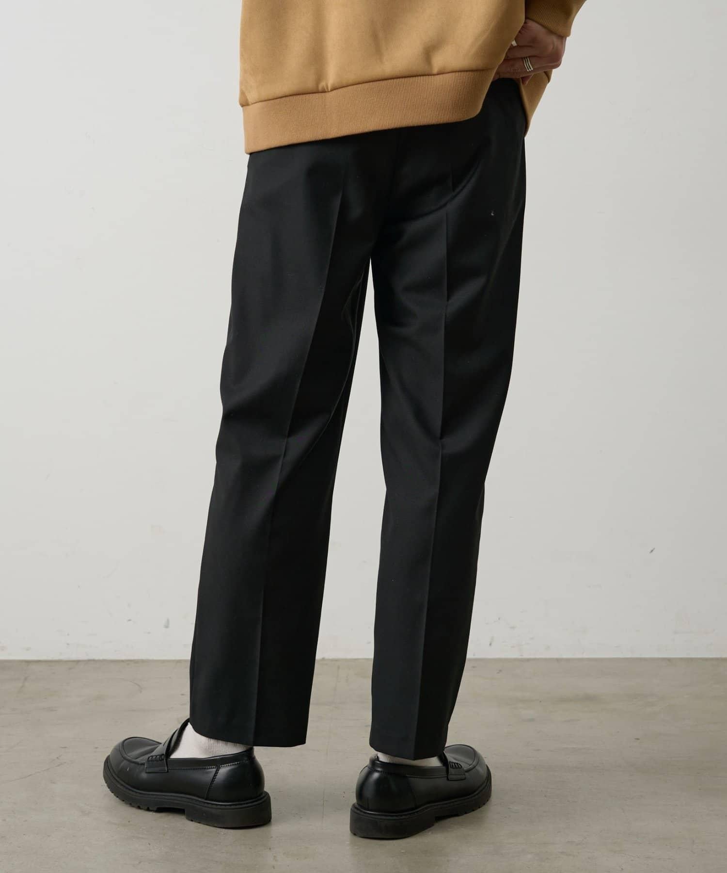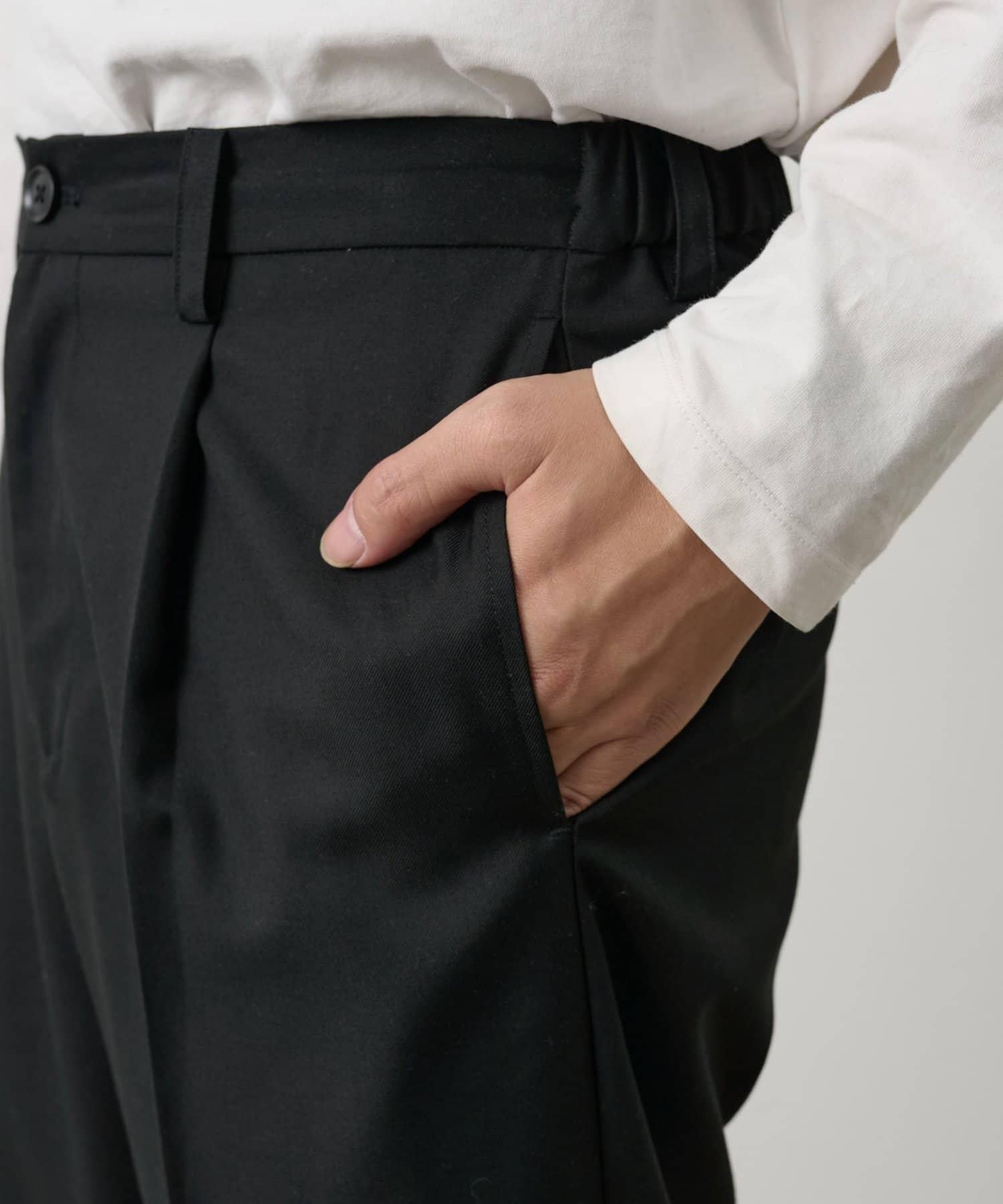 褲型向下擺整齊收攏,同時提供寬敞的腰部空間,使腿部線條簡潔,同時帶來輕鬆舒適的感覺。