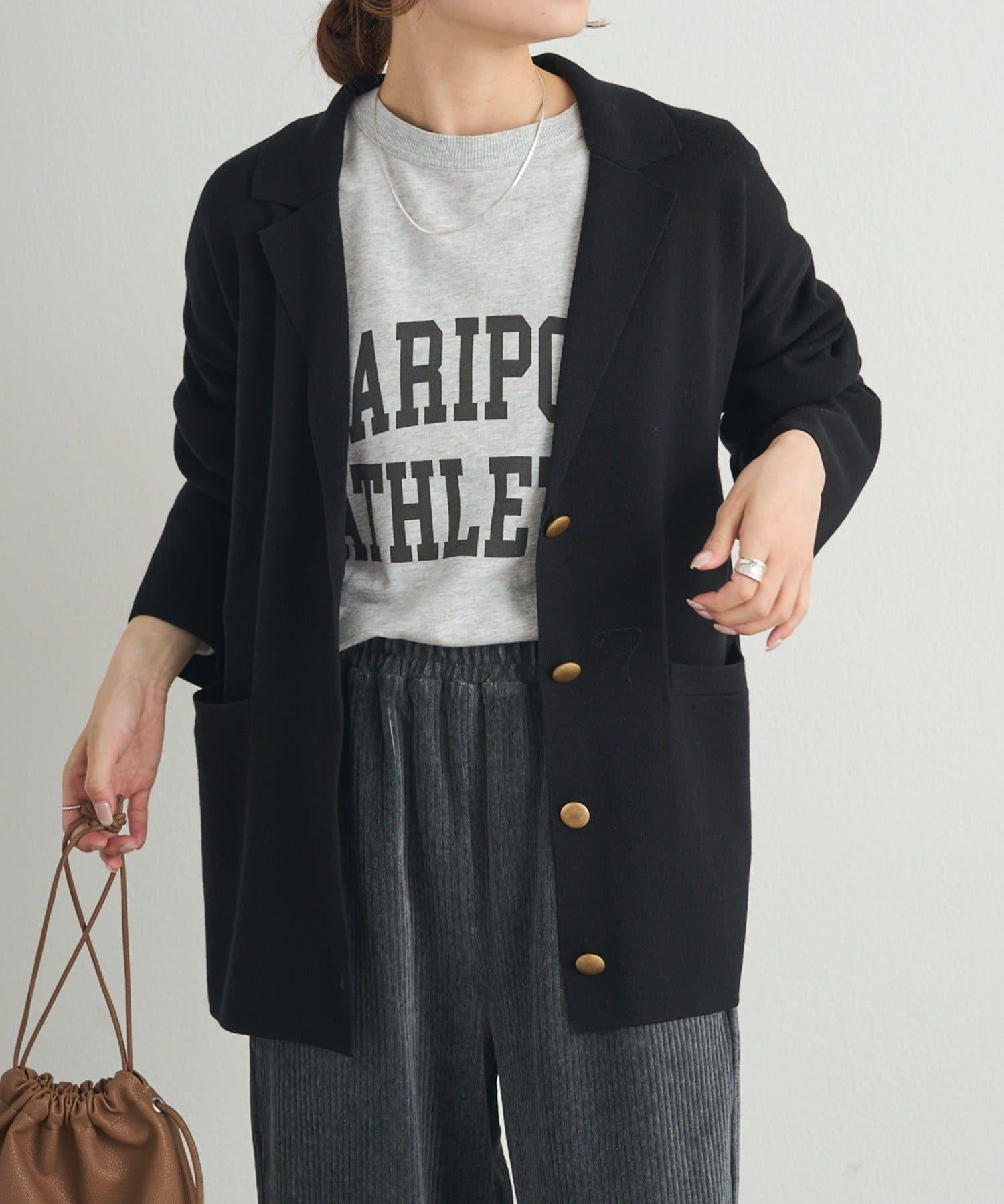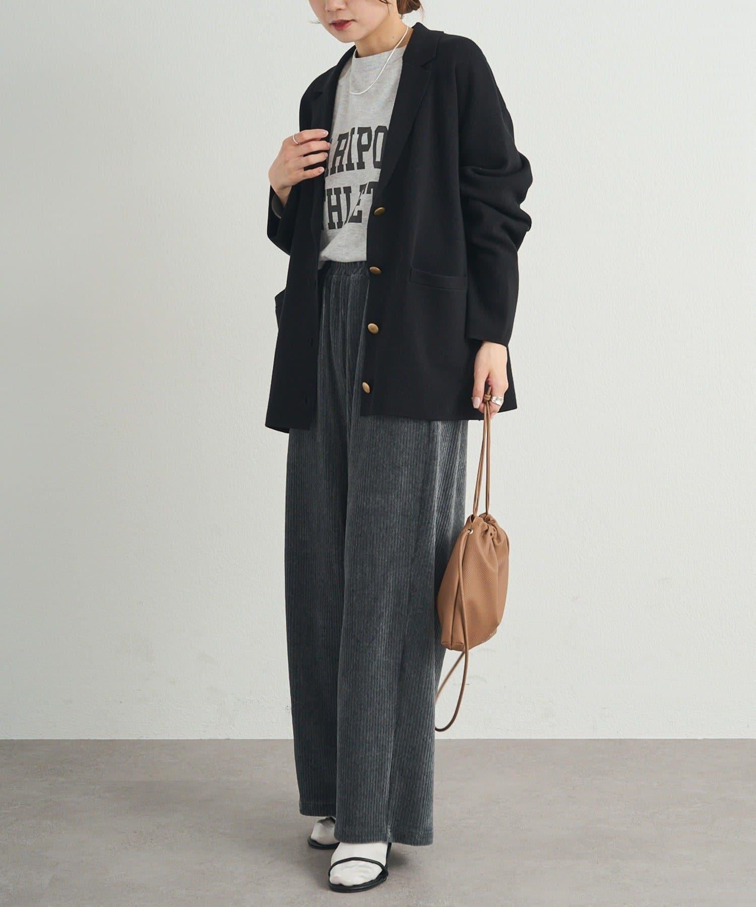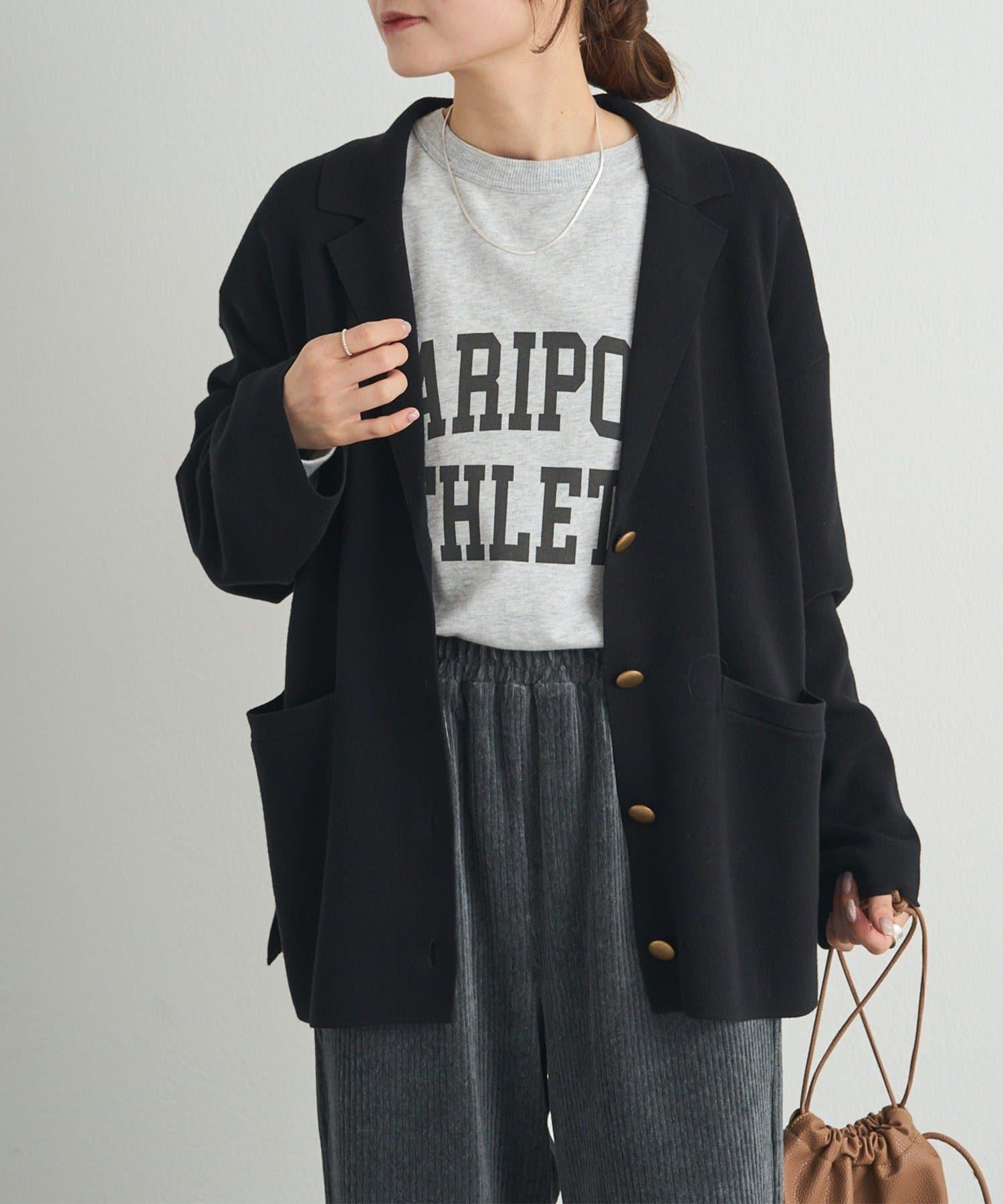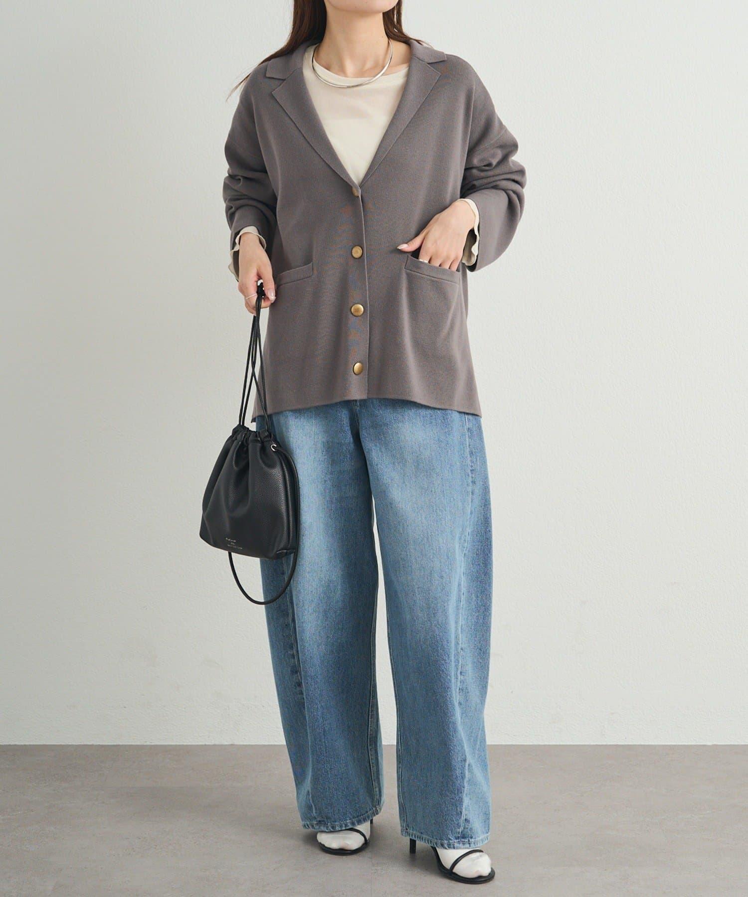 肩部的體積和身體的寬度得到了抑制,針織衫特有的柔和廓形也不會顯得過於正式、