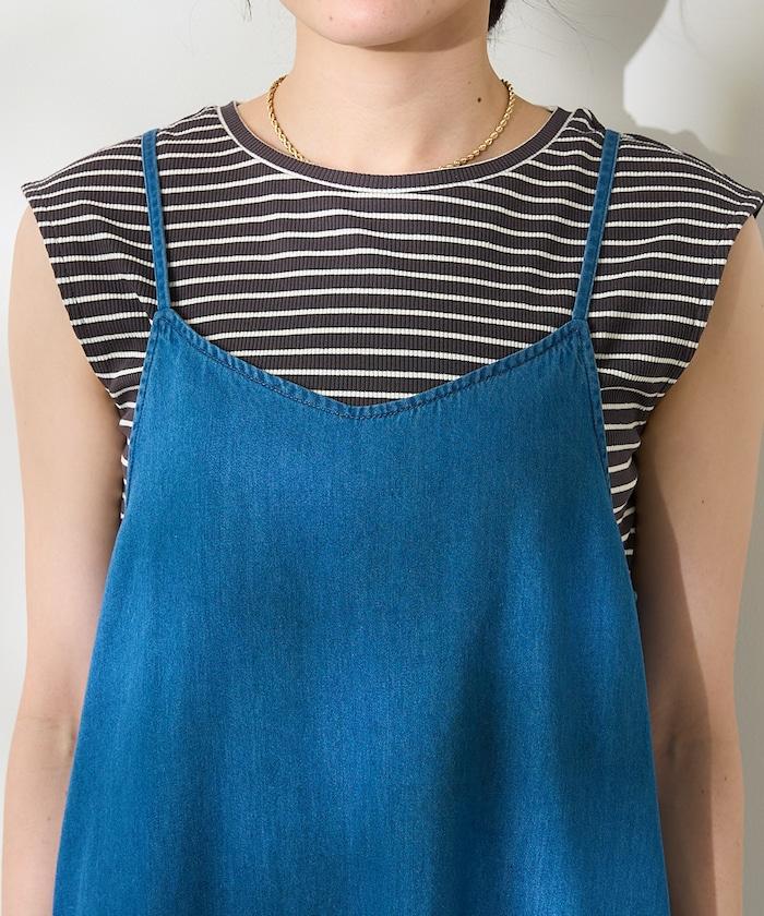 【套裝商品】亞麻粘膠 女士吊帶連衣裙 內搭套裝