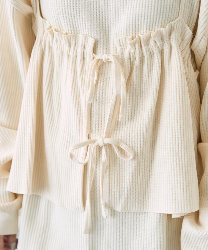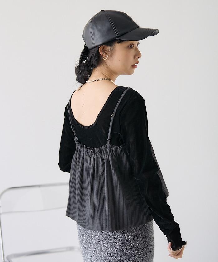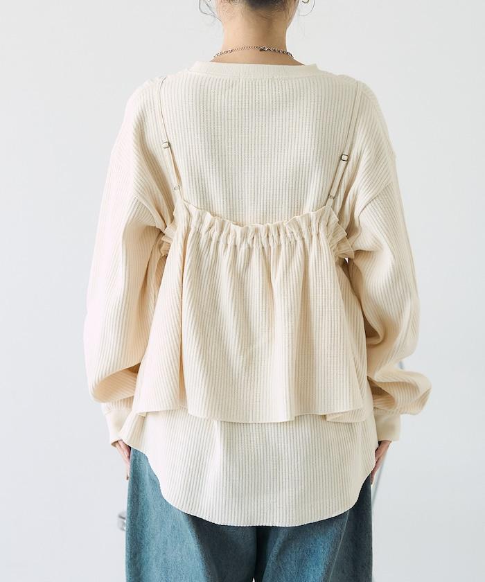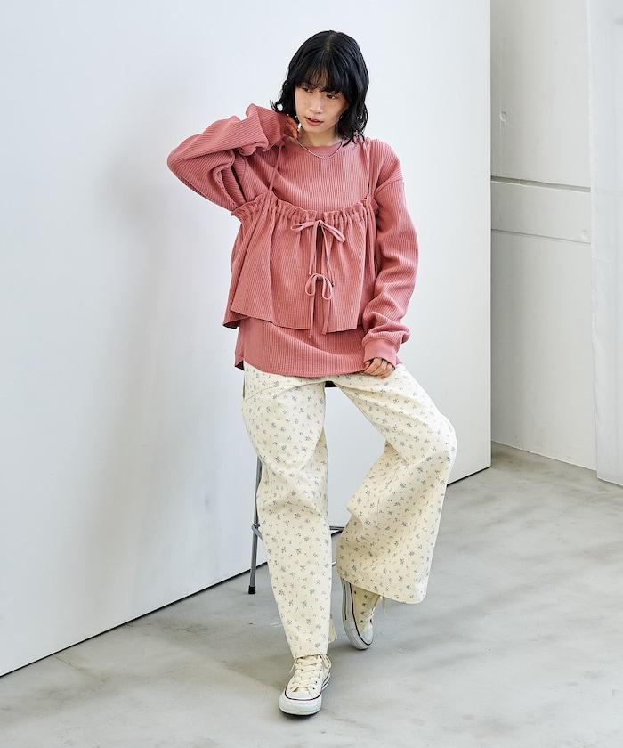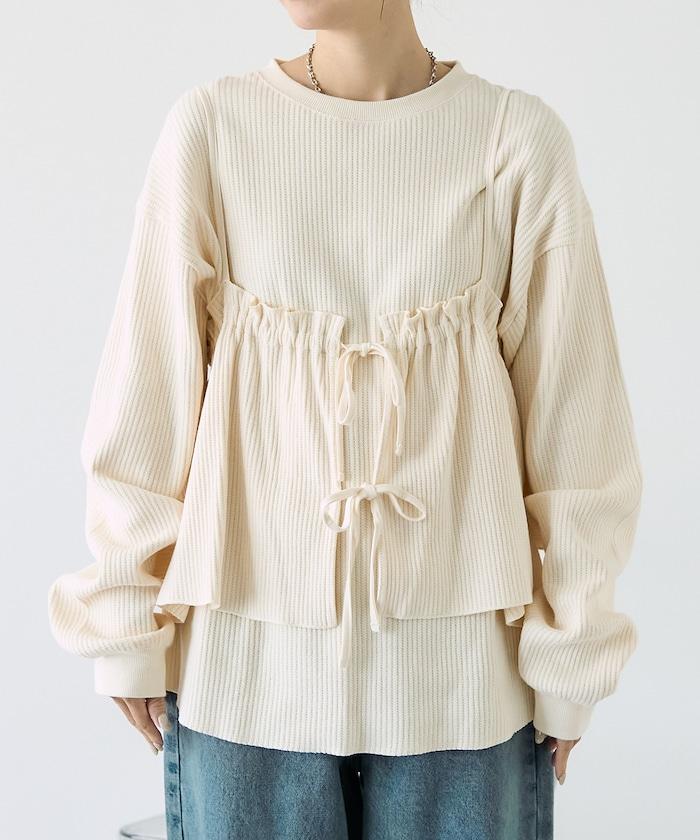 【套裝商品】華夫格長袖T恤與吊帶背心套裝