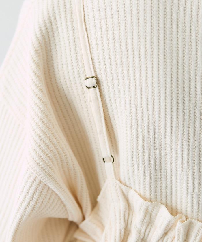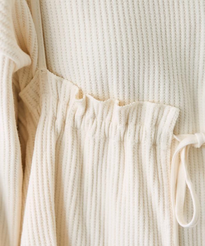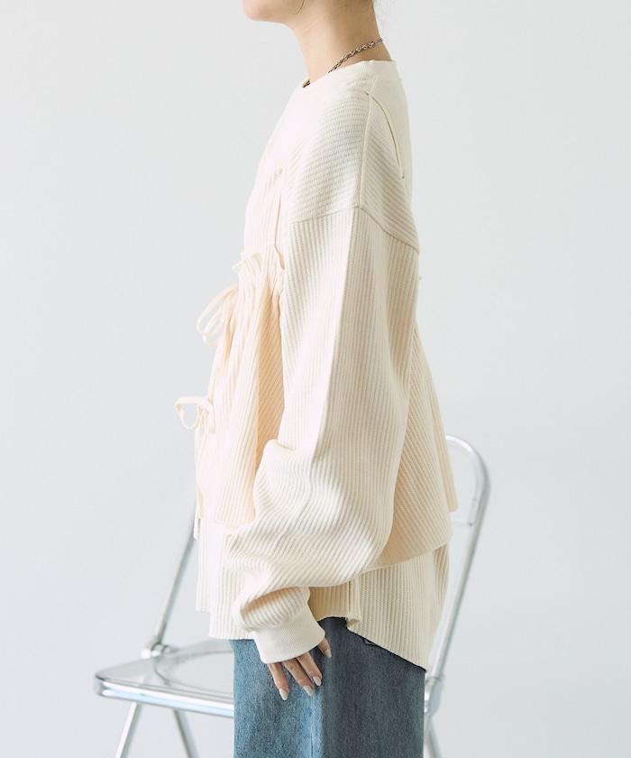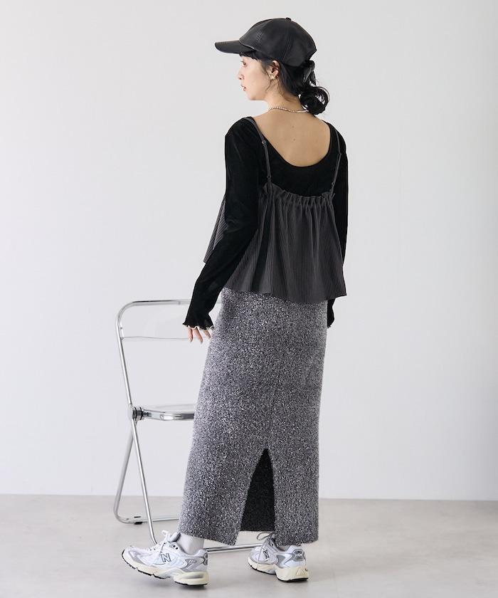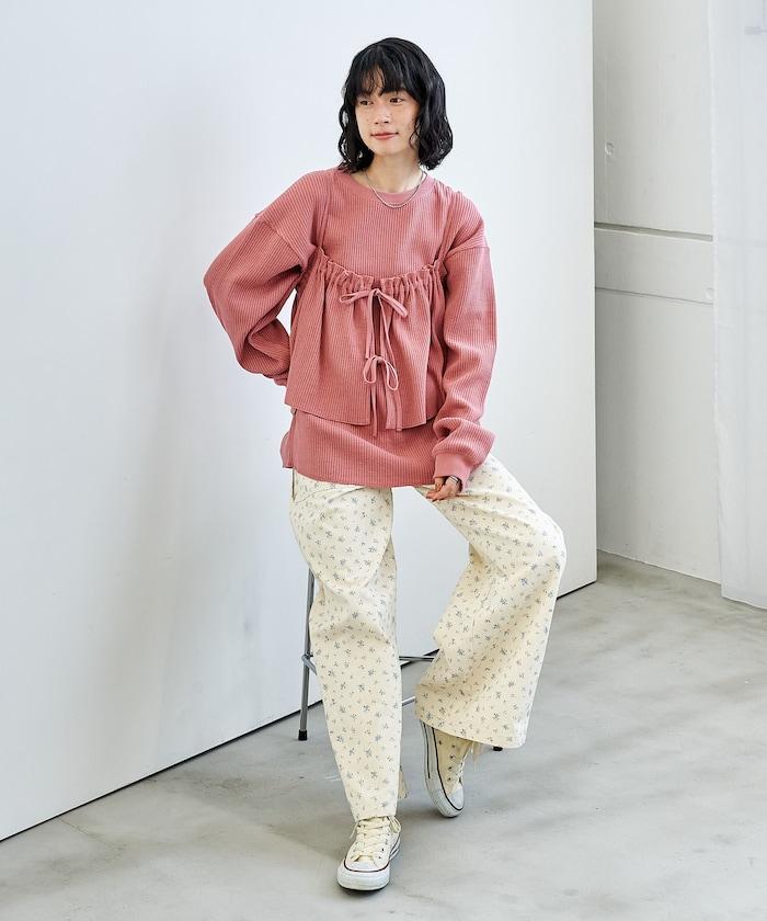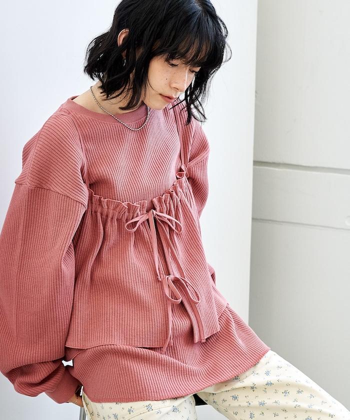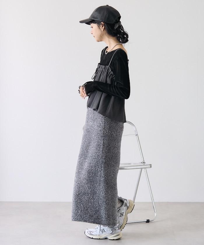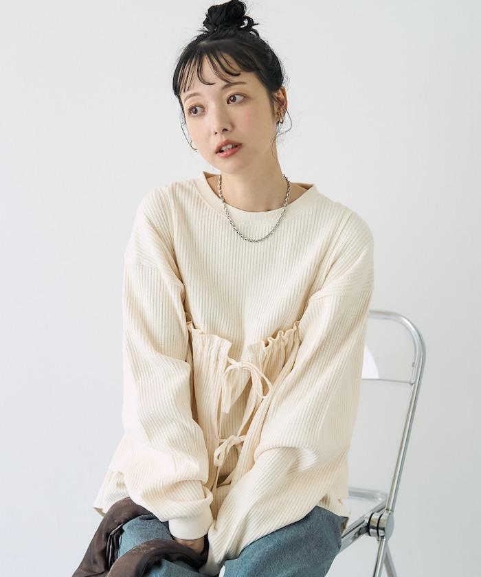 帶有絲帶裝飾的半身裙給人一種可愛的感覺,而面料則很休閒。