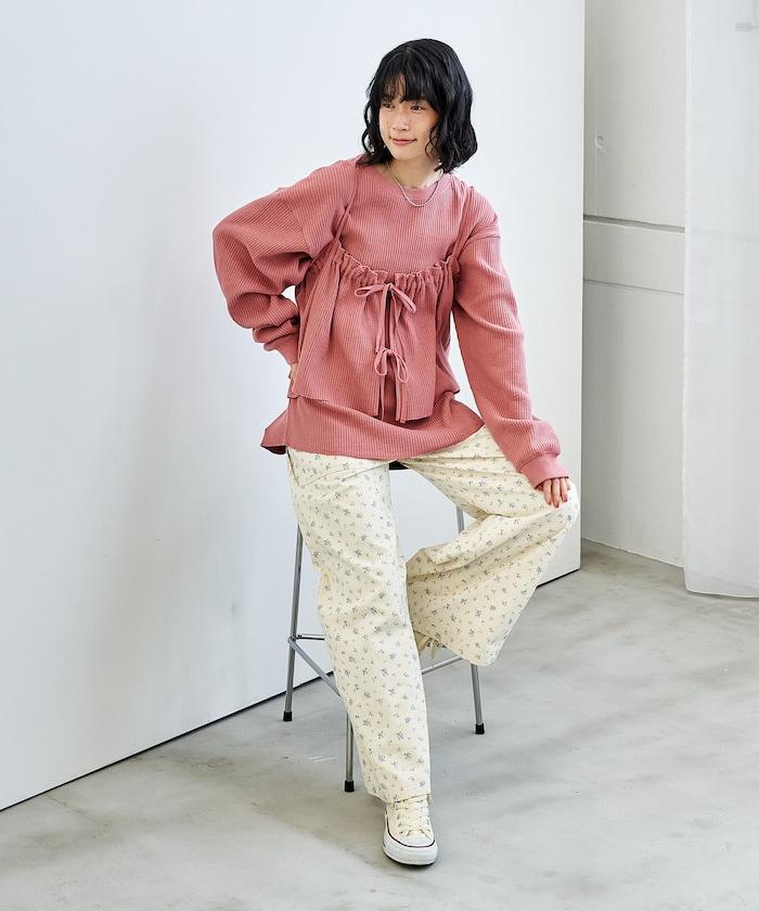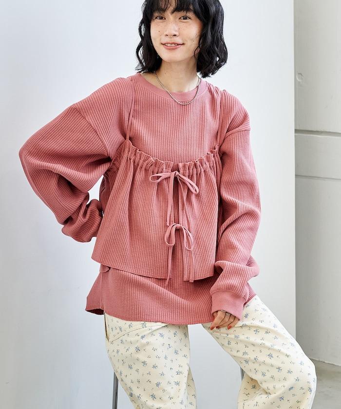 華夫格上衣套裝兼具休閒與女性化的可愛風格,可以有多種穿法。