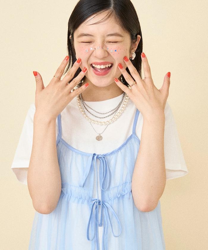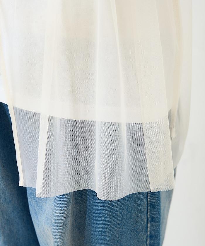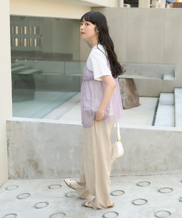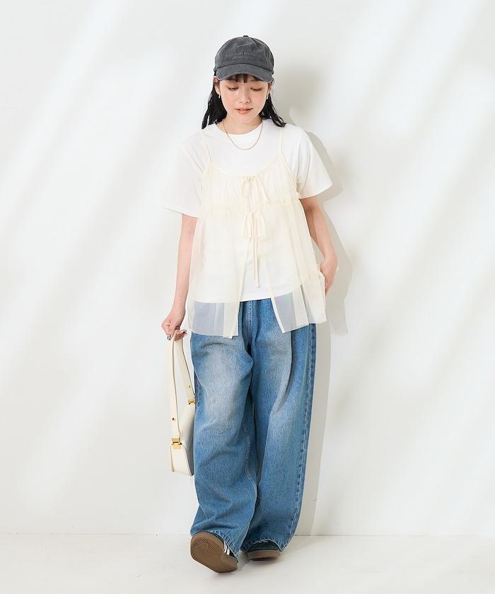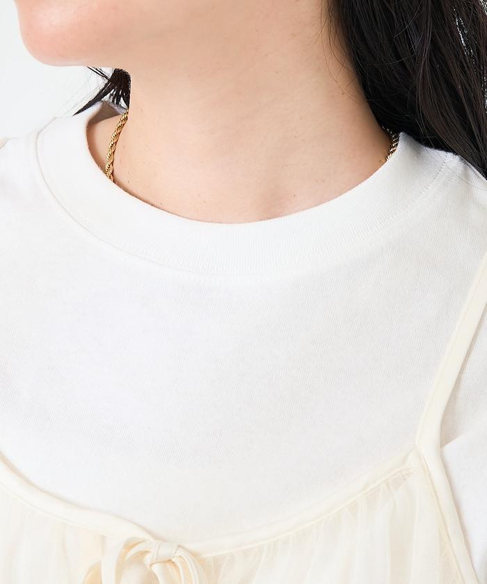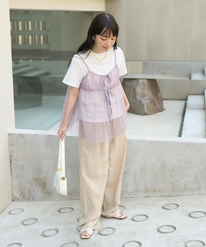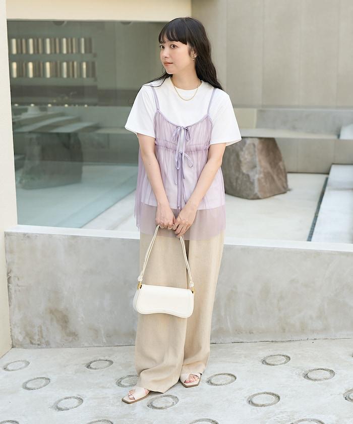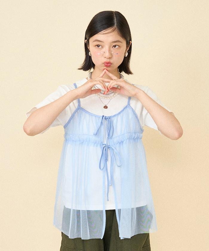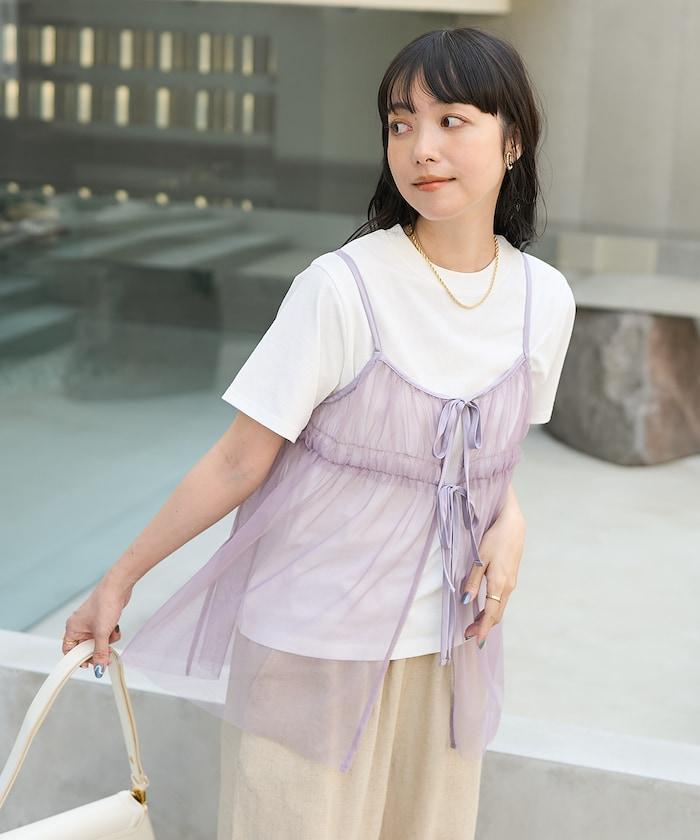 由透明薄紗吊帶衫和簡單素色 T 恤組成的套裝單品。