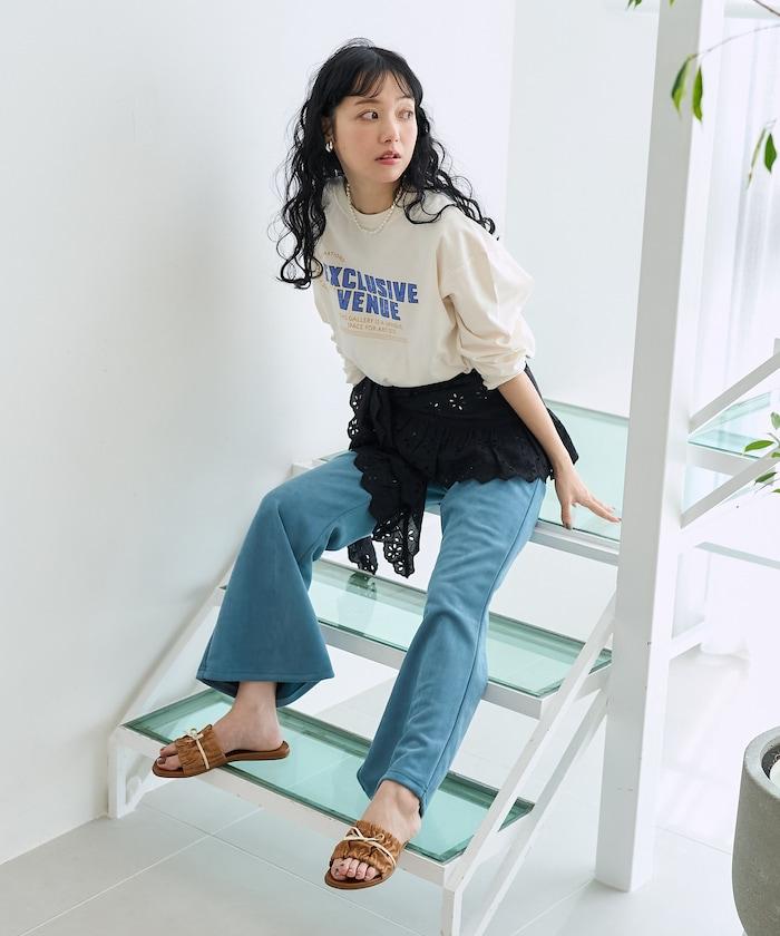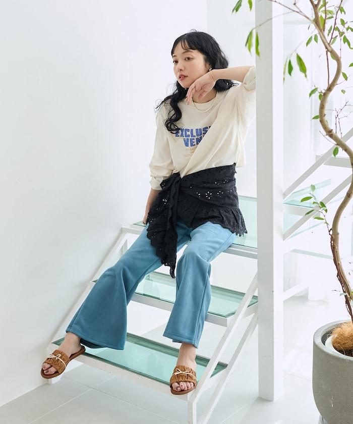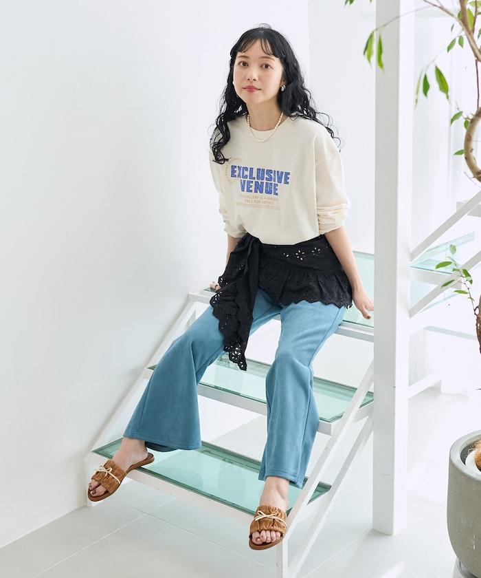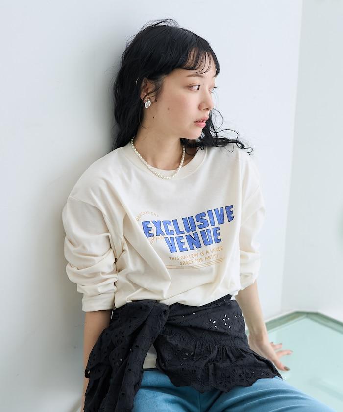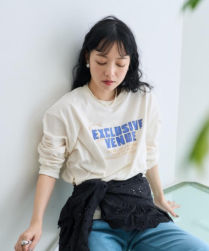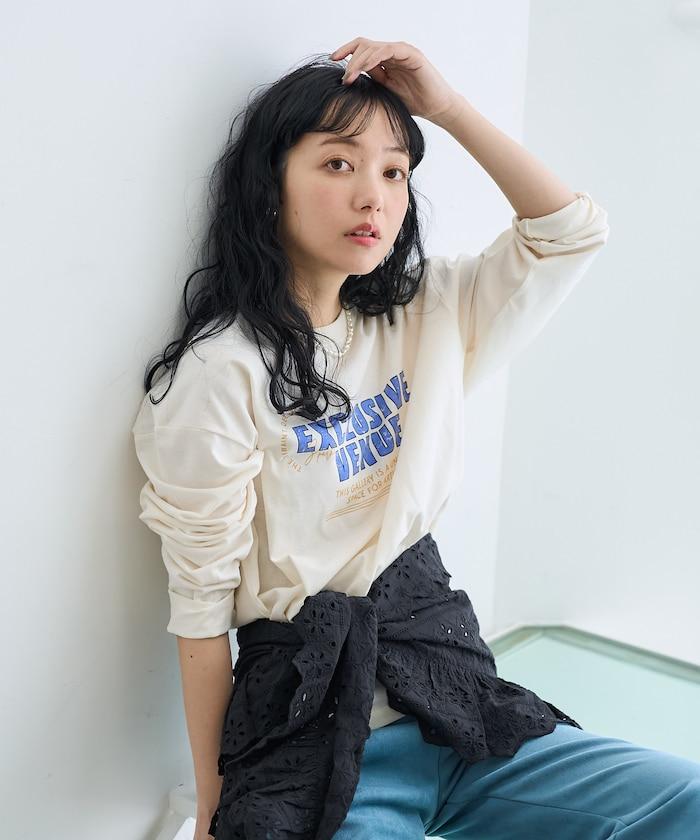 長 T 胸前有印花,即使單穿也很好看。