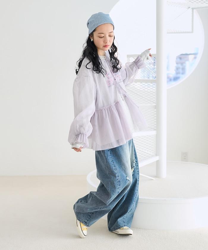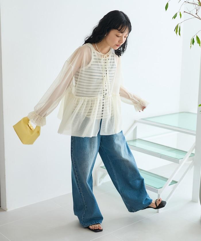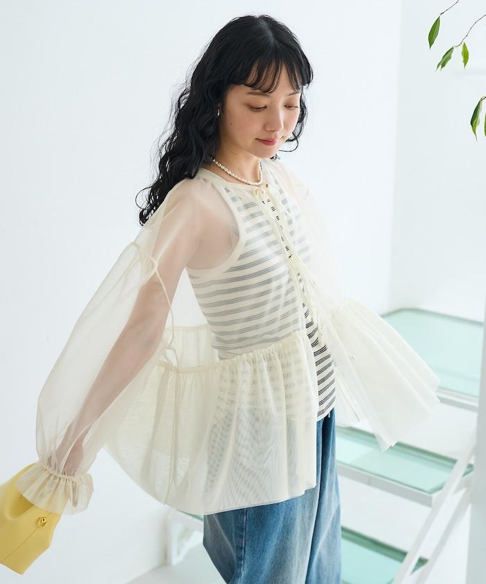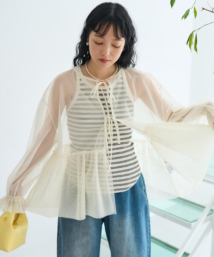 薄紗上衣採用蓬鬆設計,因此與緊身裙和緊身褲非常搭配。