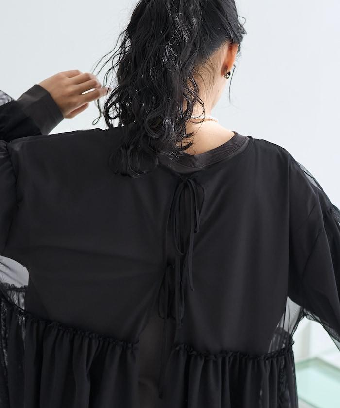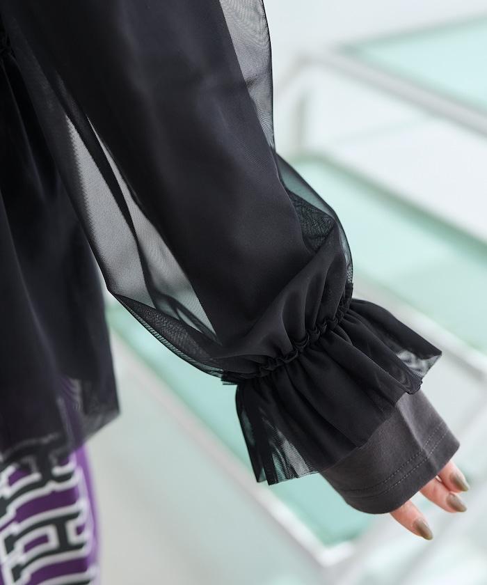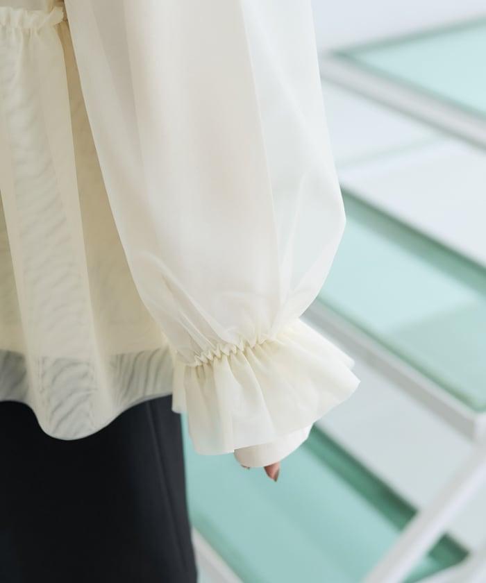 薄紗上衣的胸下和袖口處有大量褶皺,讓人眼前一亮。