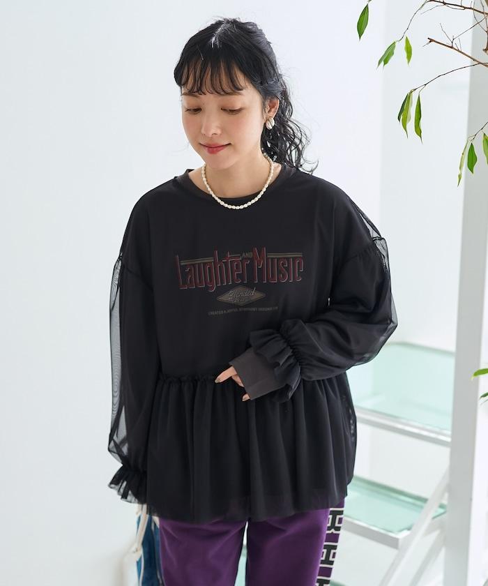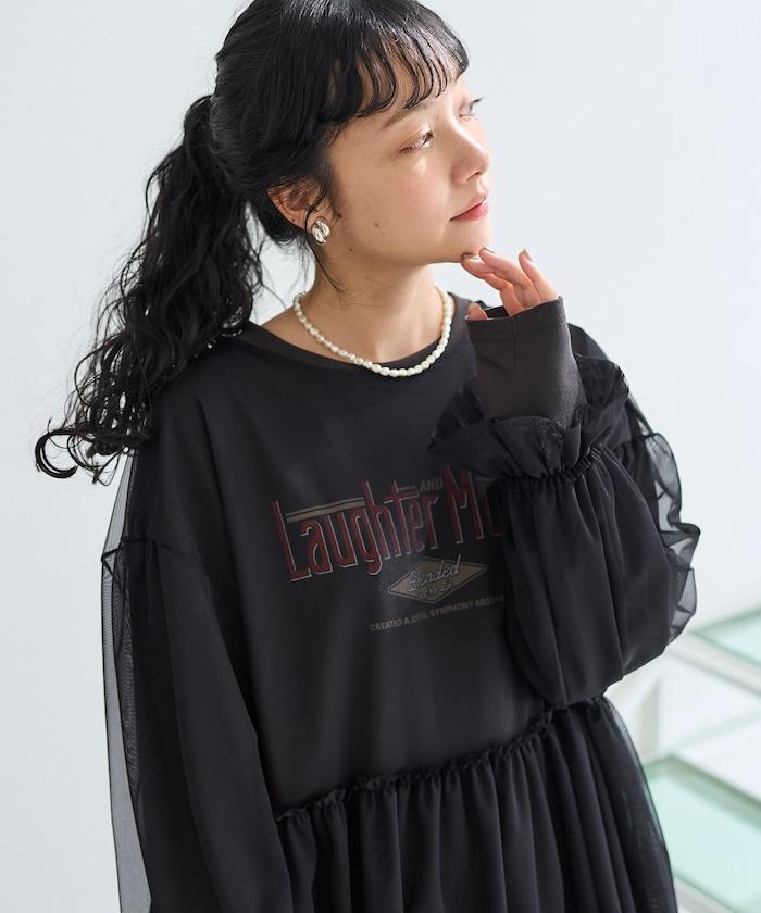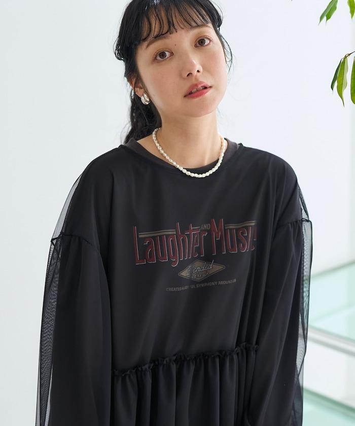 【套裝商品】蕾絲疊層 印花長袖T-shirt