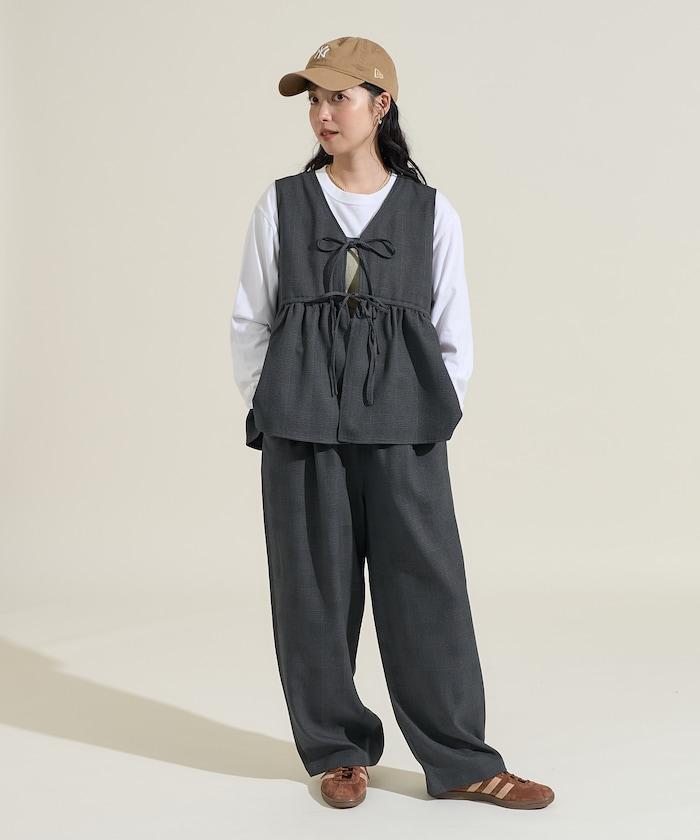 由於可以根據搭配的內搭調整季節感,因此是一款可以長期穿著的套裝。