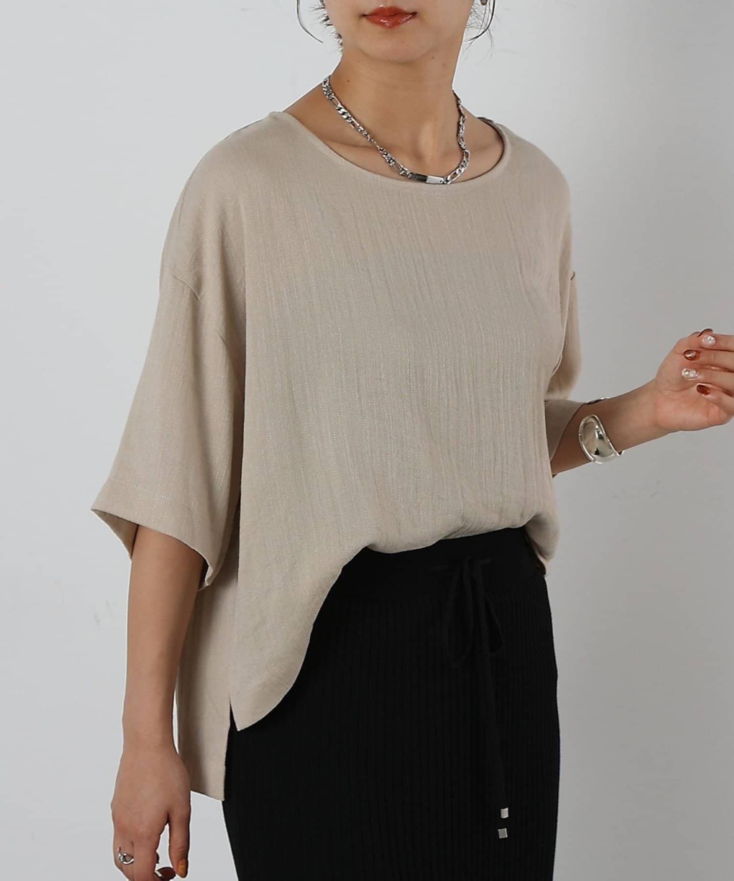 [精緻而寬鬆。仿亞麻套頭衫,四季皆宜]。