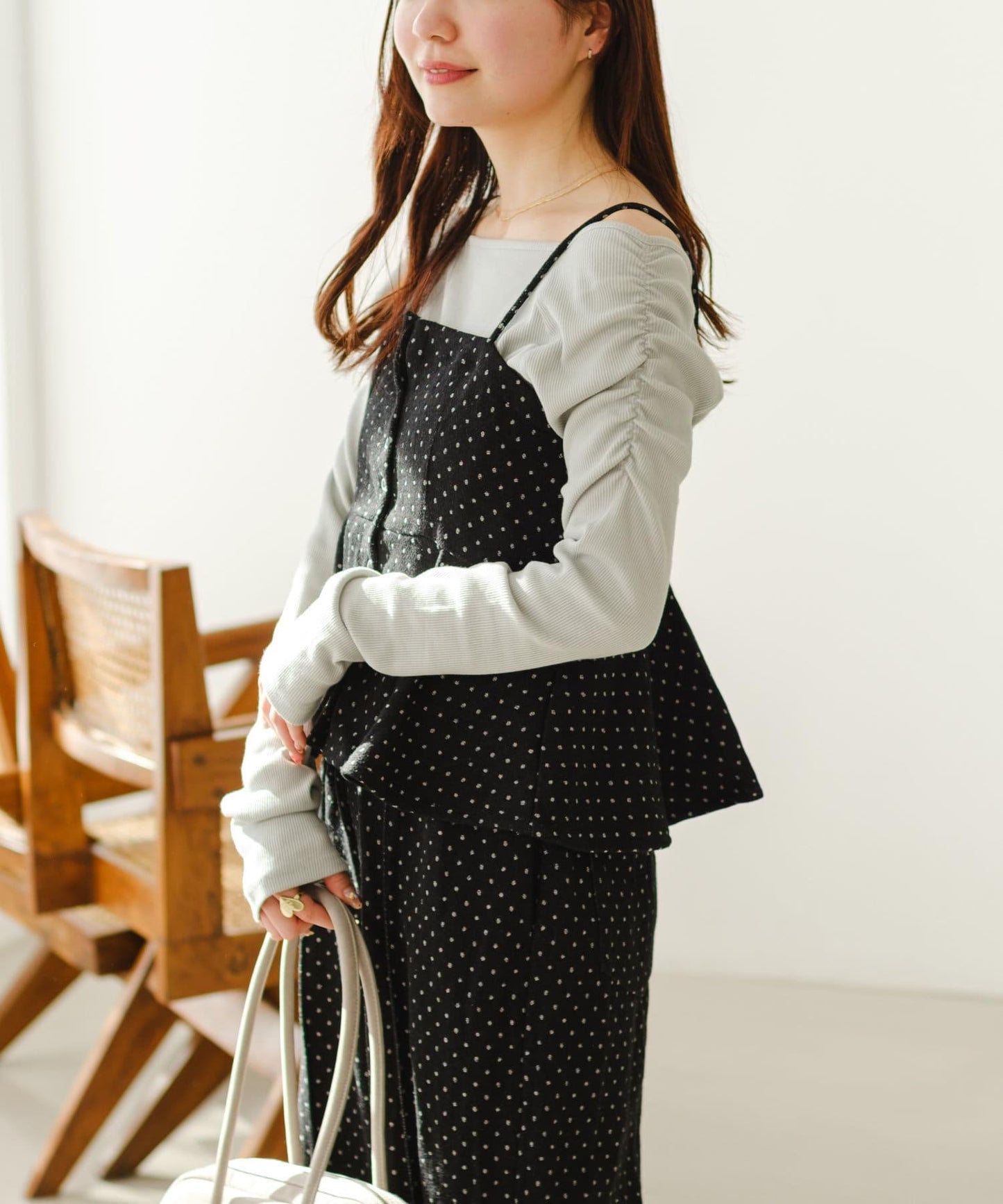 【套裝搭配/純色&圓點】牛仔風荷葉邊吊帶衫