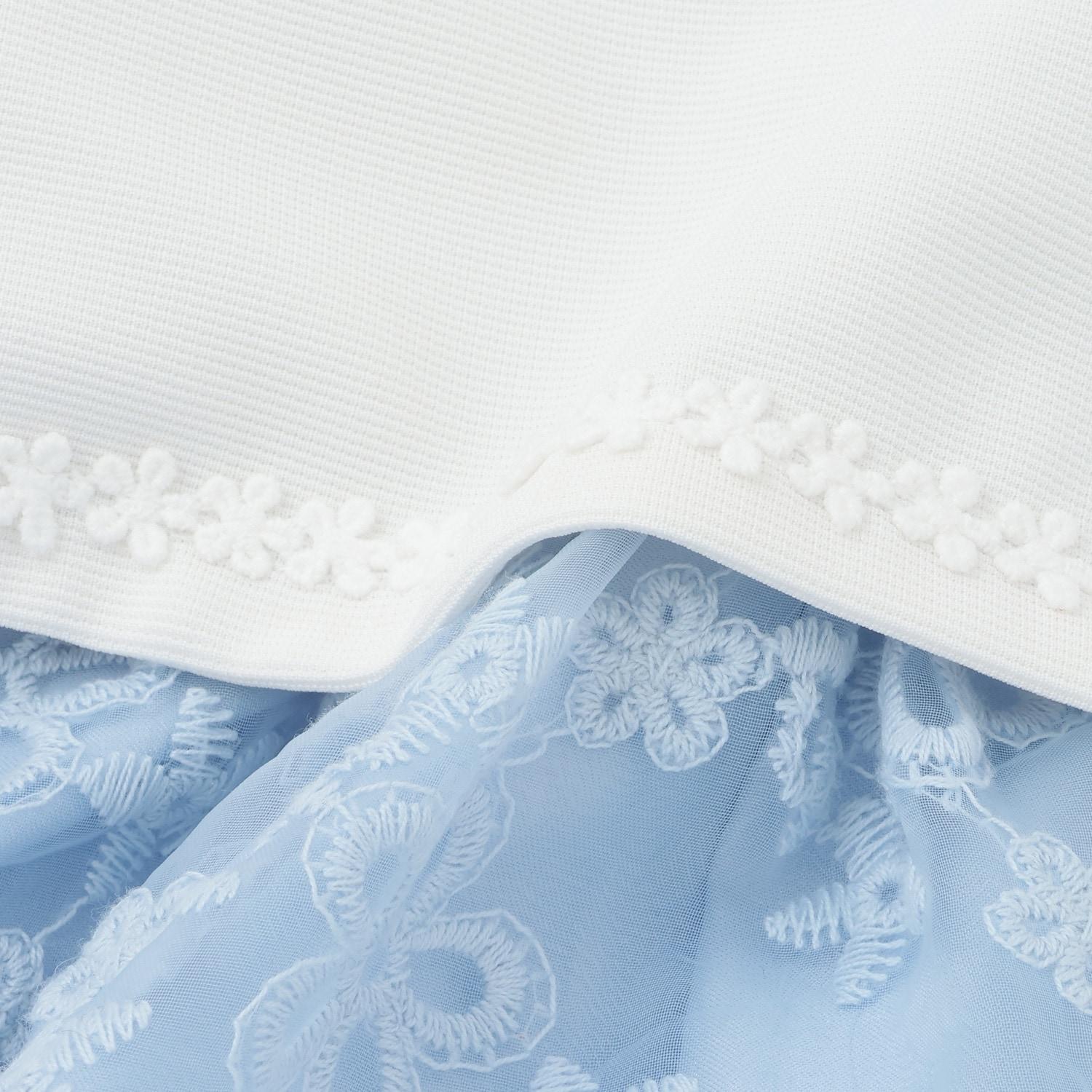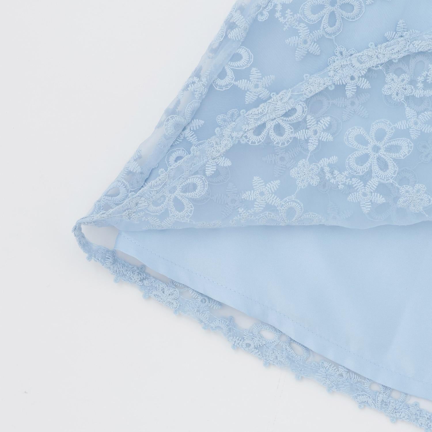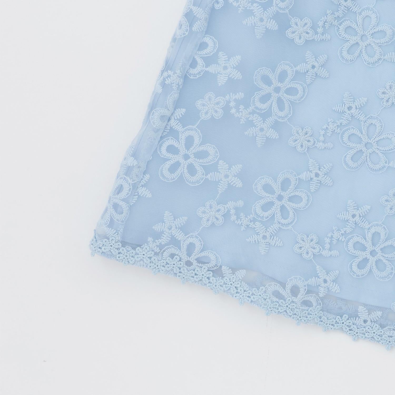 繡有花朵的歐根紗蕾絲華麗地舒展開來。