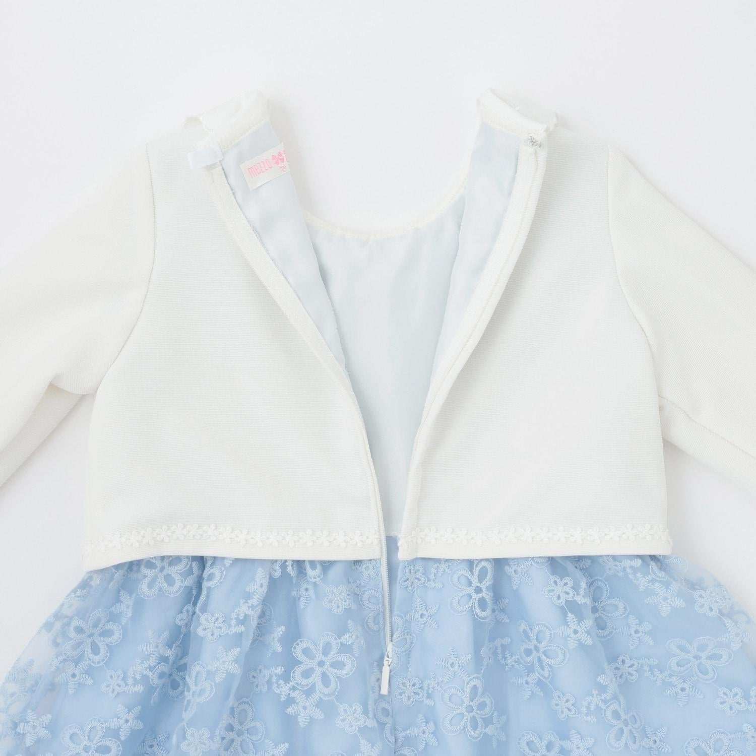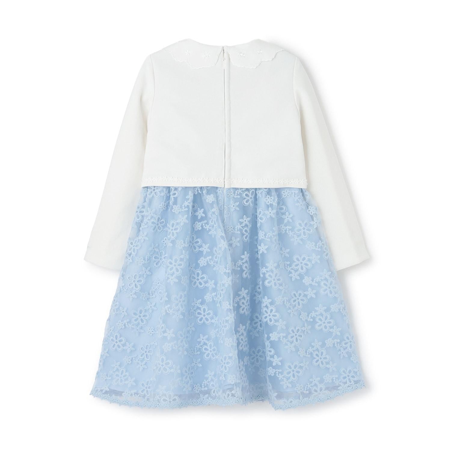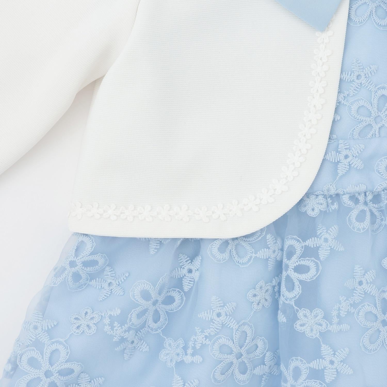 繡有花朵的歐根紗蕾絲華麗地舒展開來。