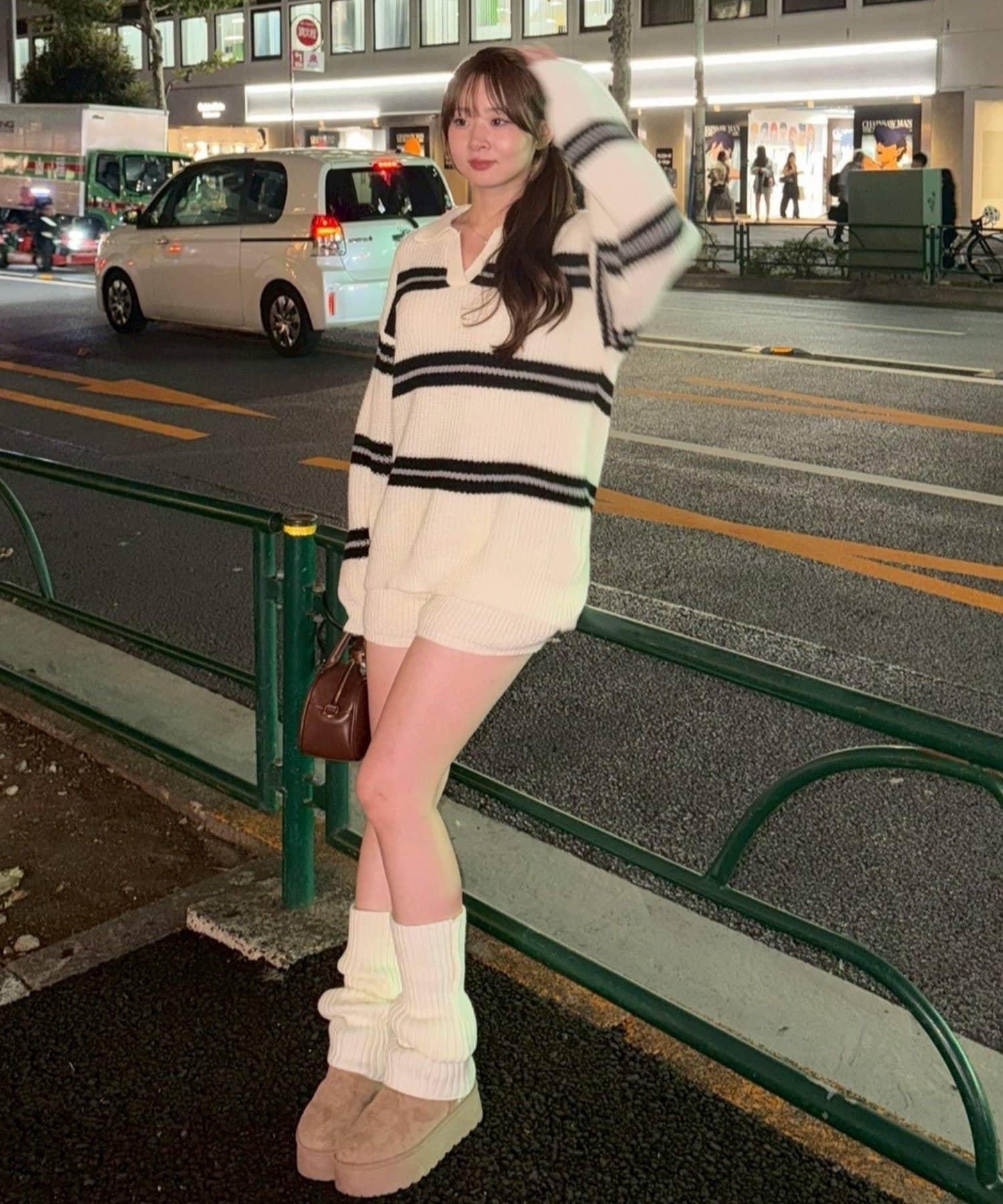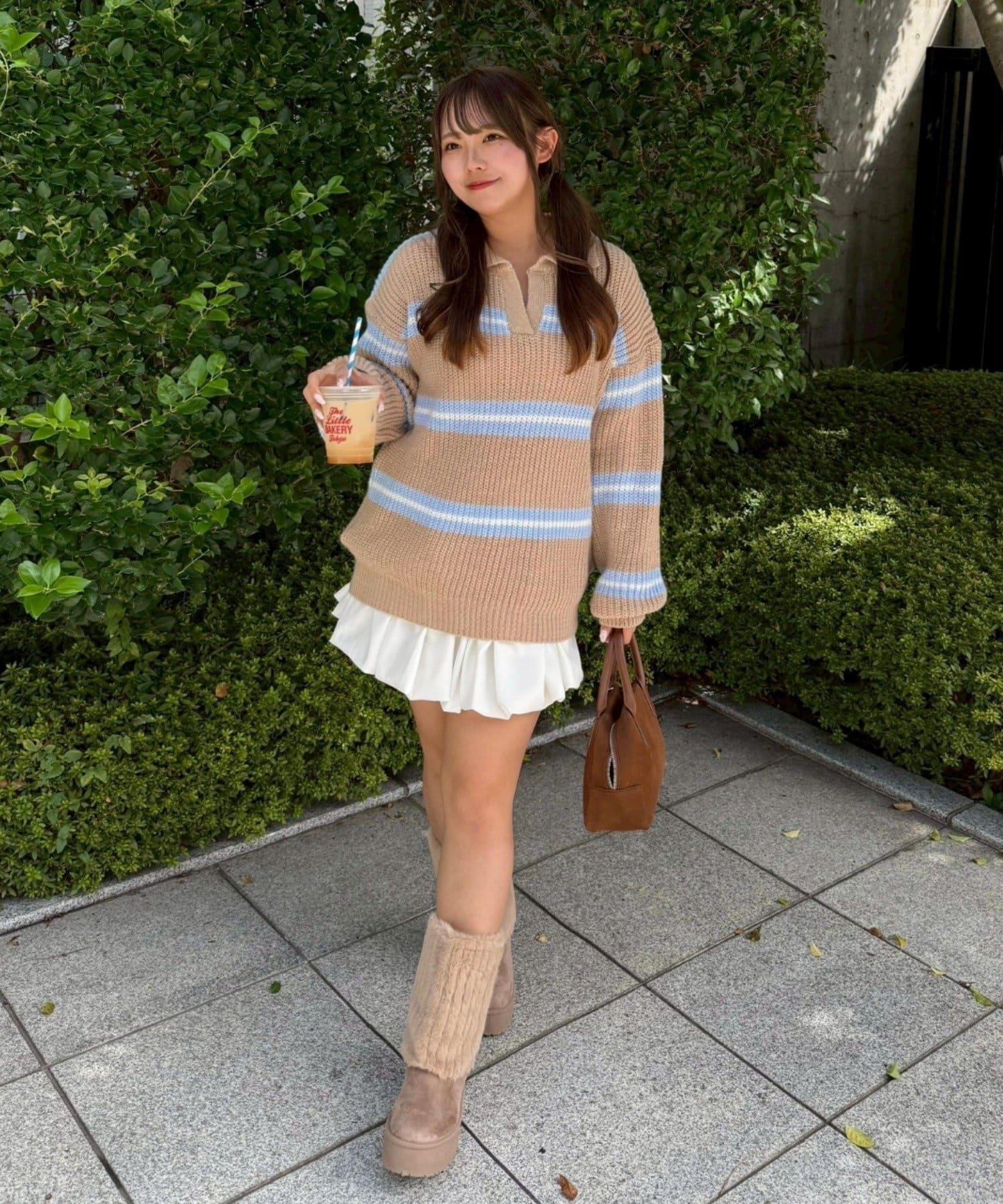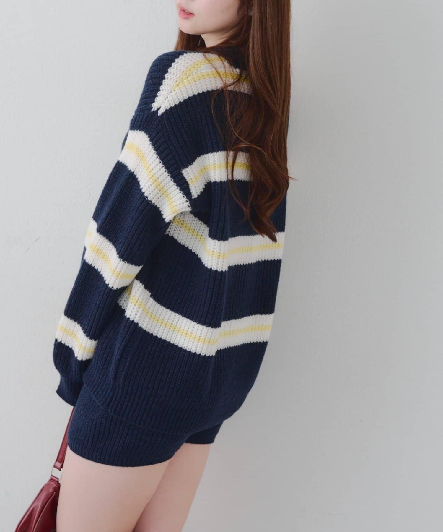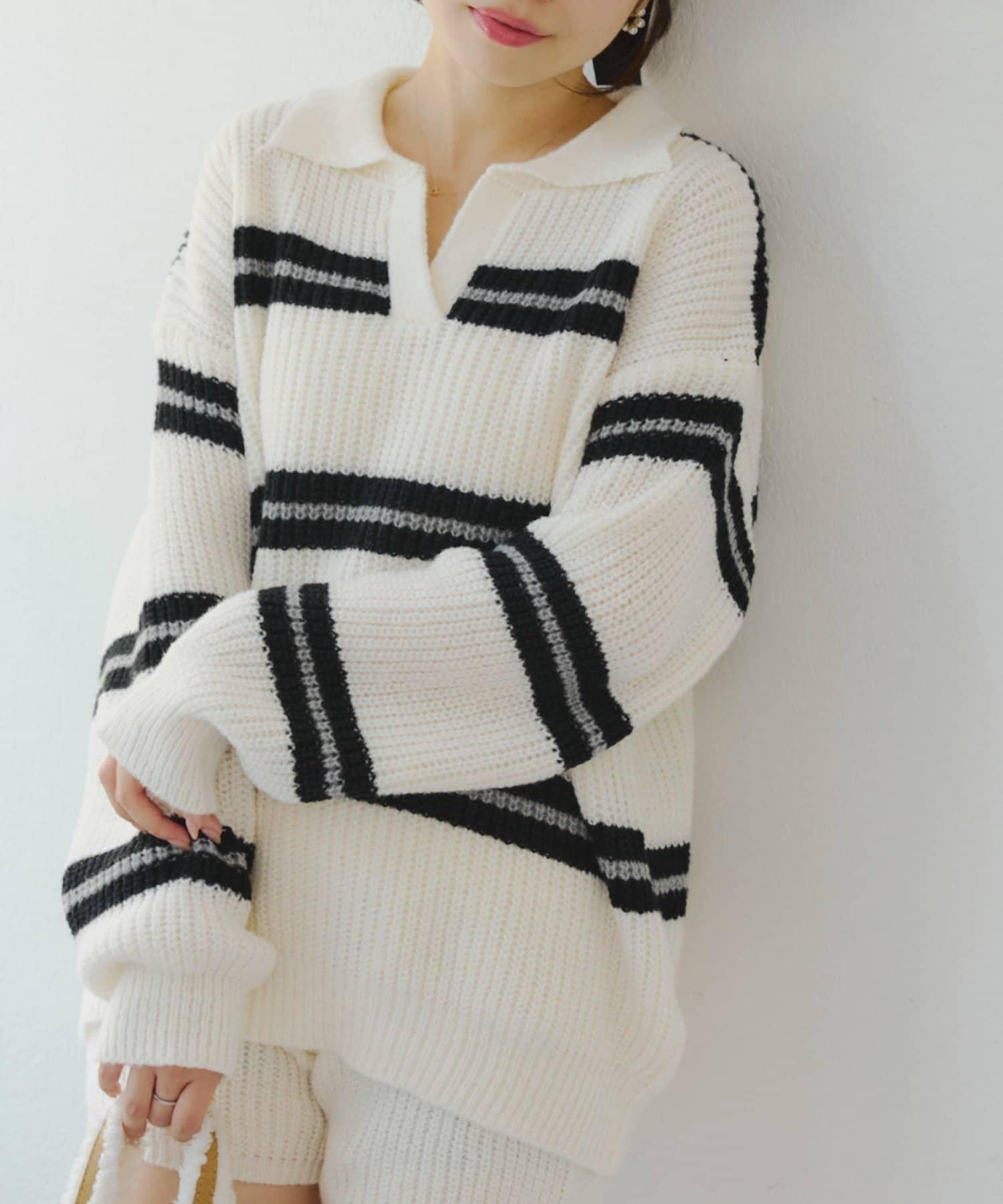 針織衫採用船長領設計,臉部周圍看起來乾淨利落。