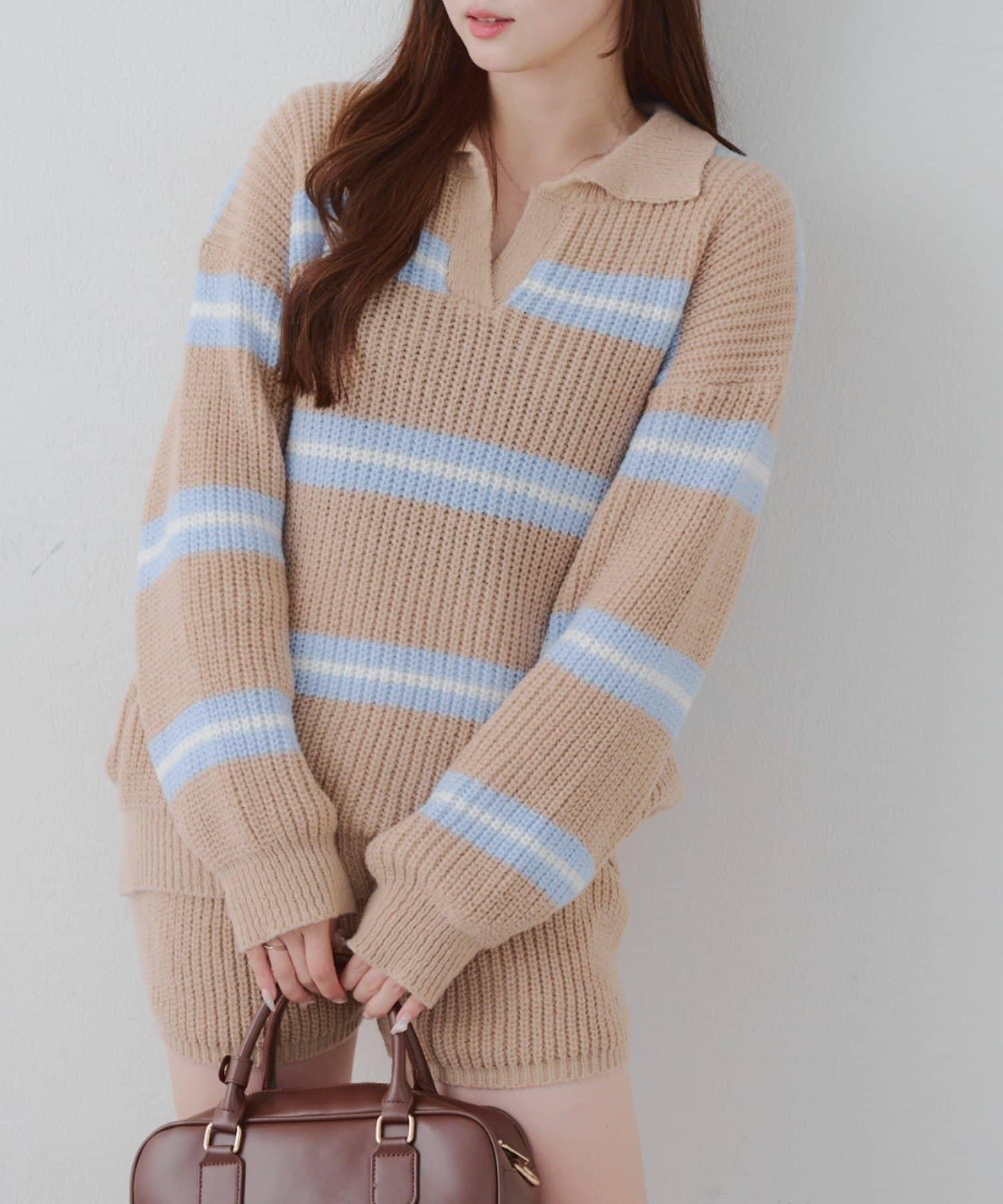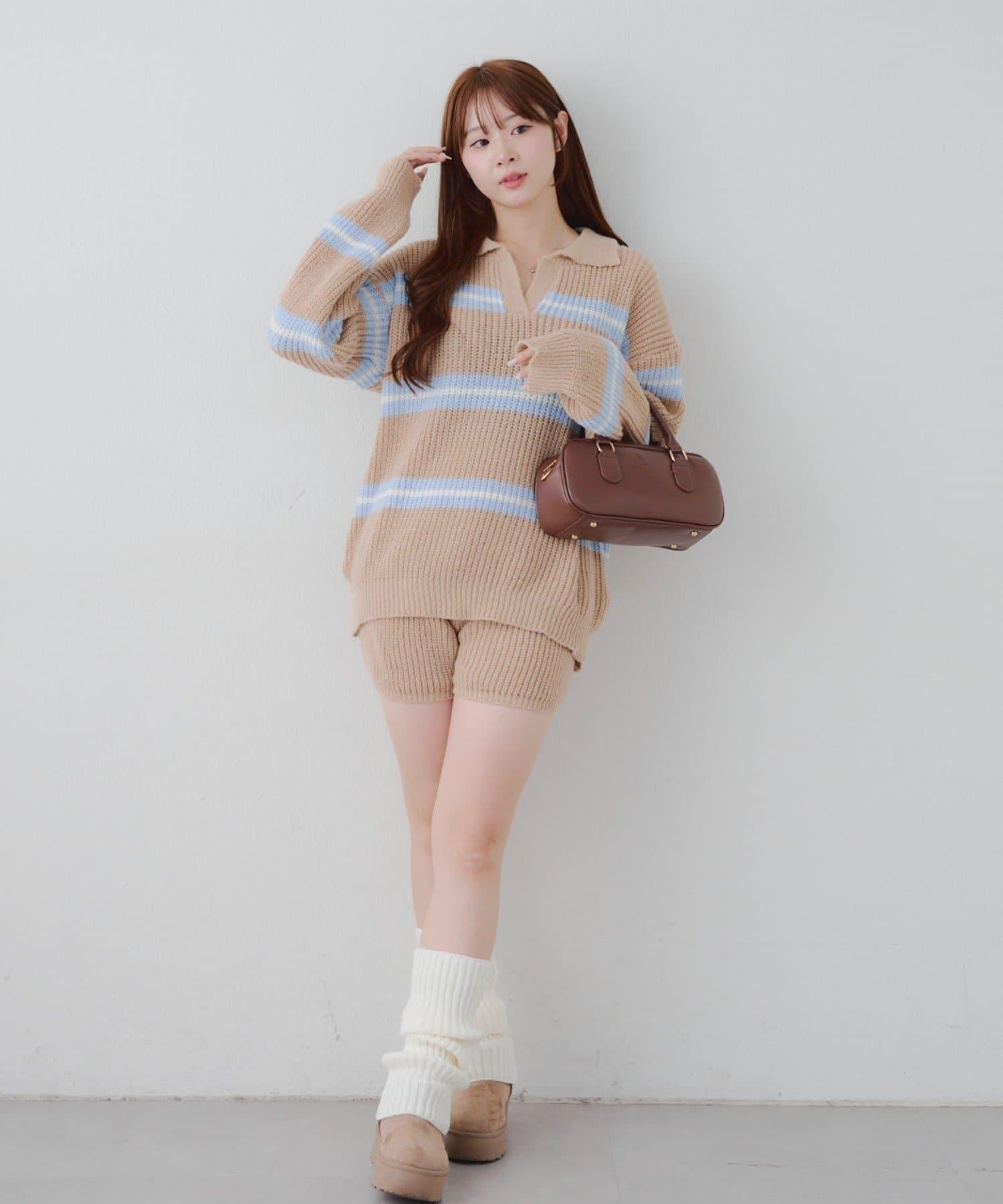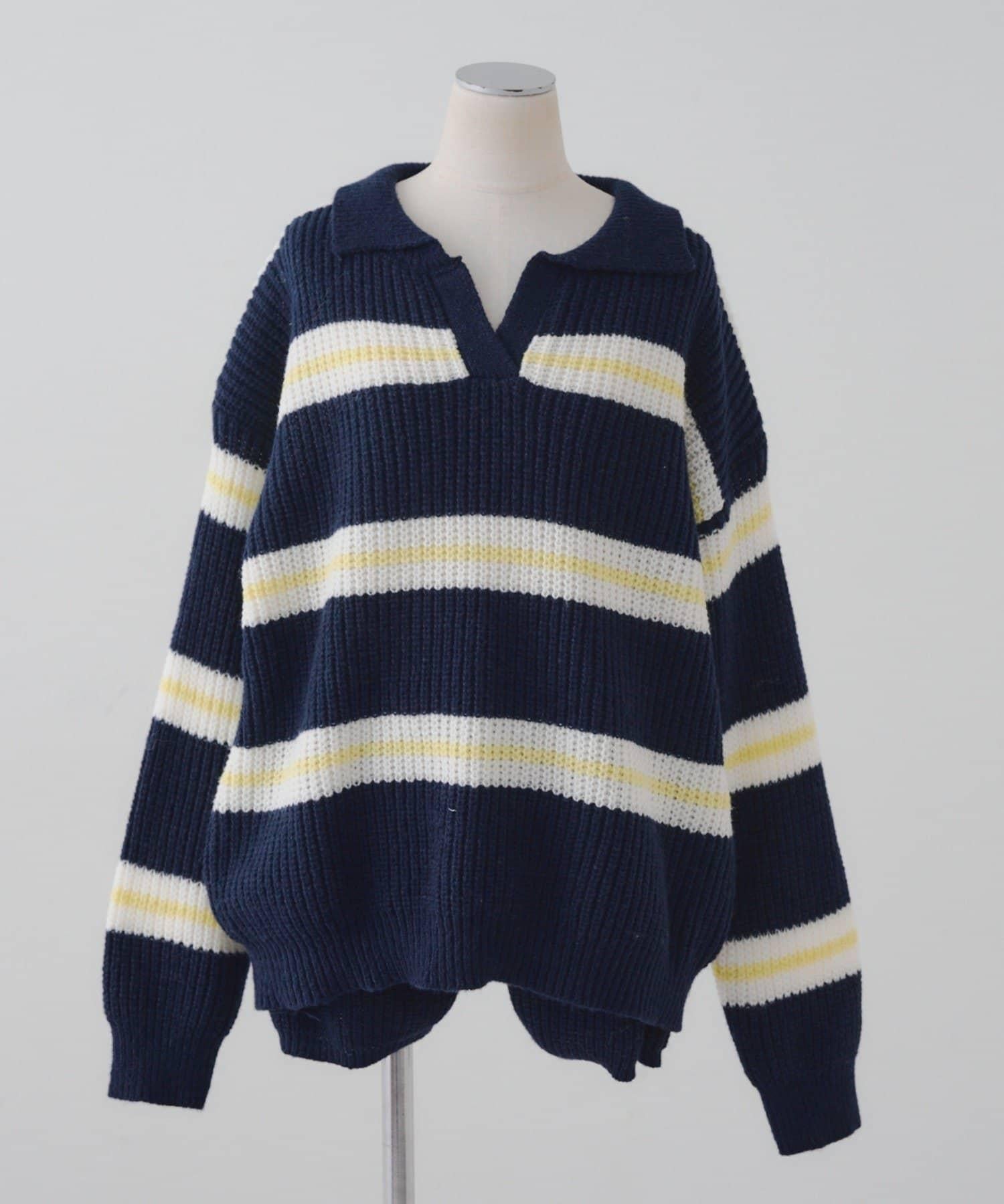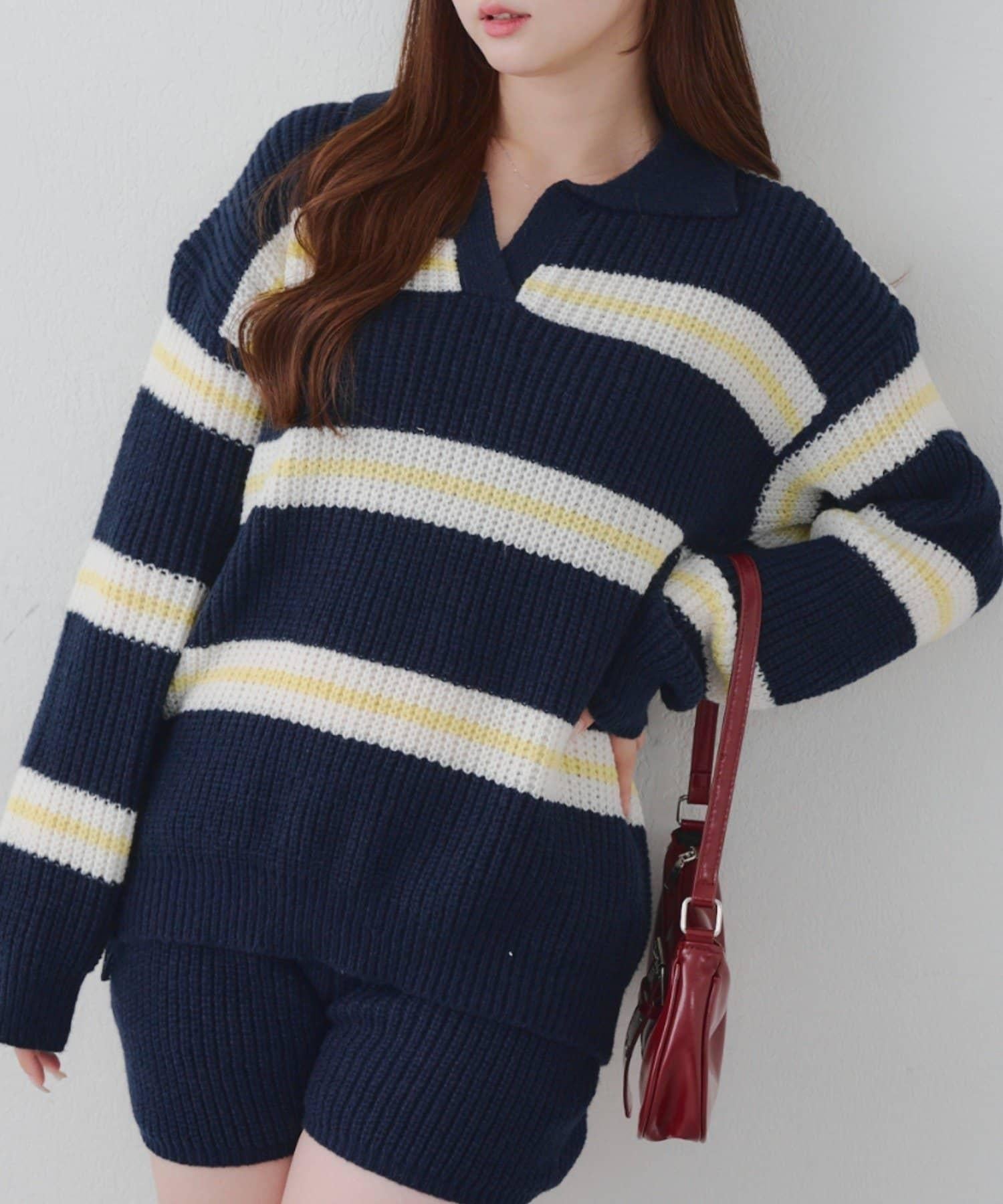 針織衫採用船長領設計,臉部周圍看起來乾淨利落。