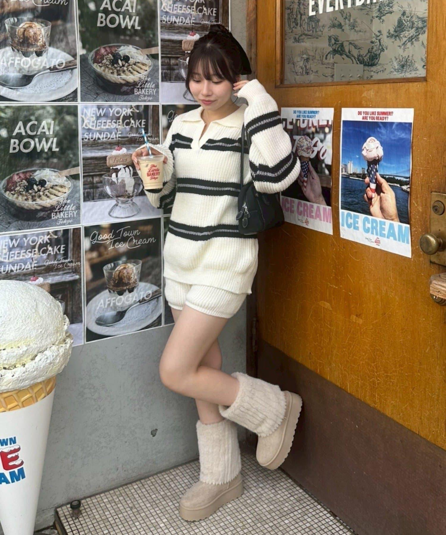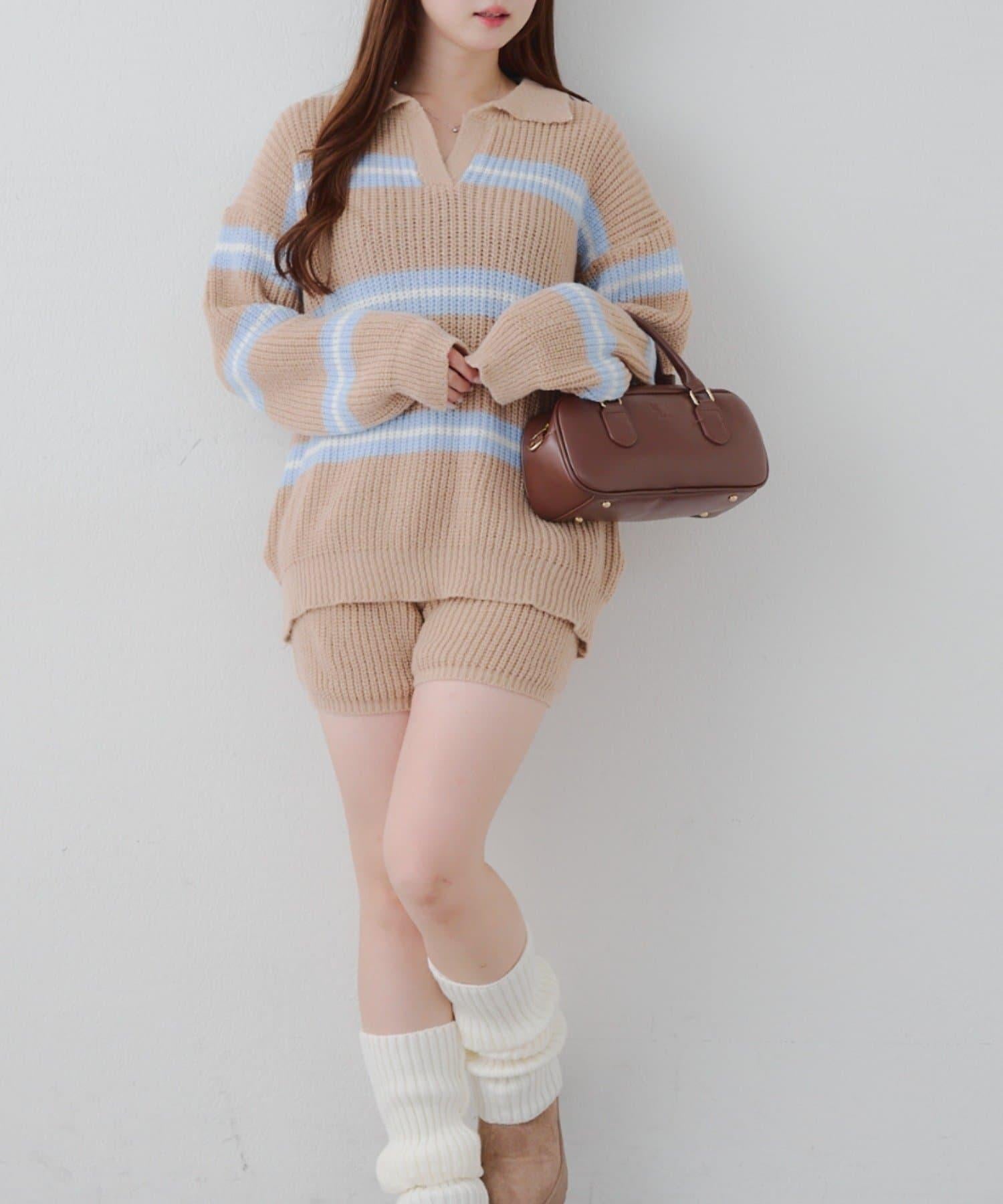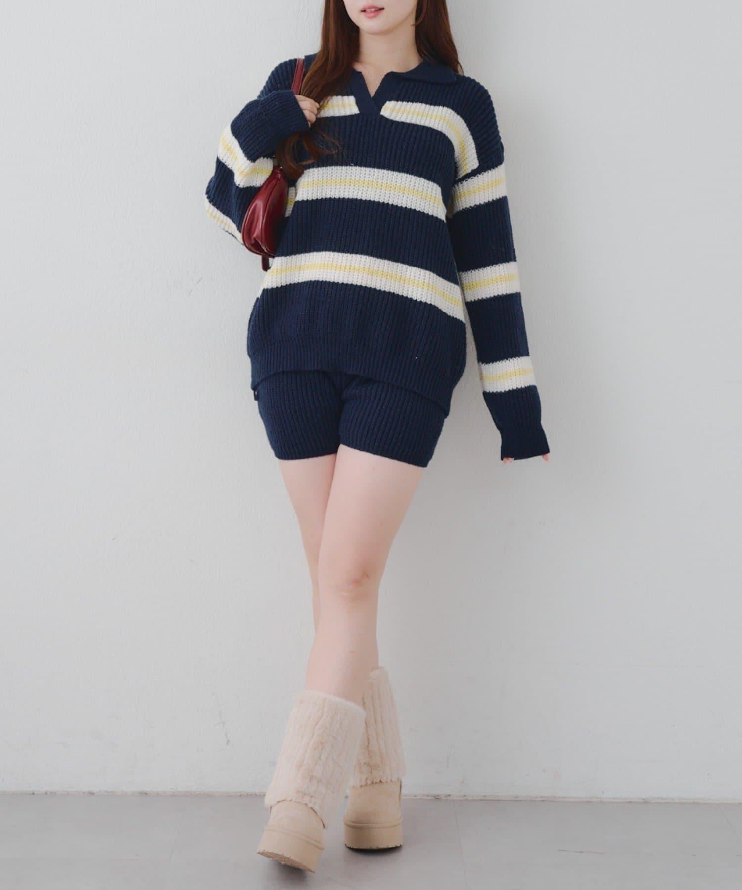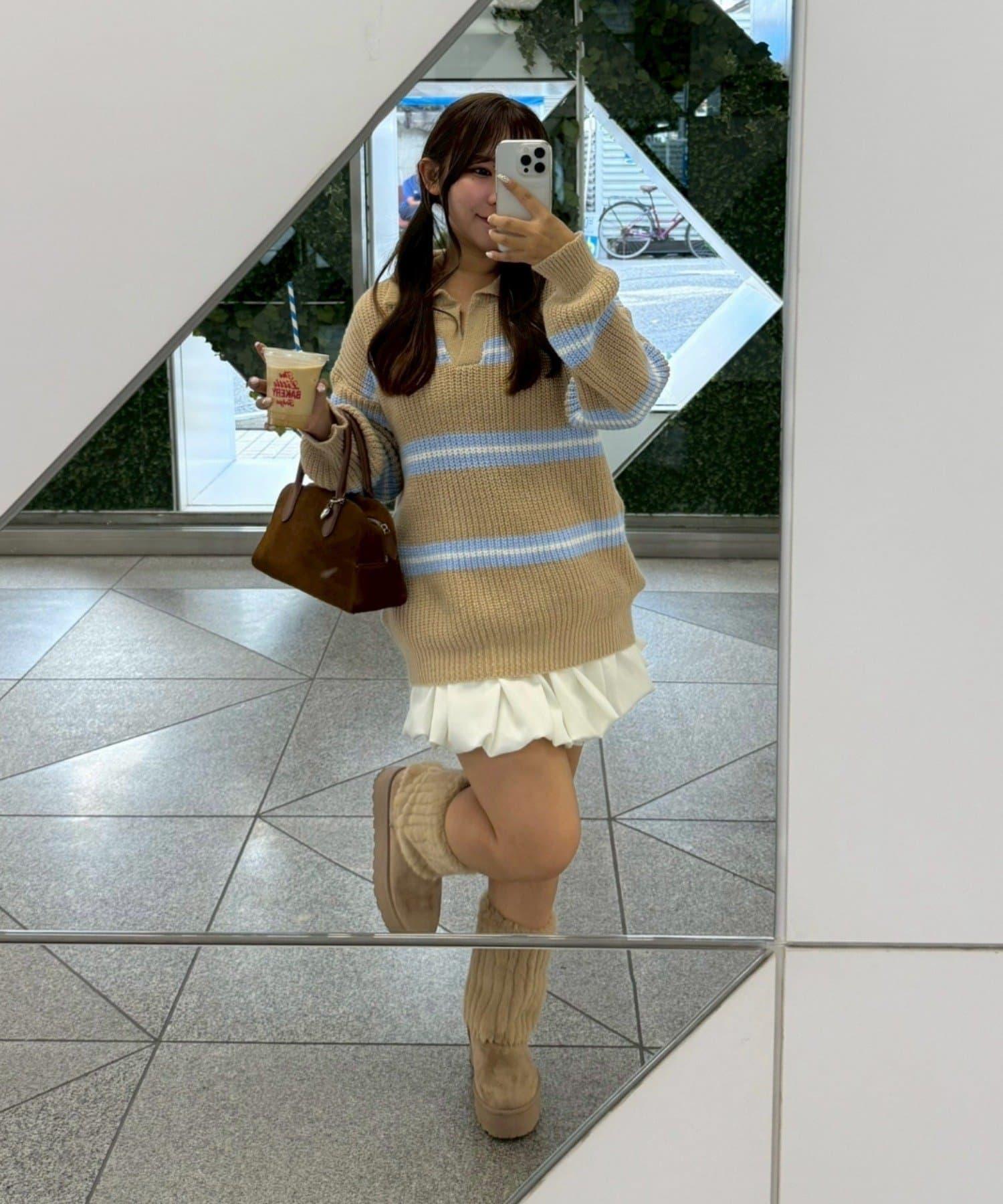 針織衫採用船長領設計,臉部周圍看起來乾淨利落。