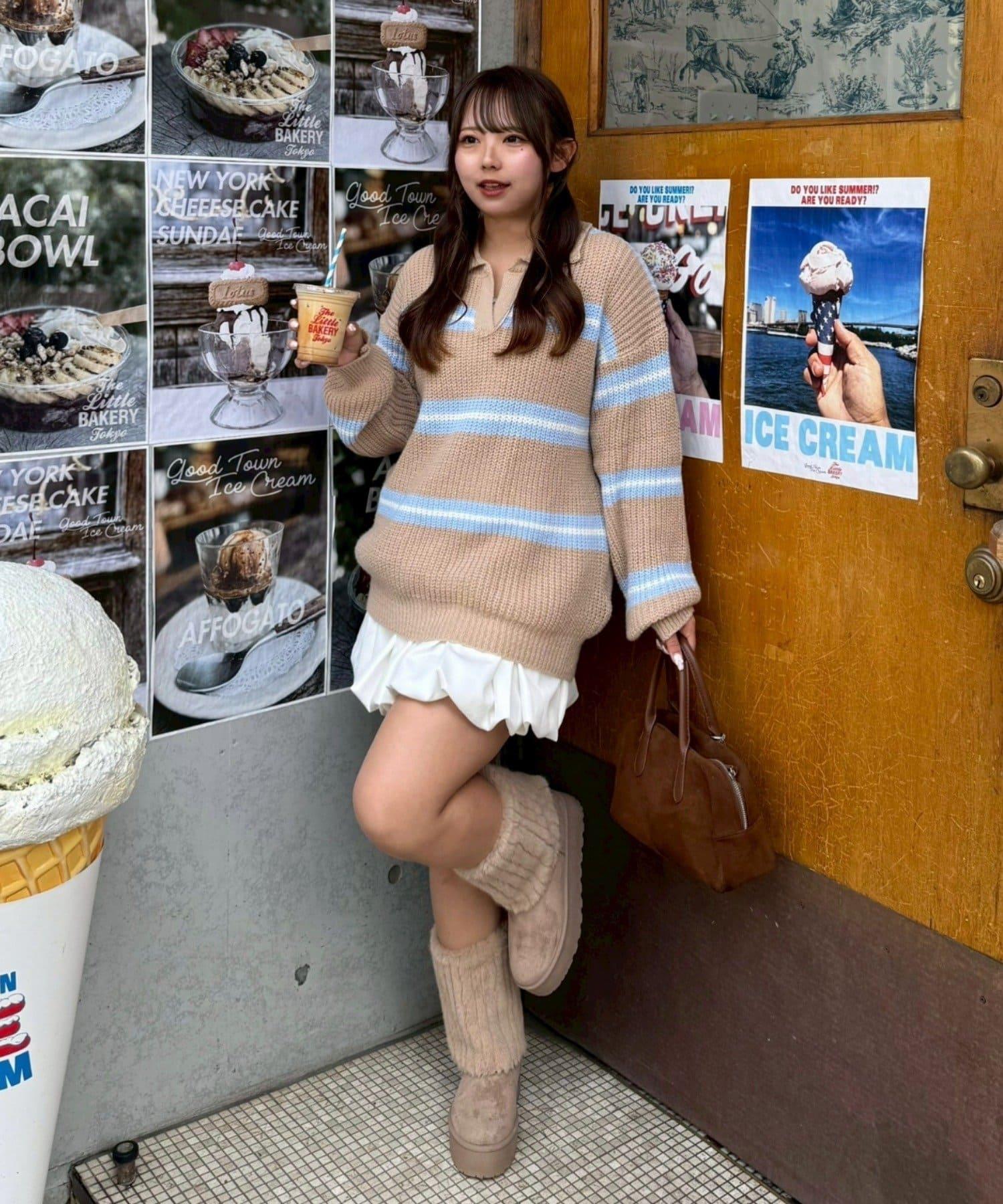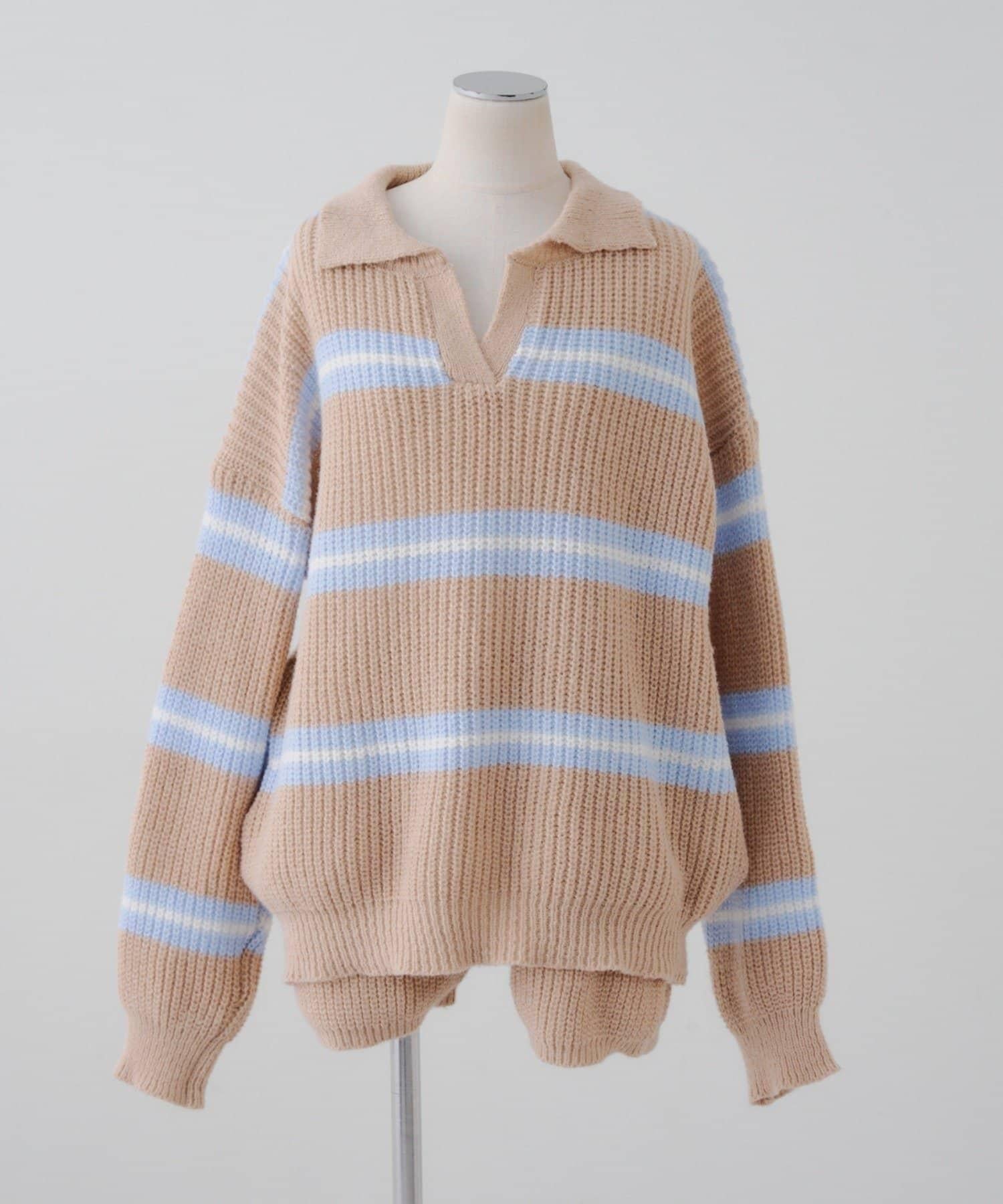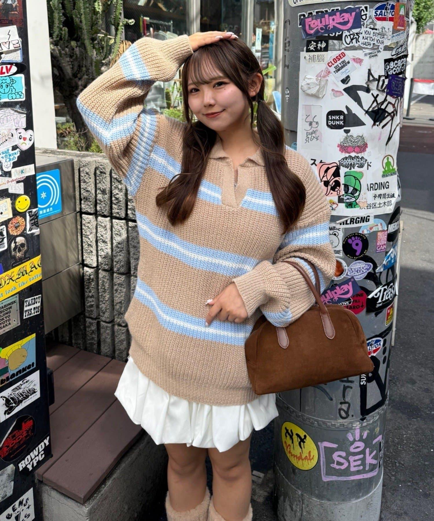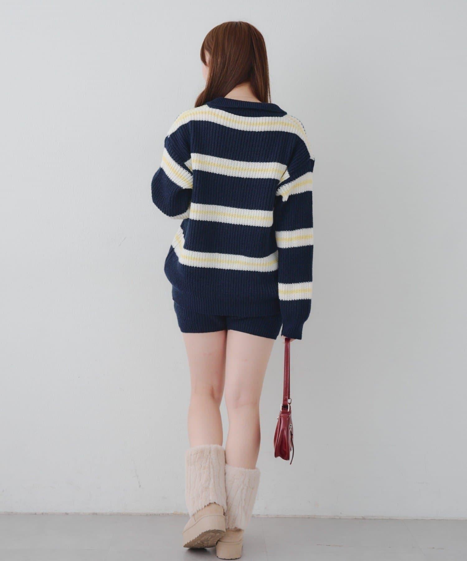 針織衫採用船長領設計,臉部周圍看起來乾淨利落。