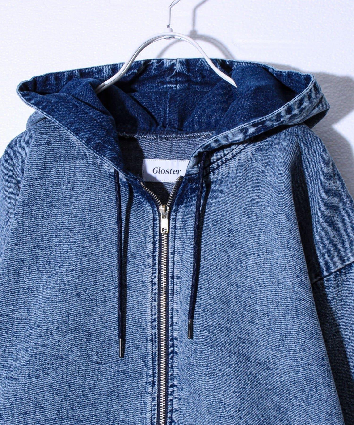 #Denim parka #Unisex #Chemical wash #Retro casual #Vintage style #Adult casual #Pairing #Loose-fitting #GLOSTER #Full-zip parka #Autumn/Winter outerwear # 秋冬外套
